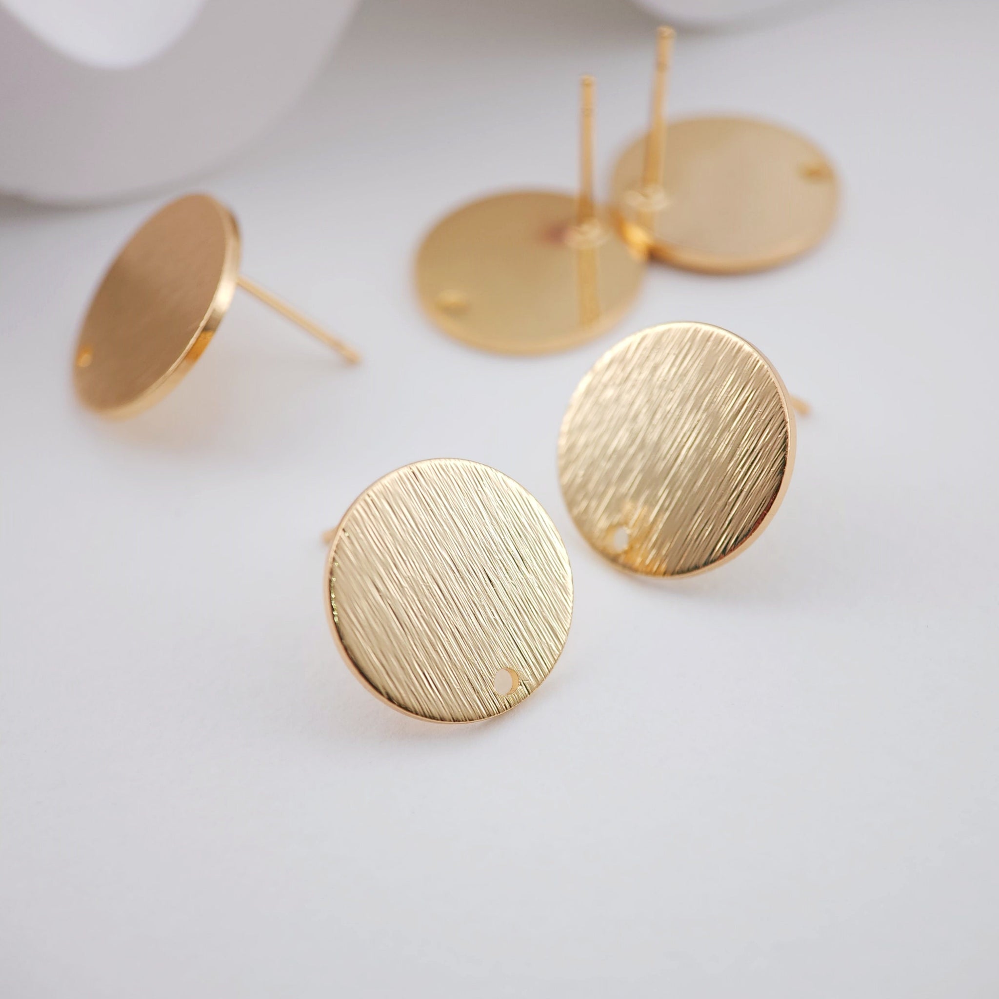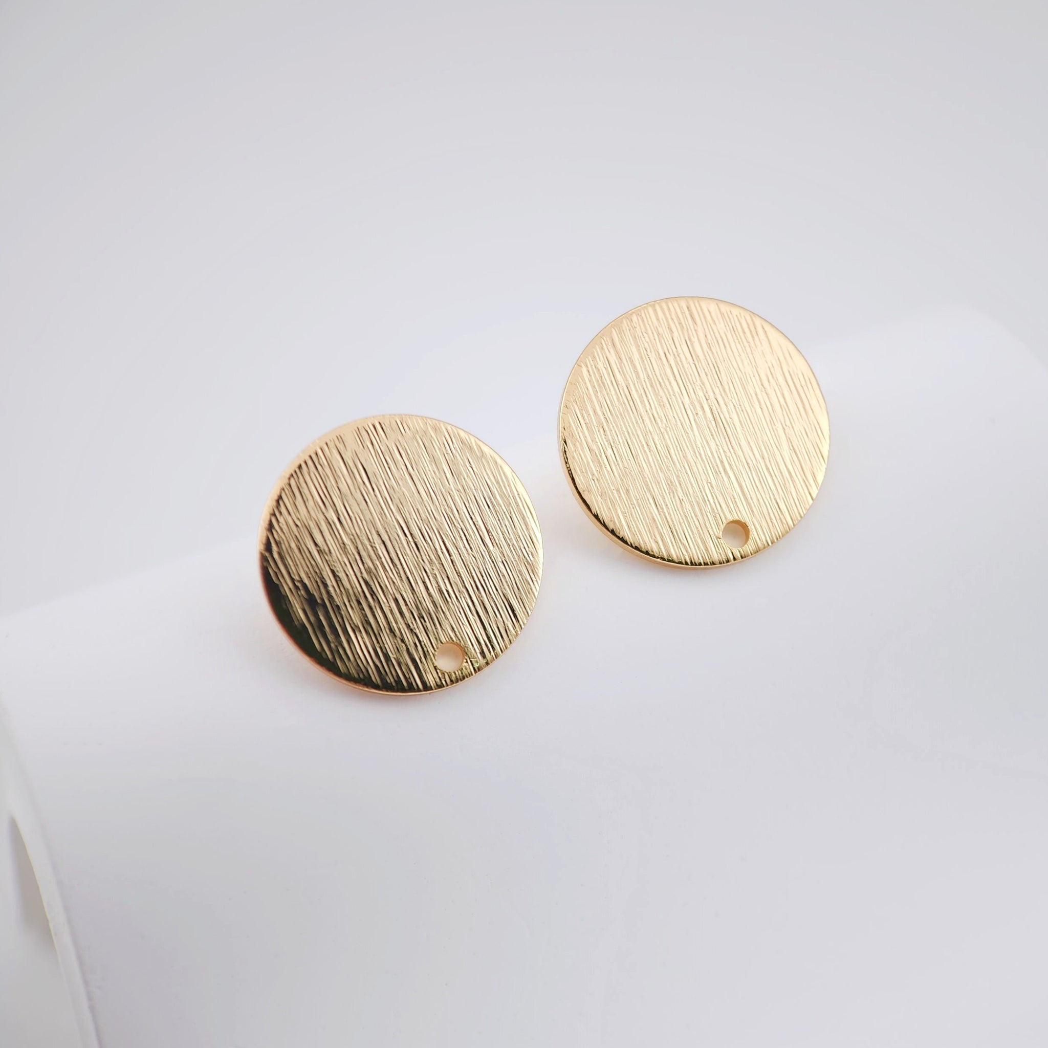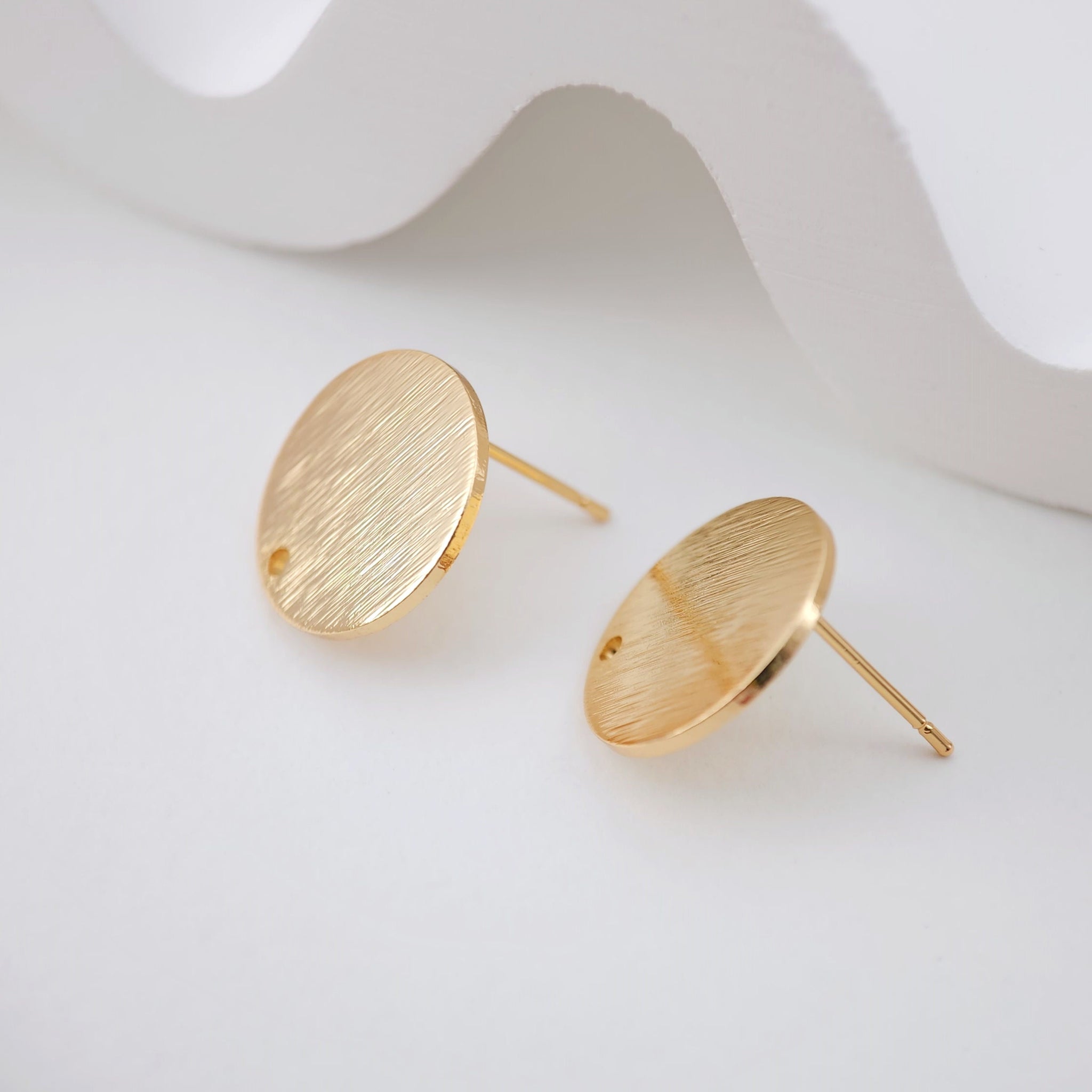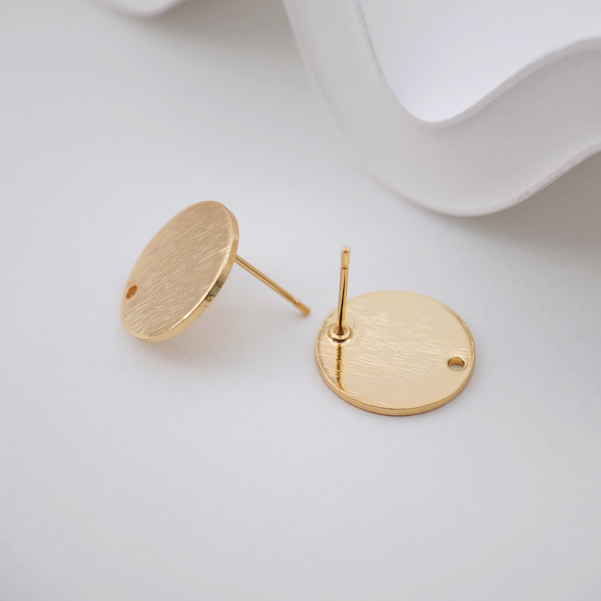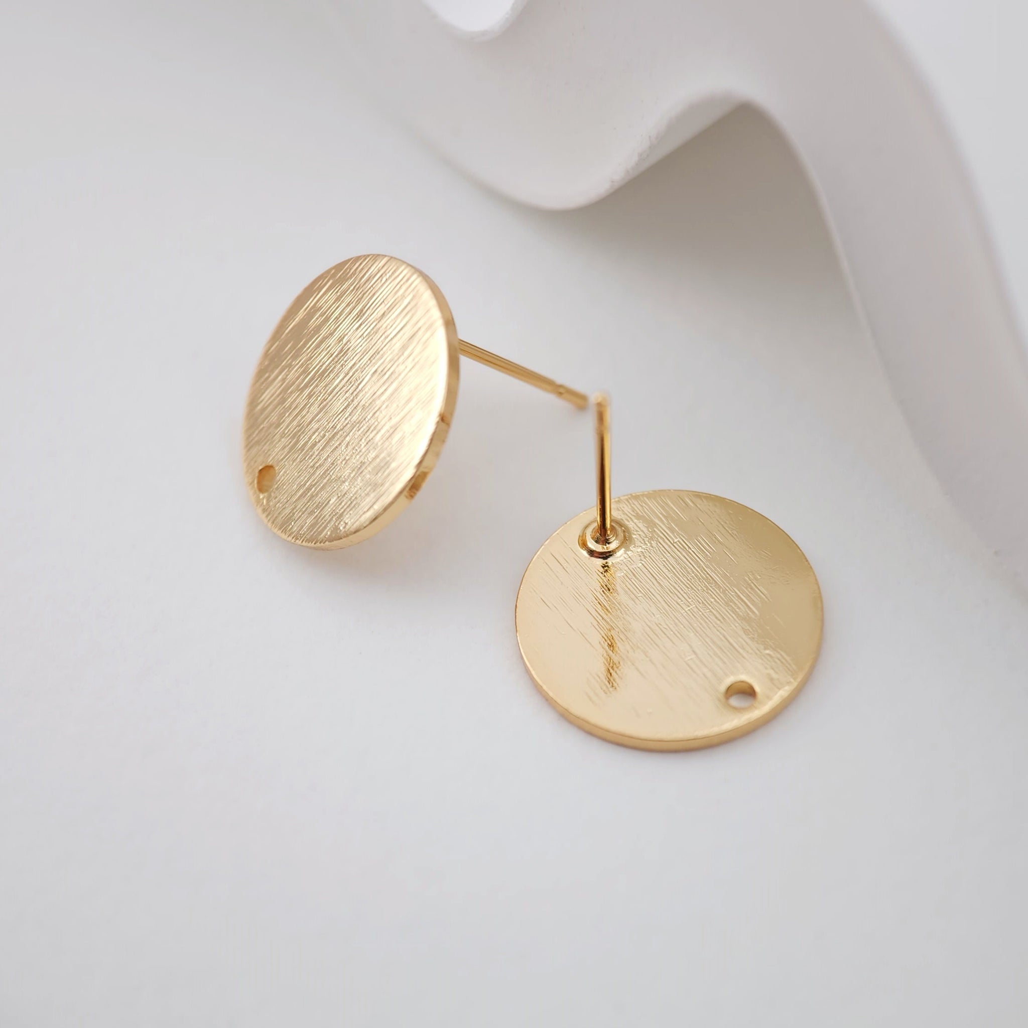أقراط دائرية بلمسة نهائية مصقولة، 15 مم، عمود ذهبي مع حلقة، مضاد للحساسية، نتائج الأقراط، لوازم صنع الأقراط يدويًا D0043