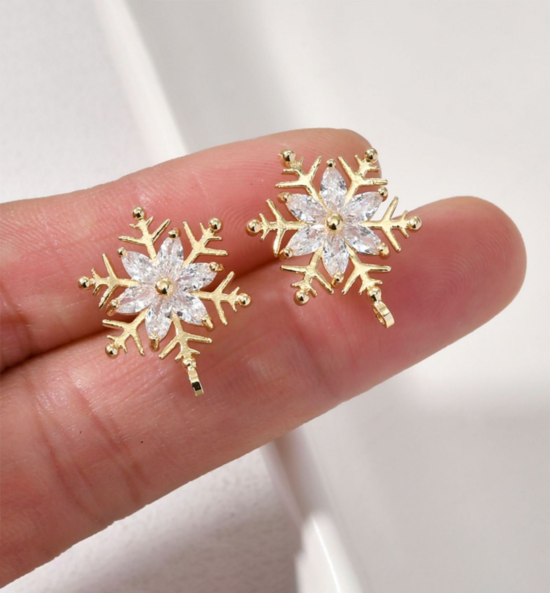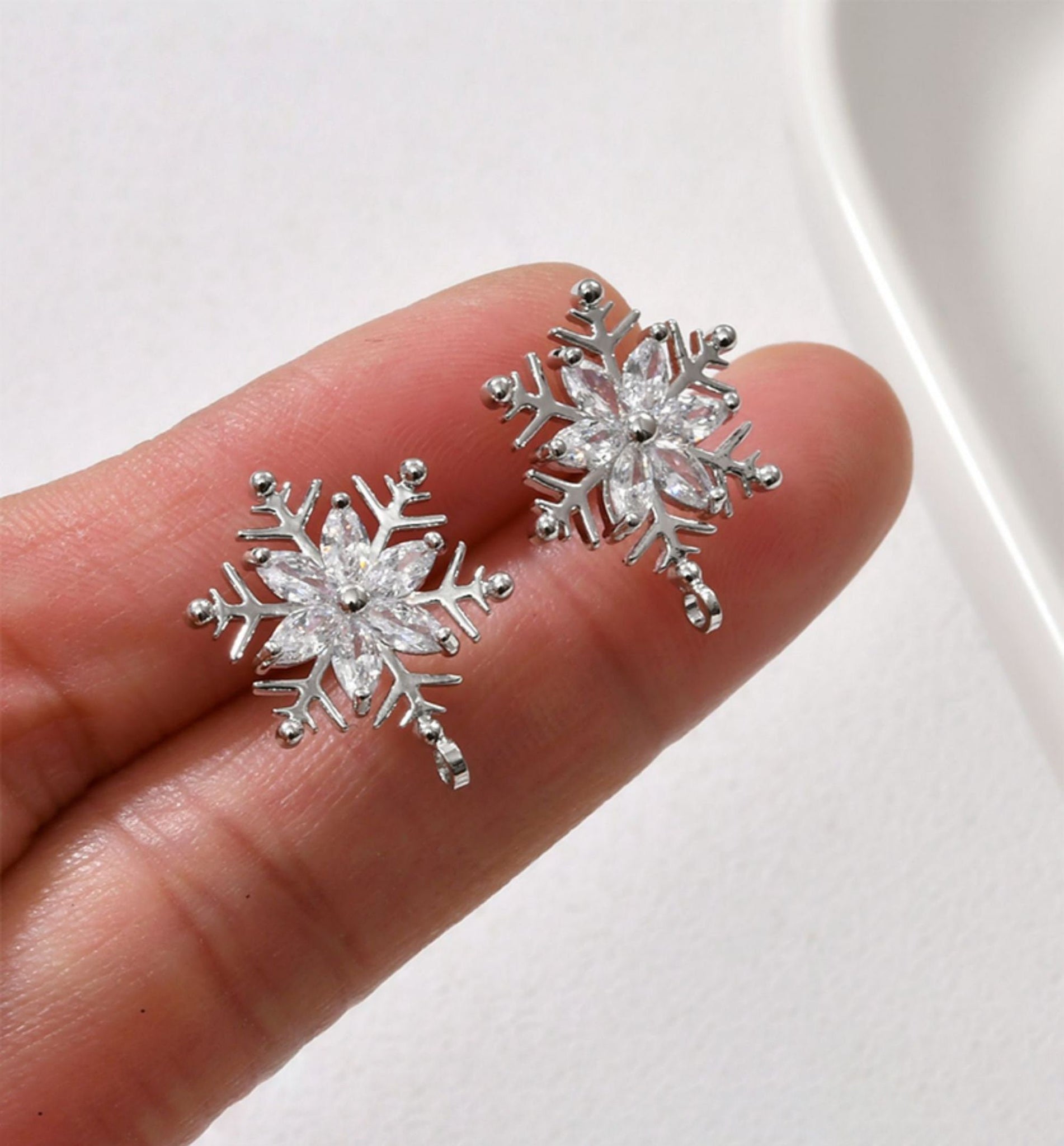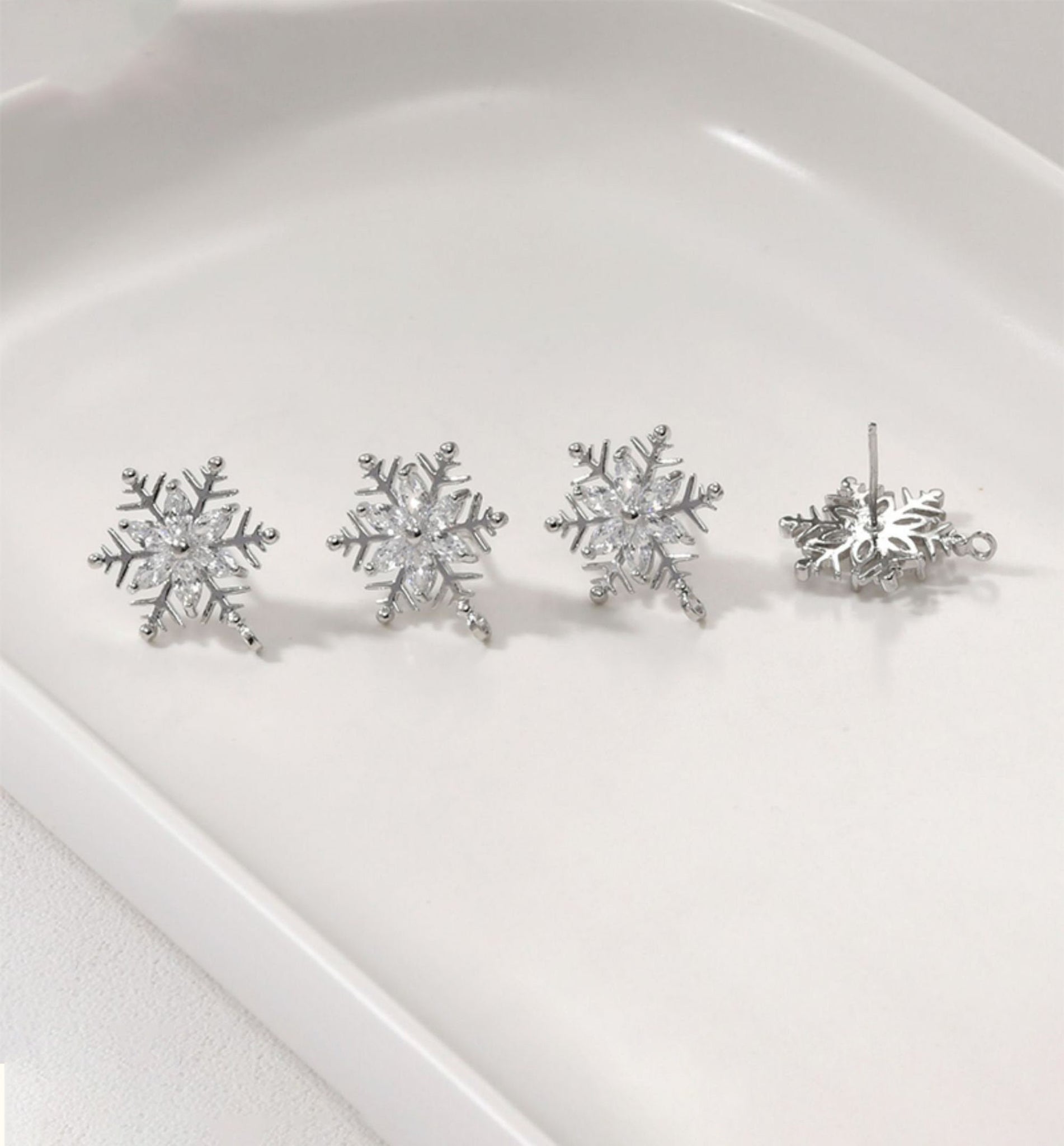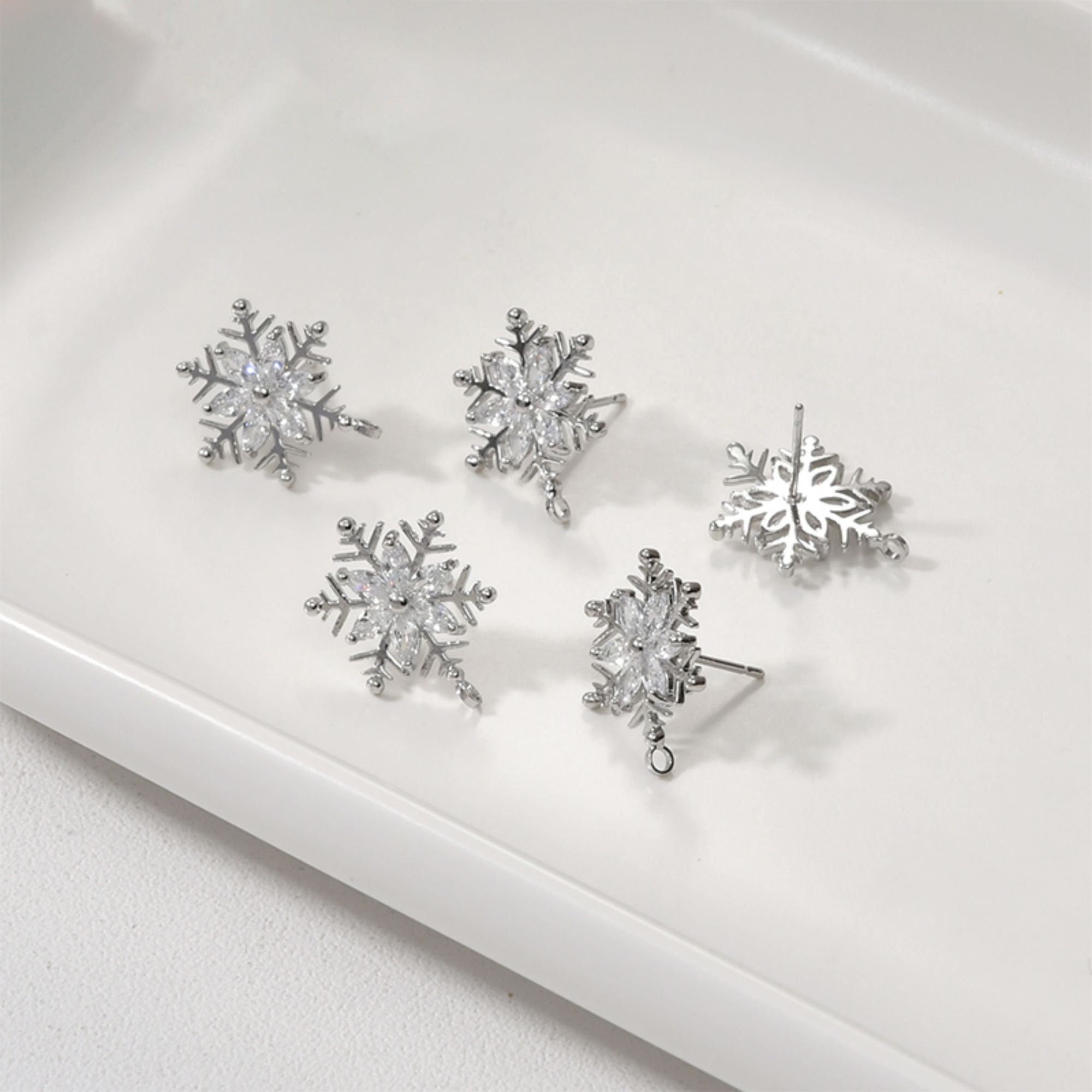 بيتعمود الأذن/الأزرارقرط ندفة ثلج عيد الميلاد مع حلقات، أقراط فضة عيار 925 خالية من النيكل، مرصعة بحجر الزركونيا المكعب، نتائج قرط مضادة للحساسية YL004-CX099
