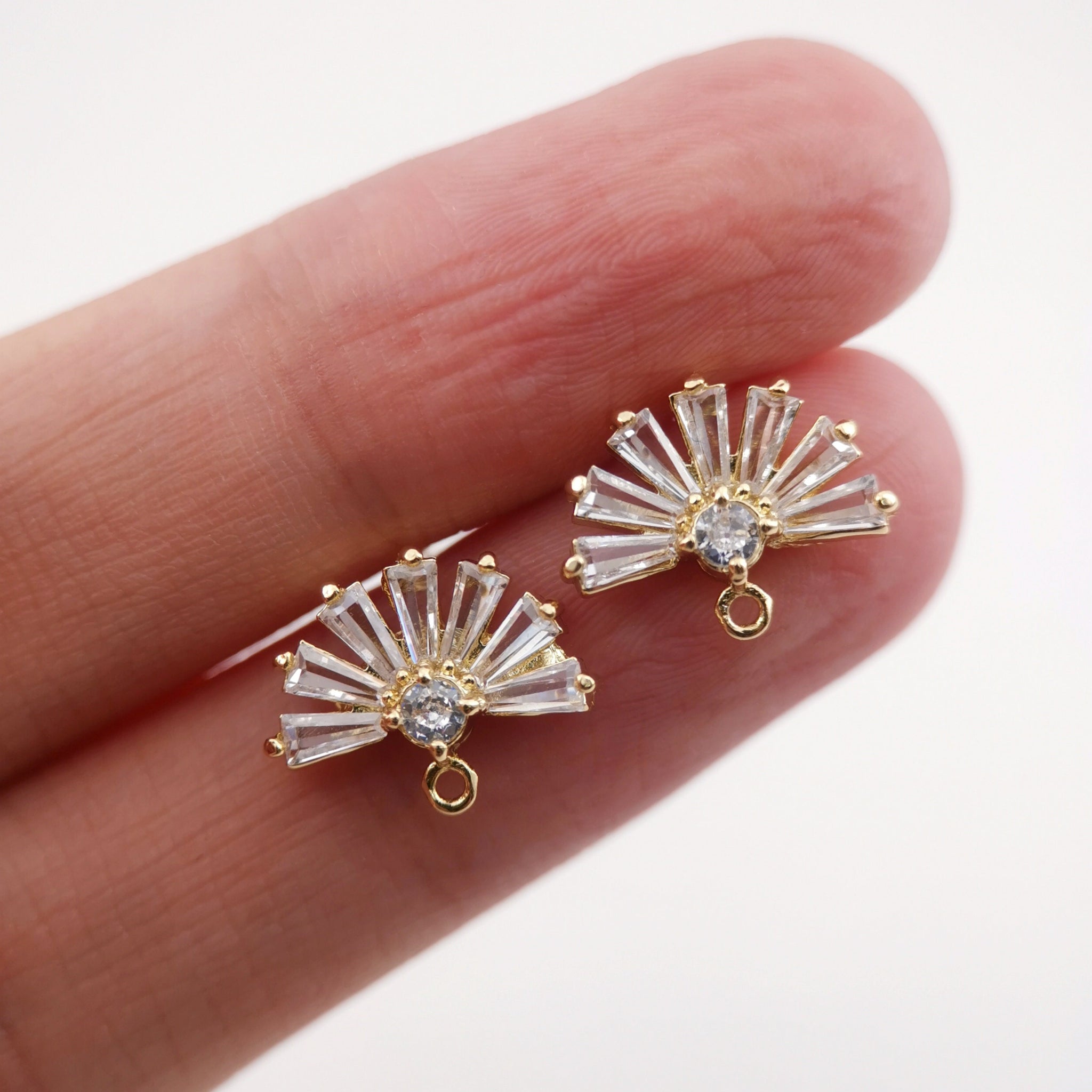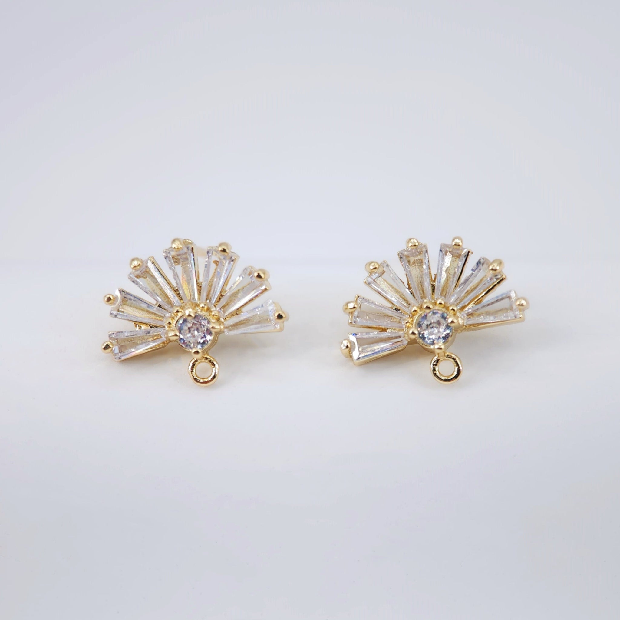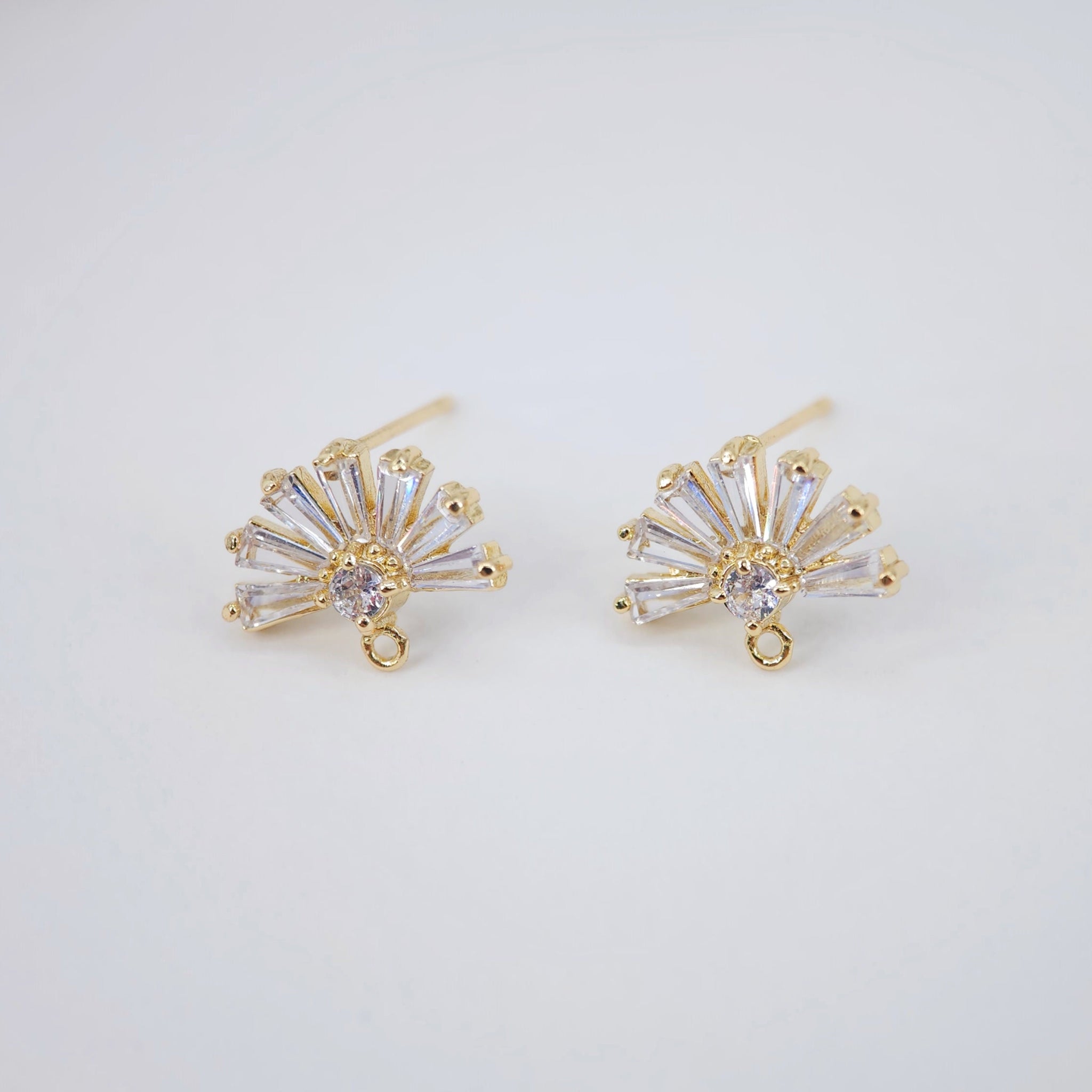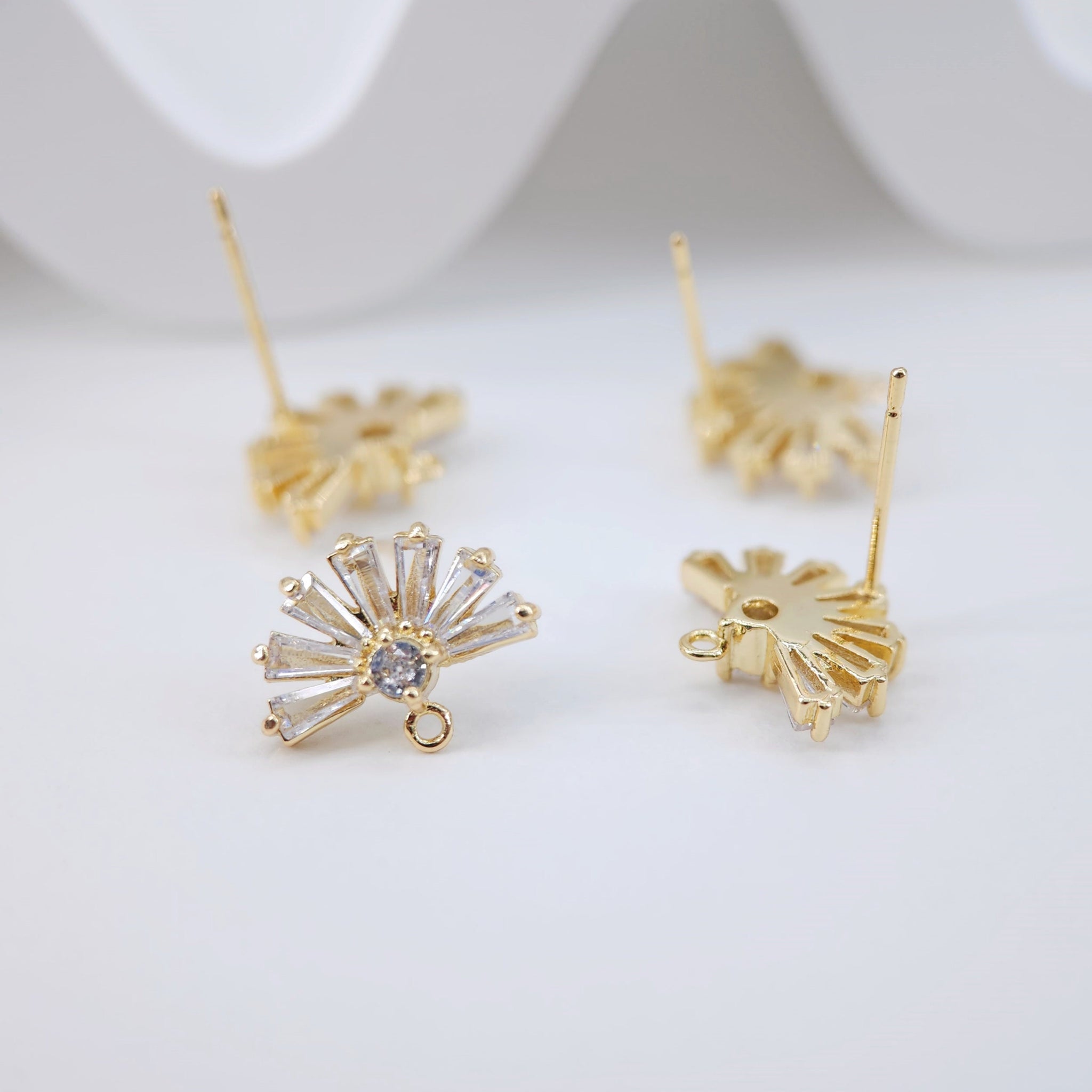 أقراط على شكل مروحة من الزركونيا المكعبة، مطلية بالذهب، مع حلقة، مضادة للحساسية، نتائج الأقراط، لوازم الأقراط المصنوعة يدويًا D0036