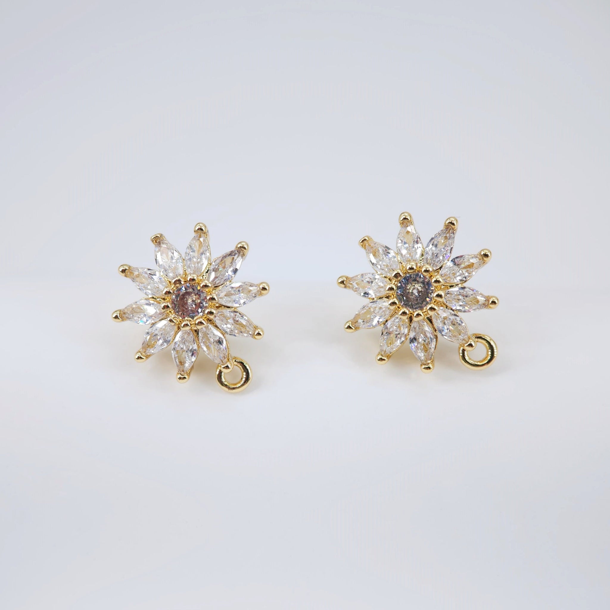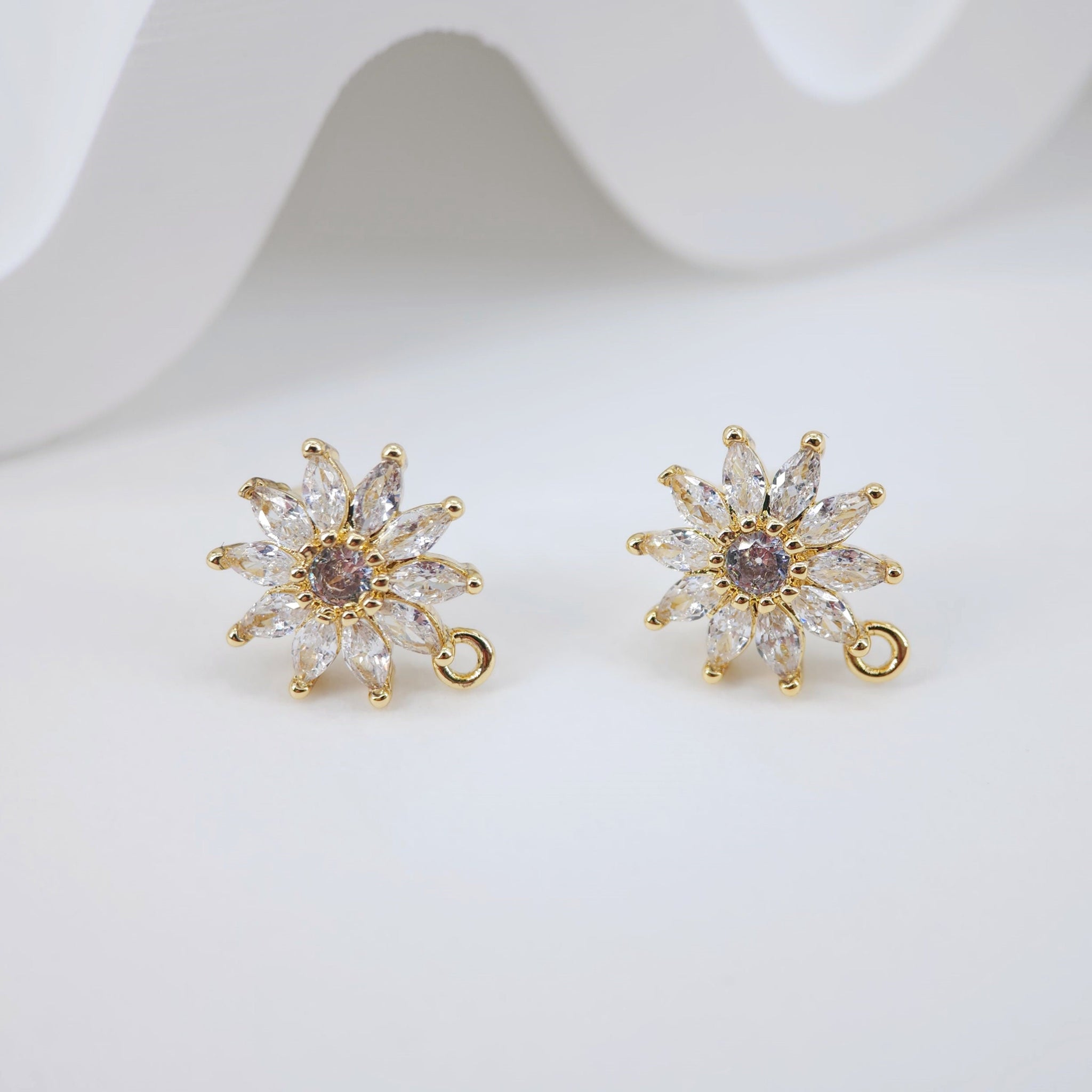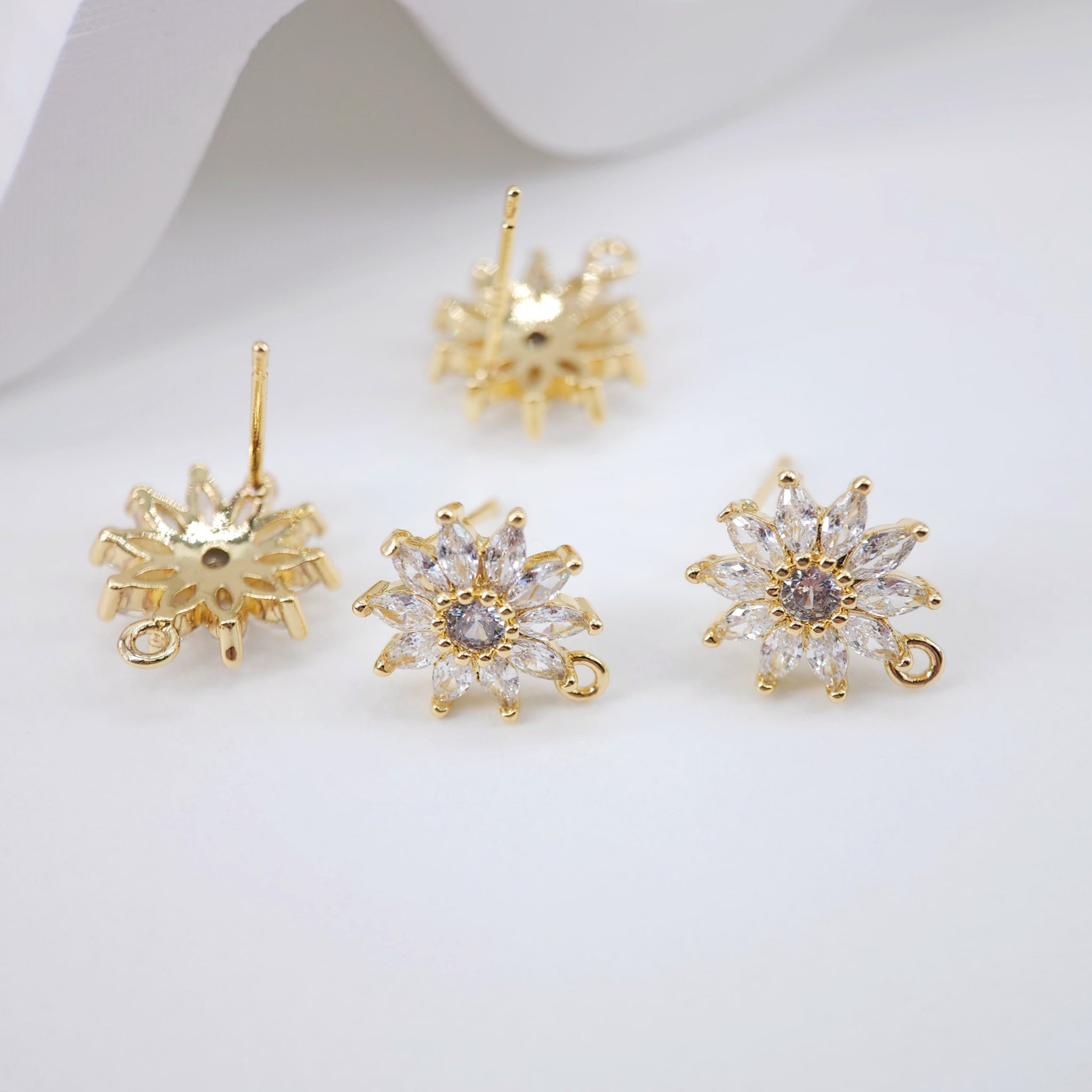 أقراط على شكل زهرة من الزركونيا المكعبة، مطلية بالذهب مع حلقة، مضادة للحساسية، أدوات يدوية الصنع، لوازم صنع الأقراط بنفسك D0031