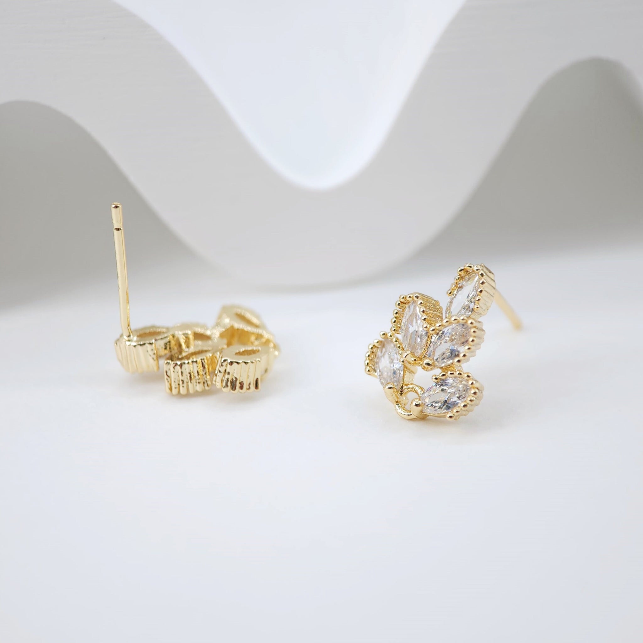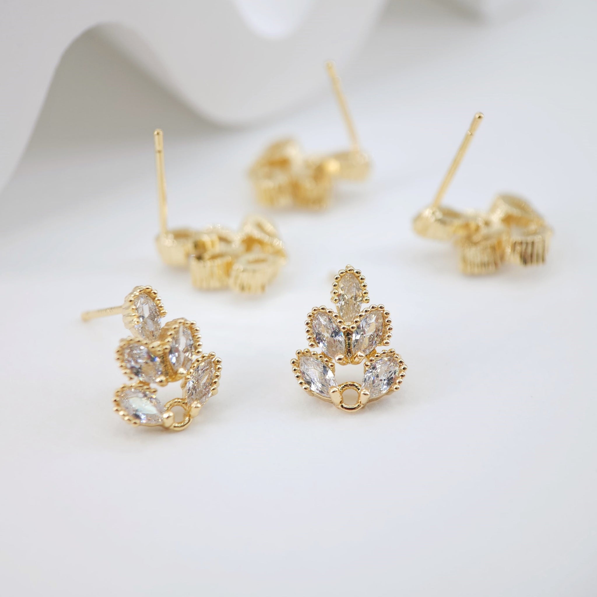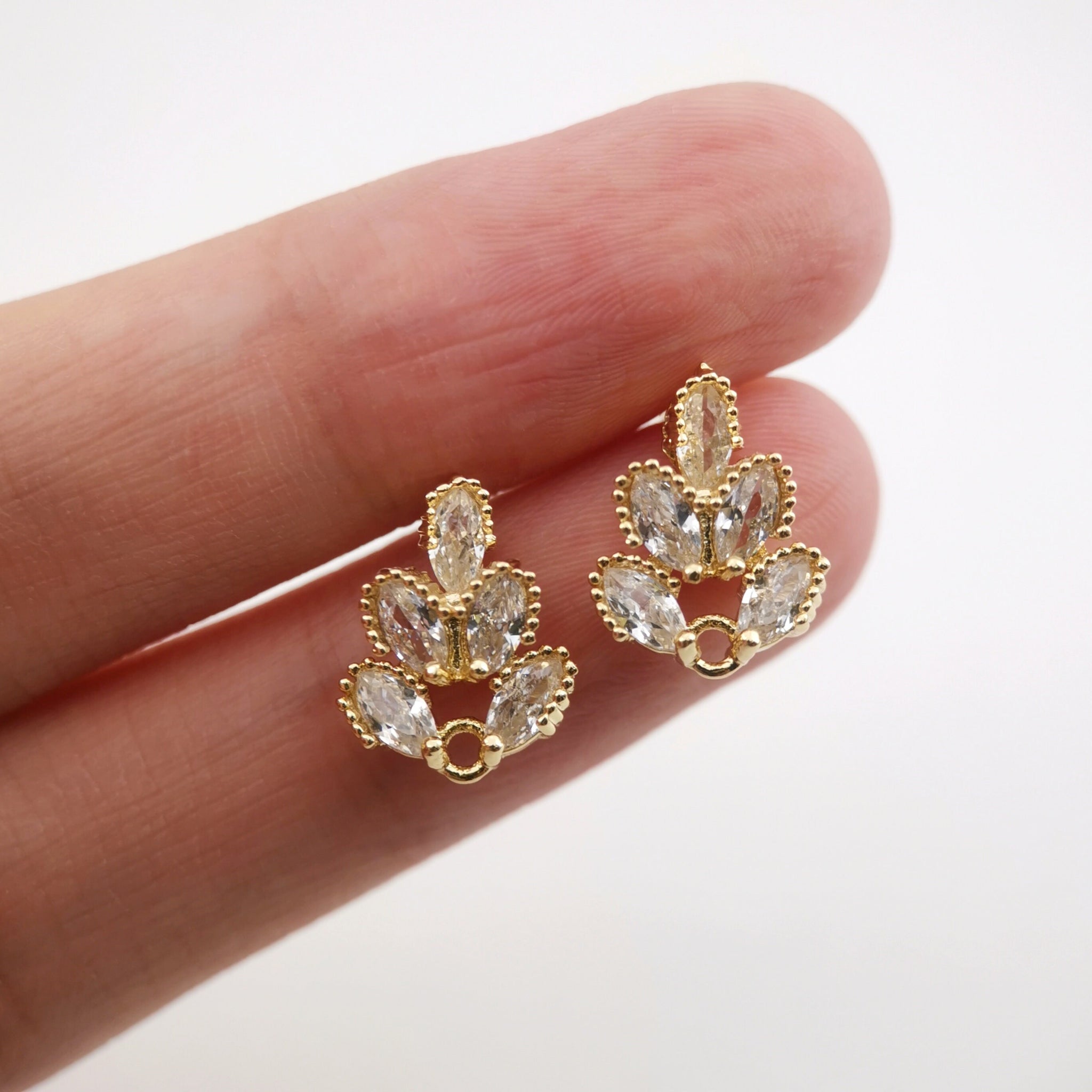 أقراط على شكل زهرة من الزركونيا المكعبة، مطلية بالذهب مع حلقة، مضادة للحساسية، أدوات يدوية الصنع، لوازم صنع الأقراط بنفسك D0032