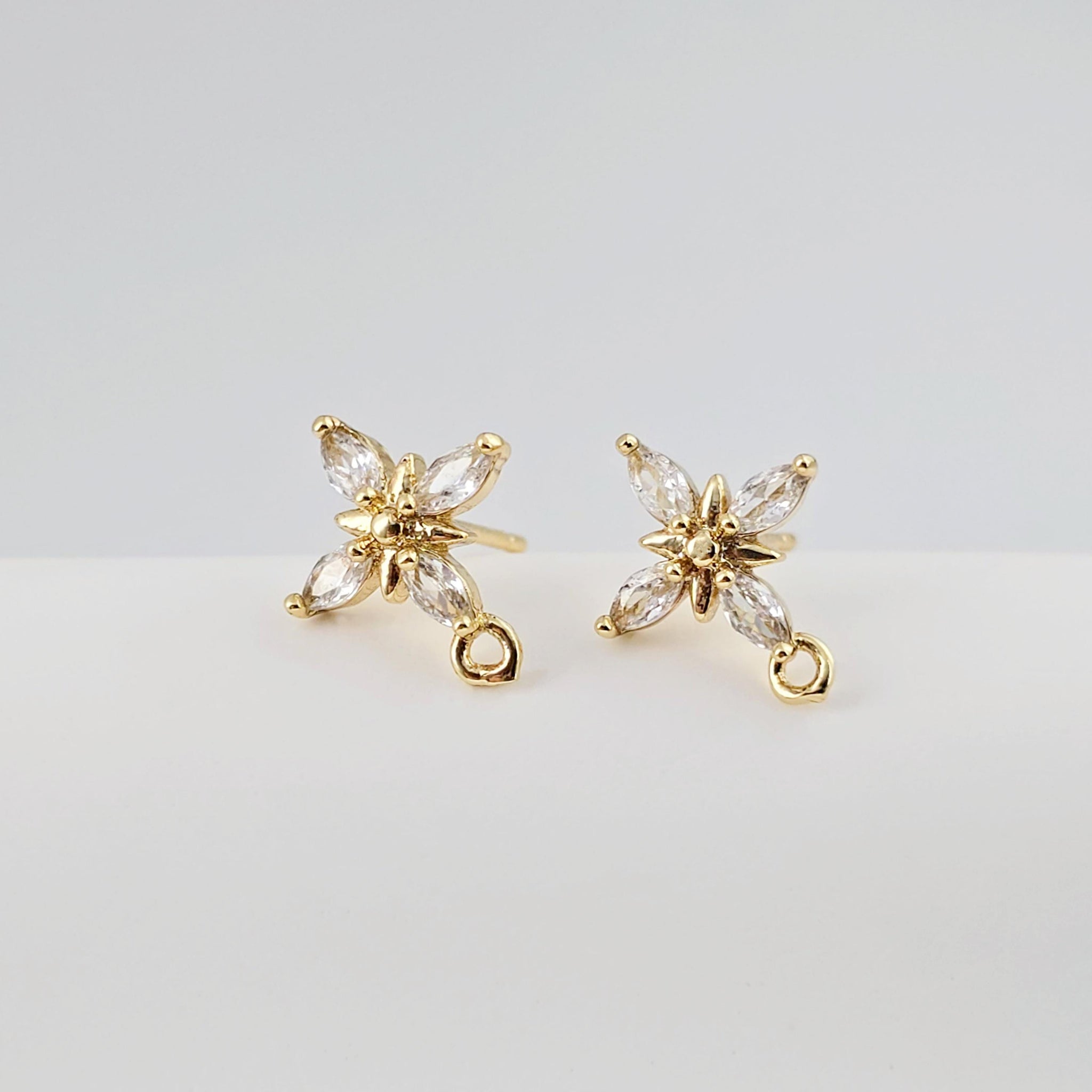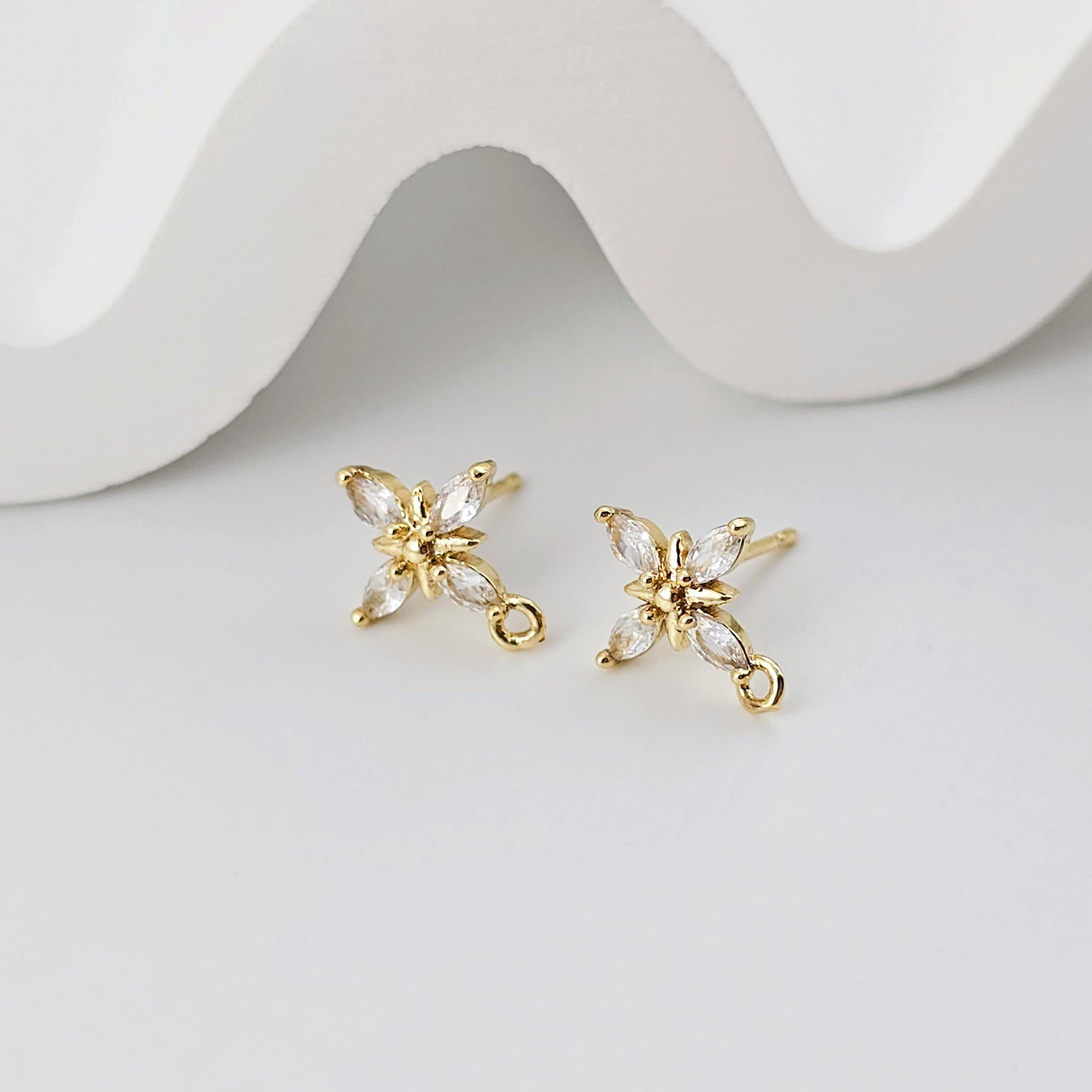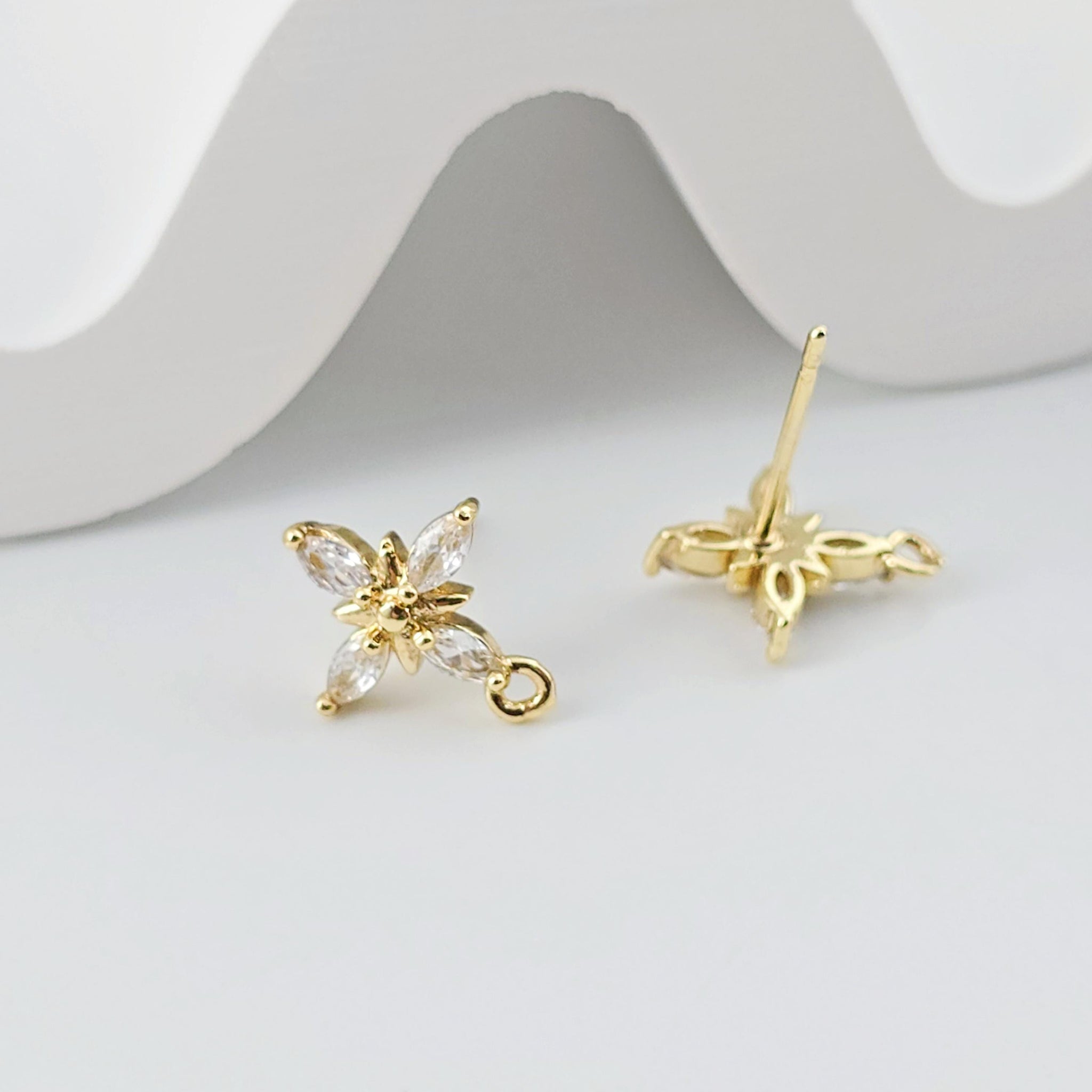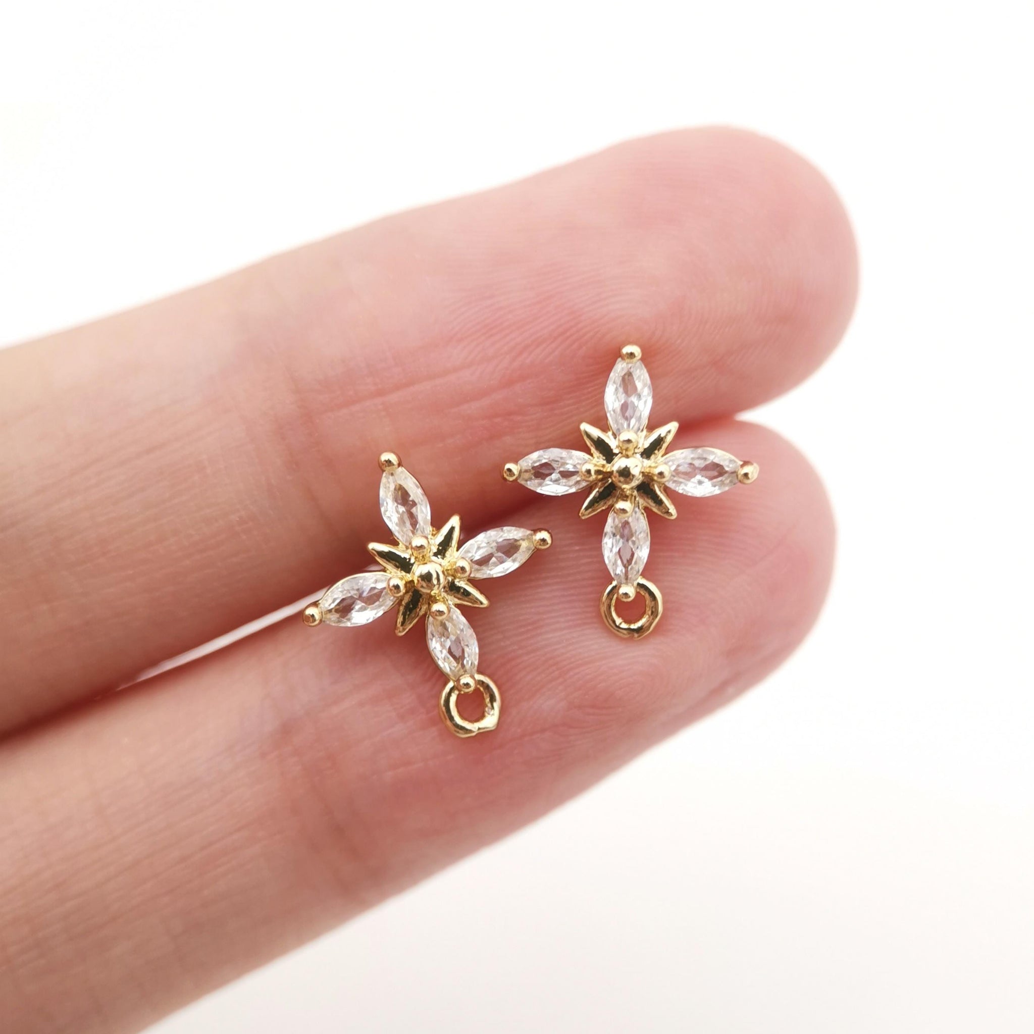 أقراط على شكل زهرة من الزركونيا المكعبة، مطلية بالذهب مع حلقة، مضادة للحساسية، أدوات يدوية الصنع، لوازم صنع الأقراط بنفسك D0258