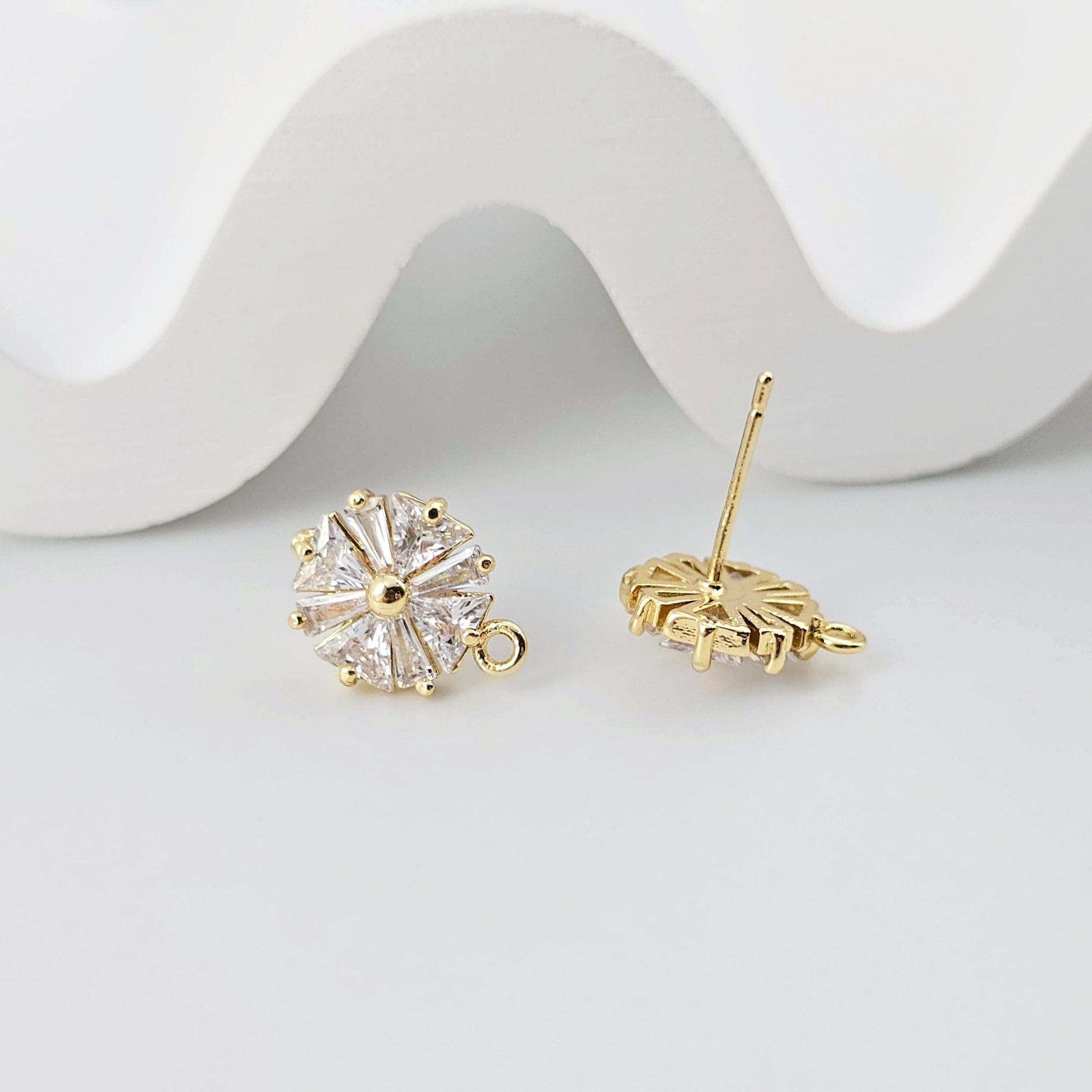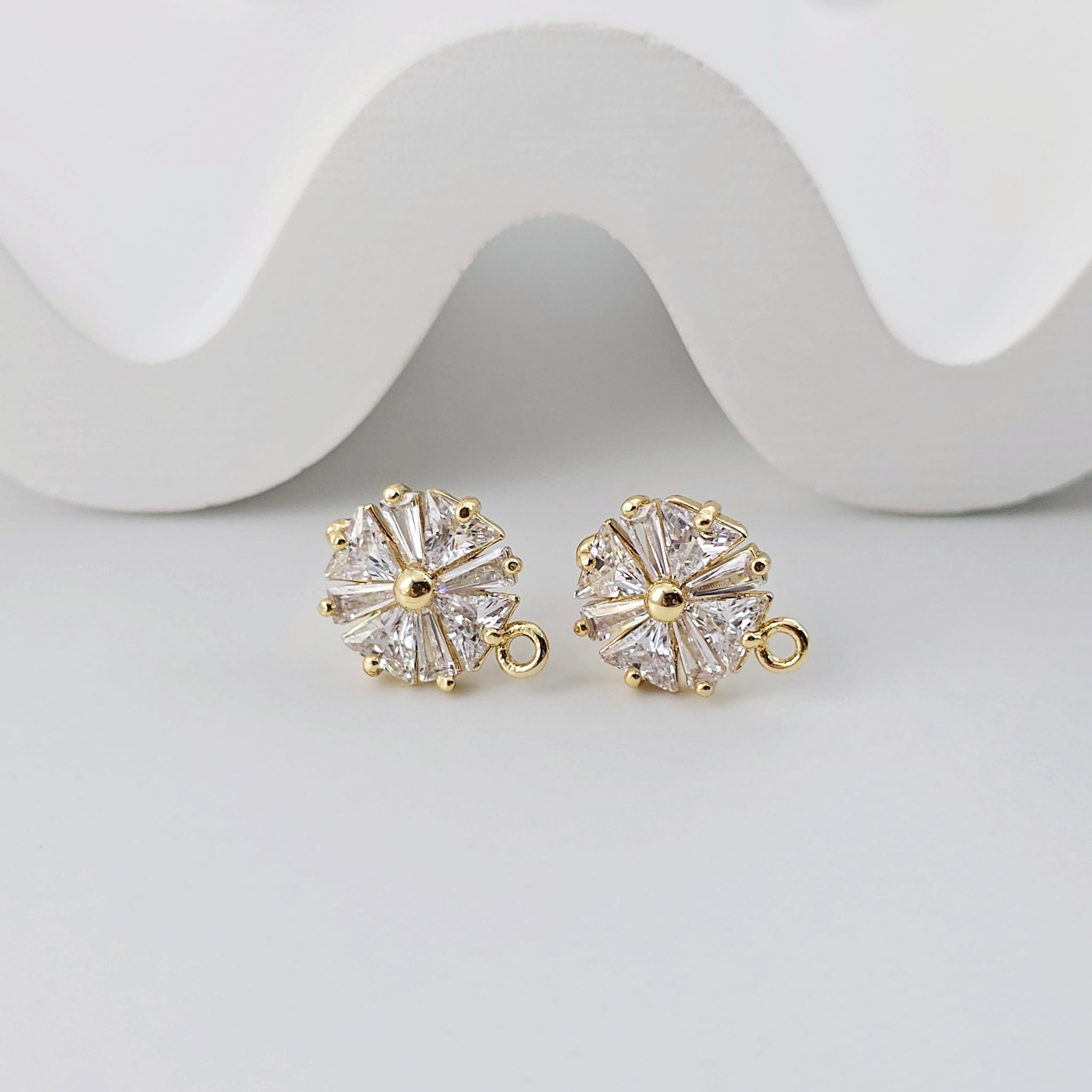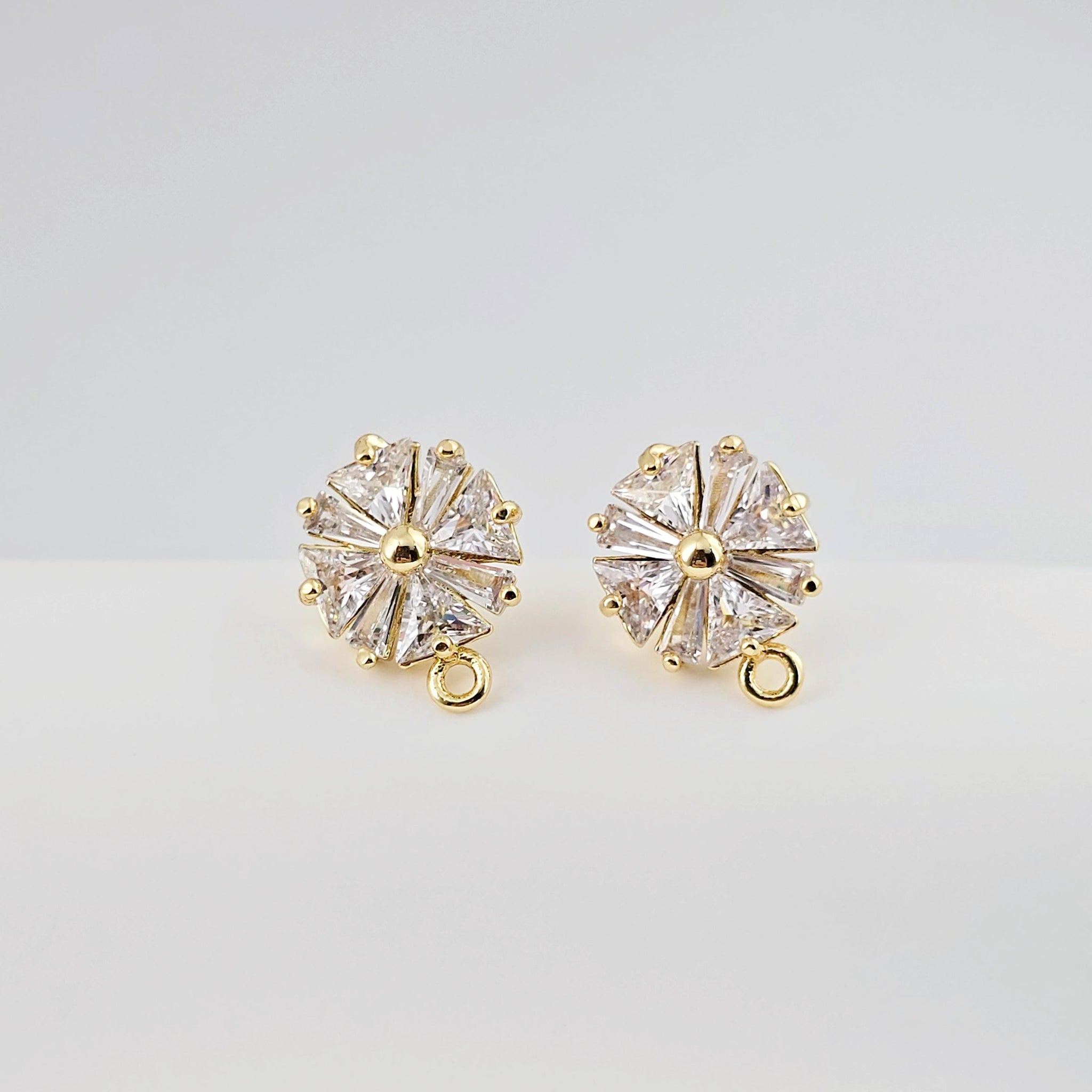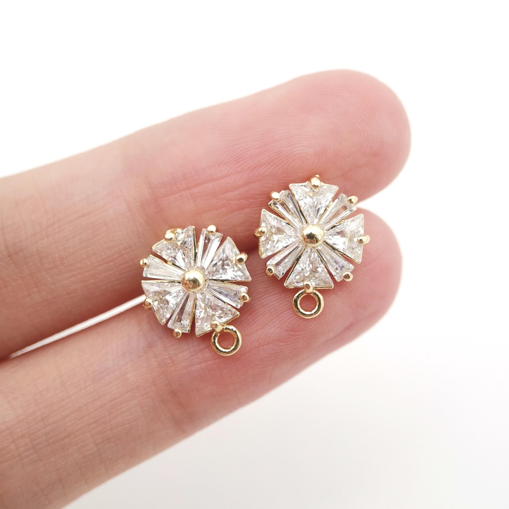 أقراط على شكل زهرة من الزركونيا المكعبة، مطلية بالذهب مع حلقة، مضادة للحساسية، أدوات يدوية الصنع، لوازم صنع الأقراط بنفسك D0262