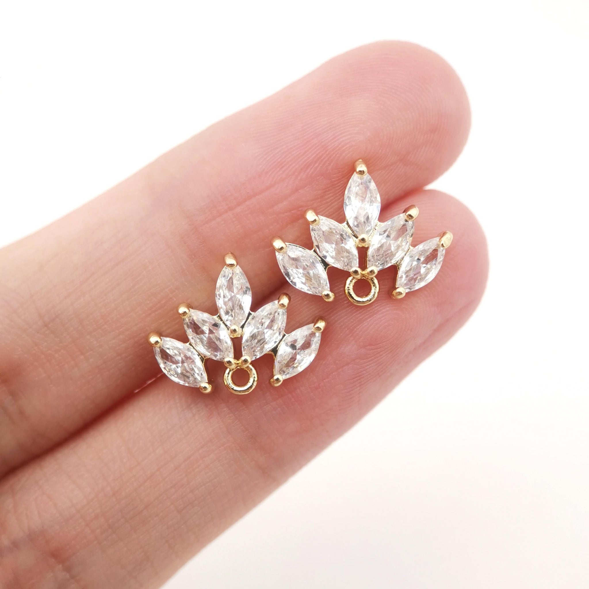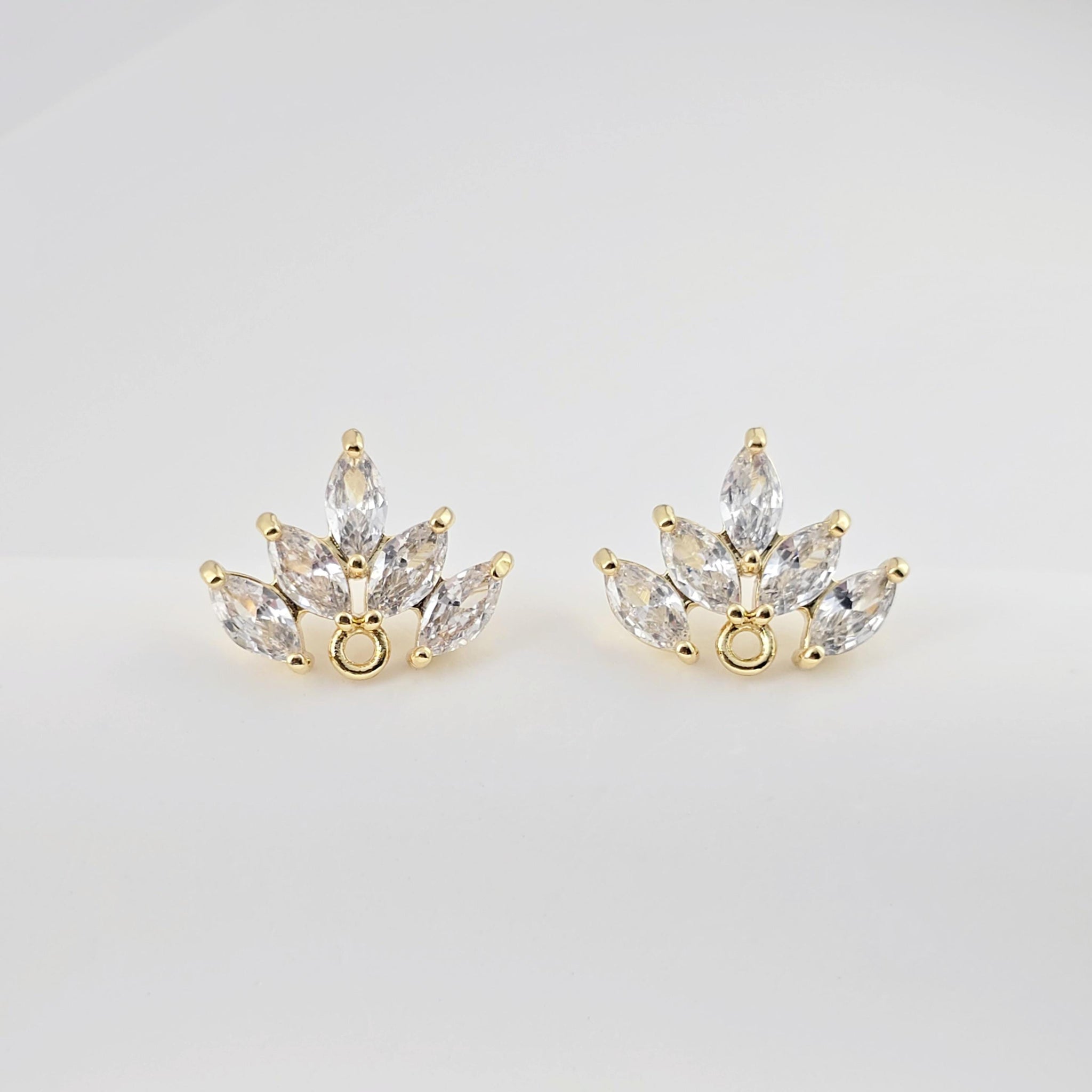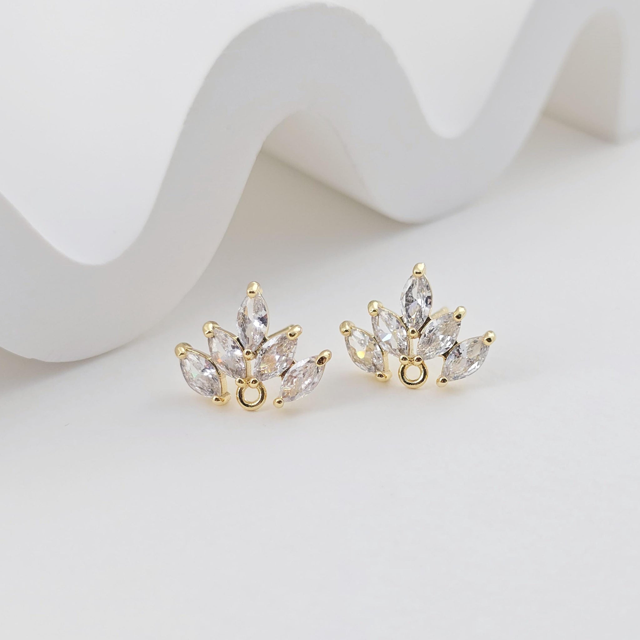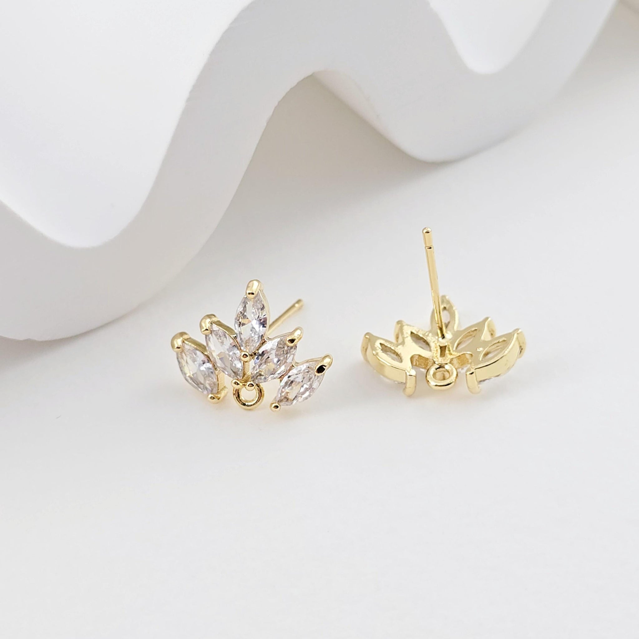 أقراط على شكل زهرة من الزركونيا المكعبة، مطلية بالذهب مع حلقة، مضادة للحساسية، مصنوعة يدويًا، لوازم صنع الأقراط بنفسك D0284
