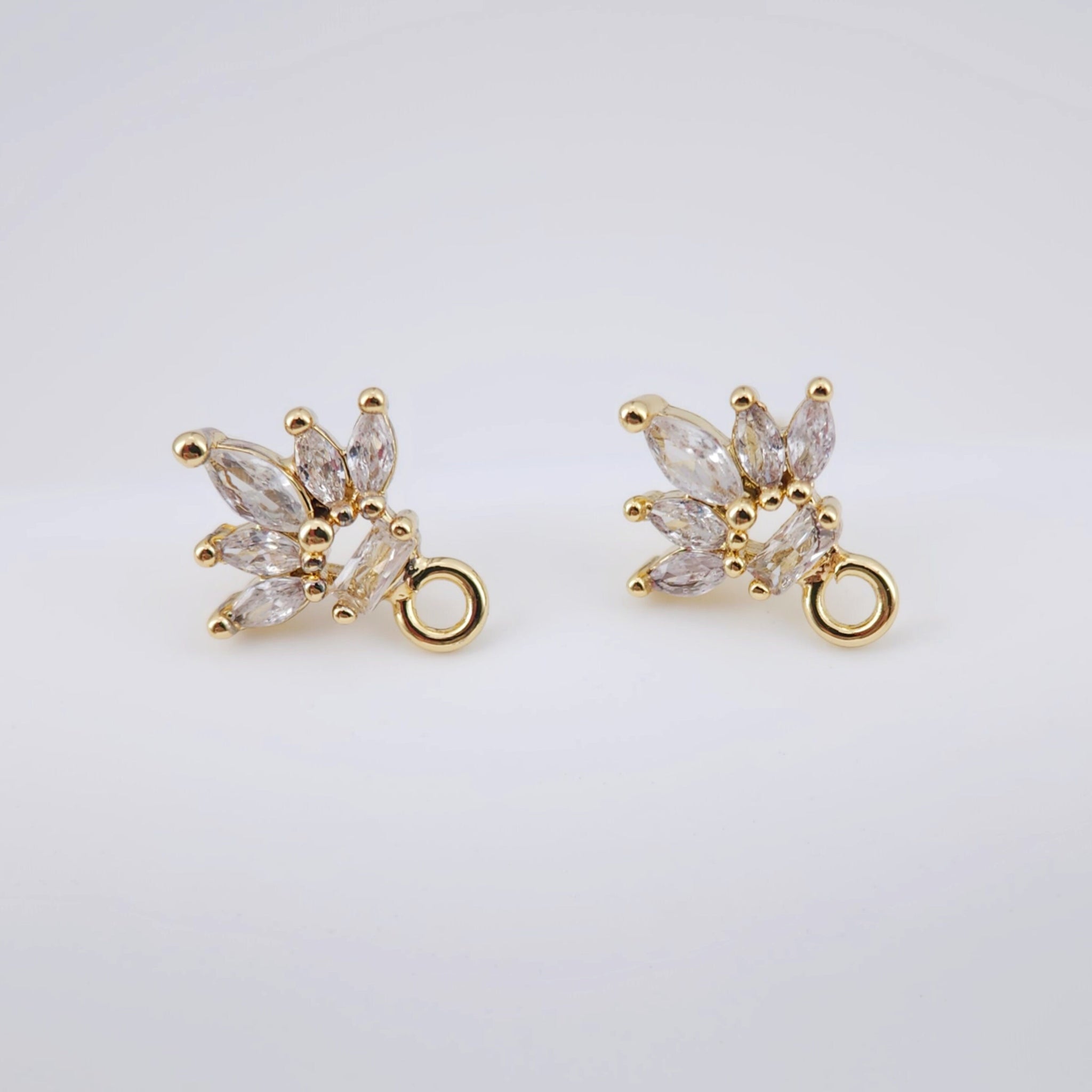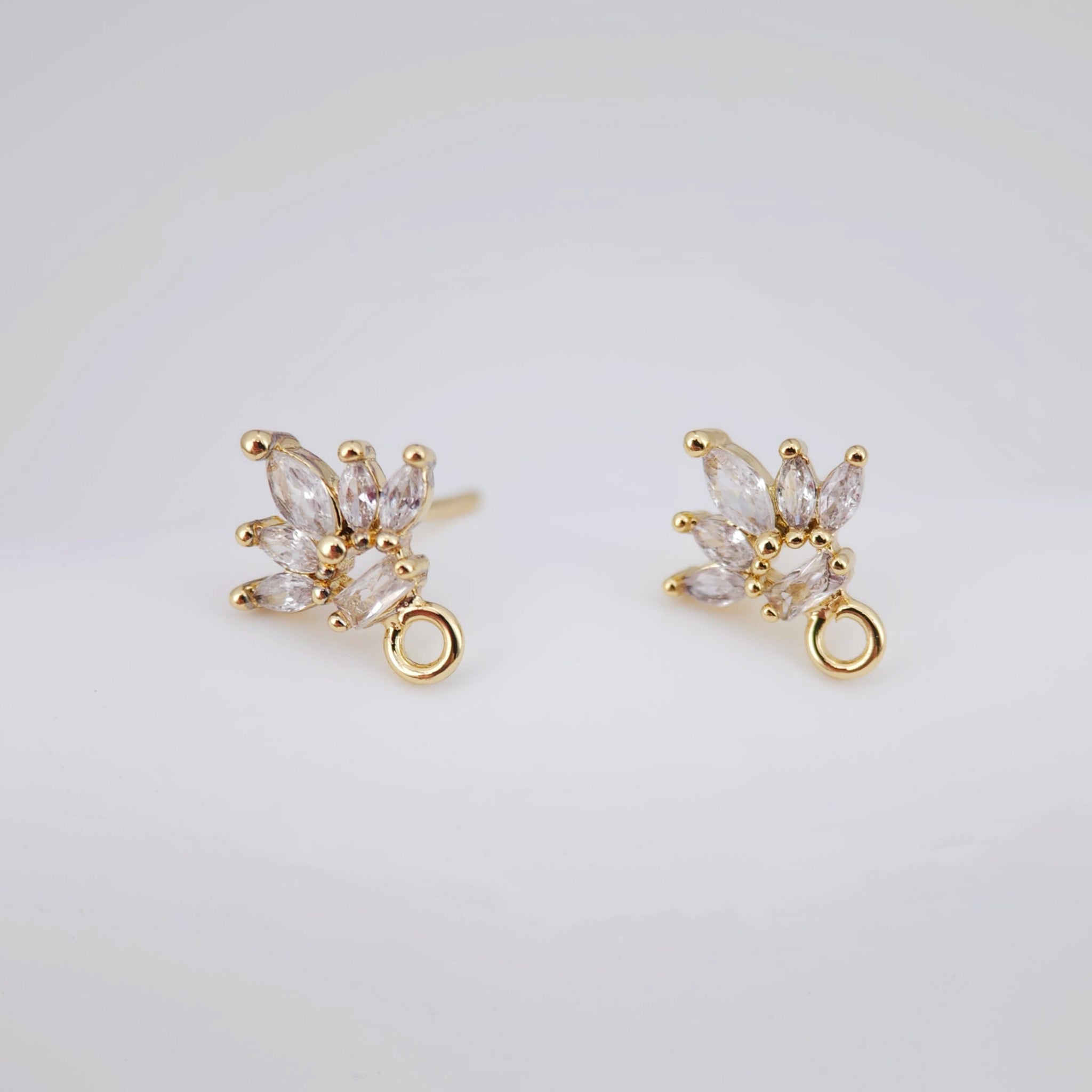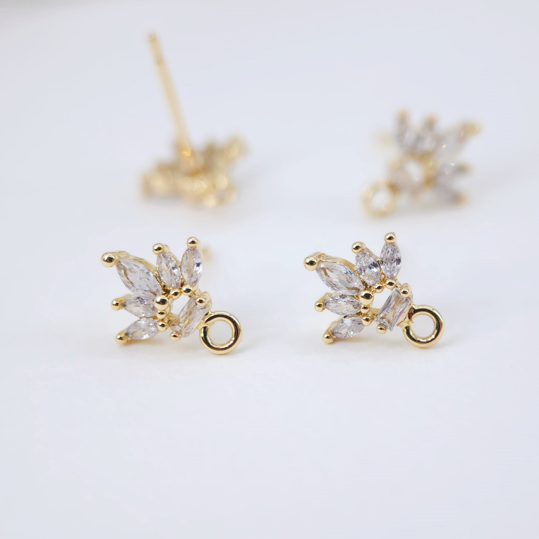 أقراط على شكل ورقة من الزركونيا المكعبة، مطلية بالذهب مع حلقة، مضادة للحساسية، أدوات يدوية الصنع، لوازم صنع الأقراط بنفسك D0025