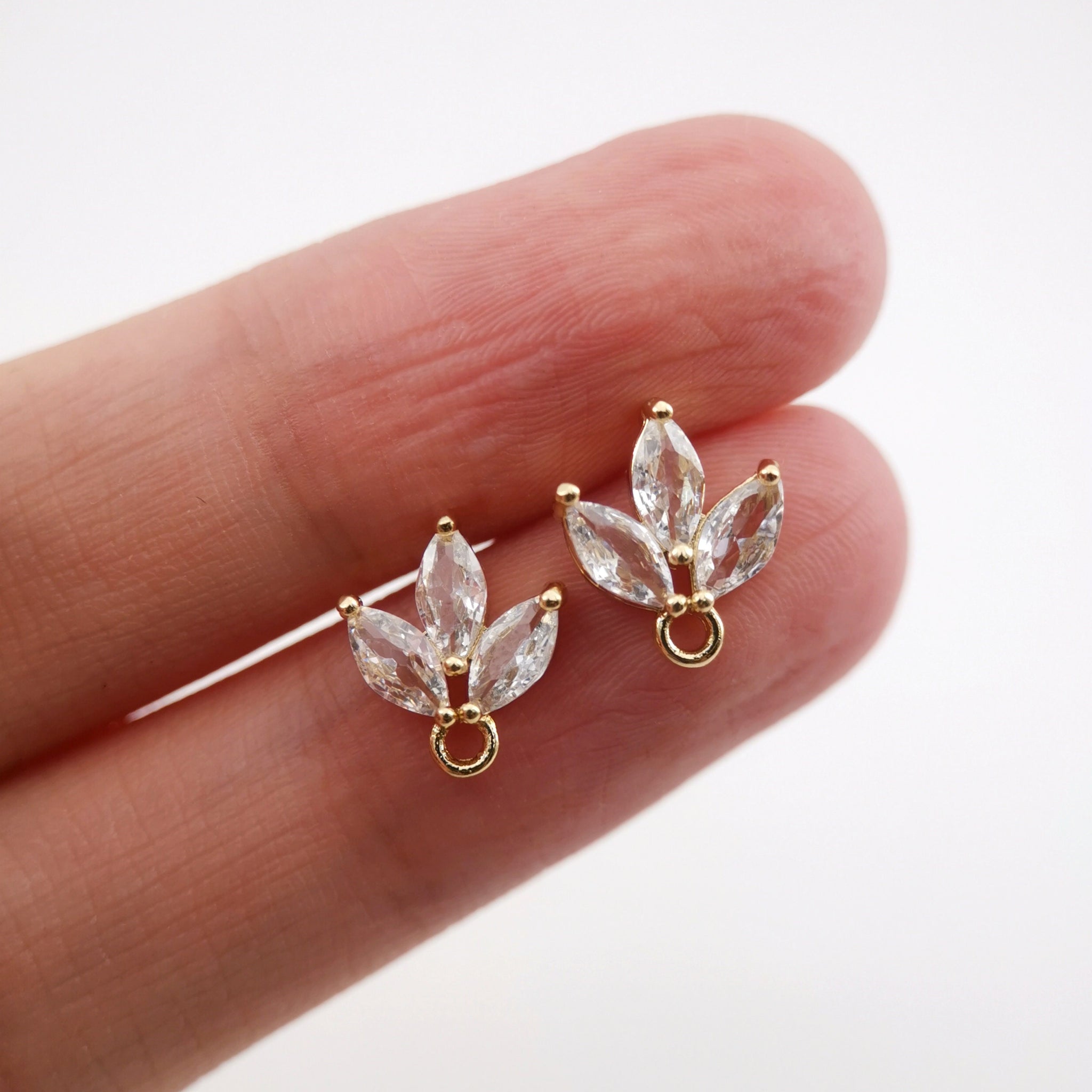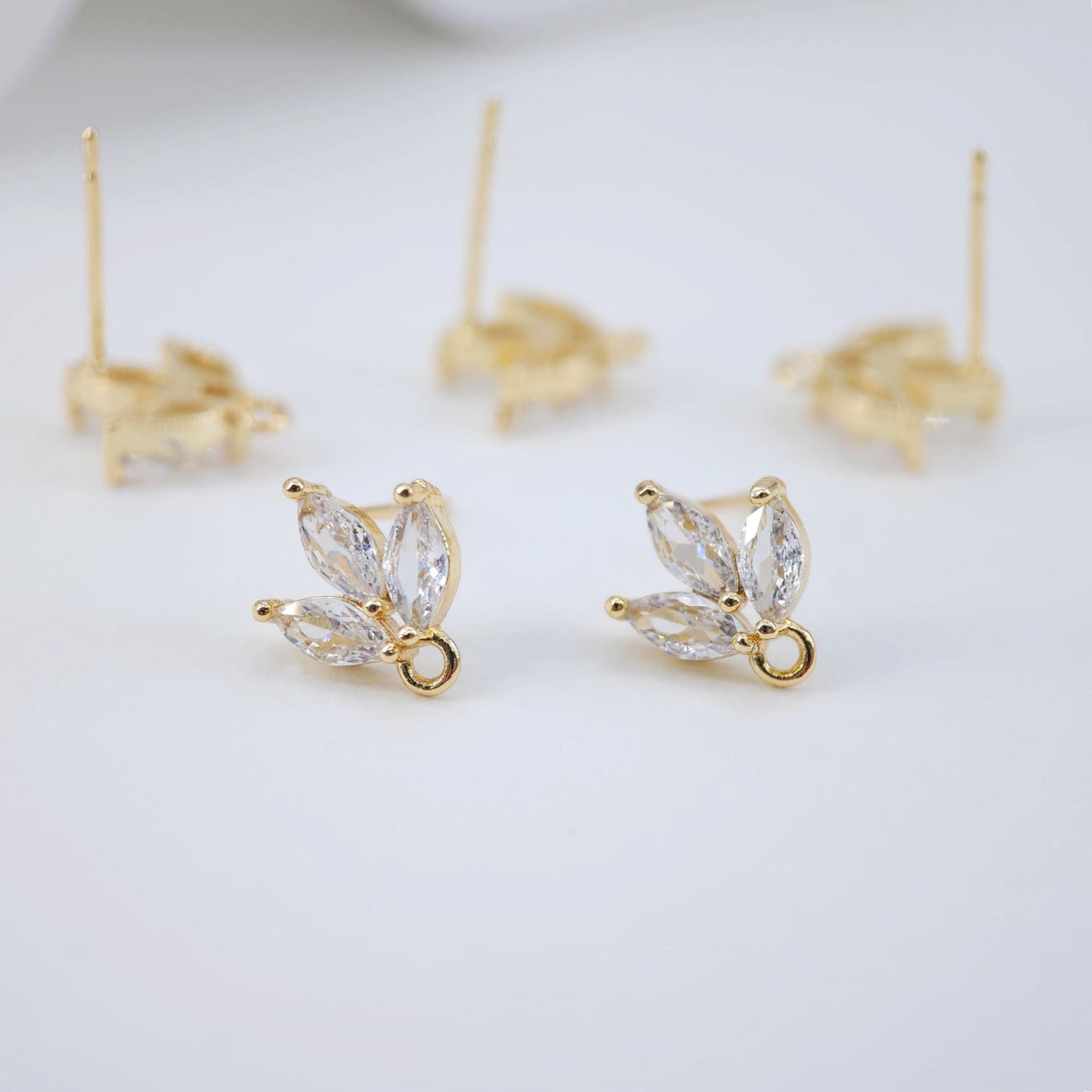 أقراط على شكل ورقة من الزركونيا المكعبة، دعامة مطلية بالذهب مع حلقة، مضادة للحساسية، أدوات يدوية الصنع للعثور على الأقراط، لوازم صنع الأقراط بنفسك D0030