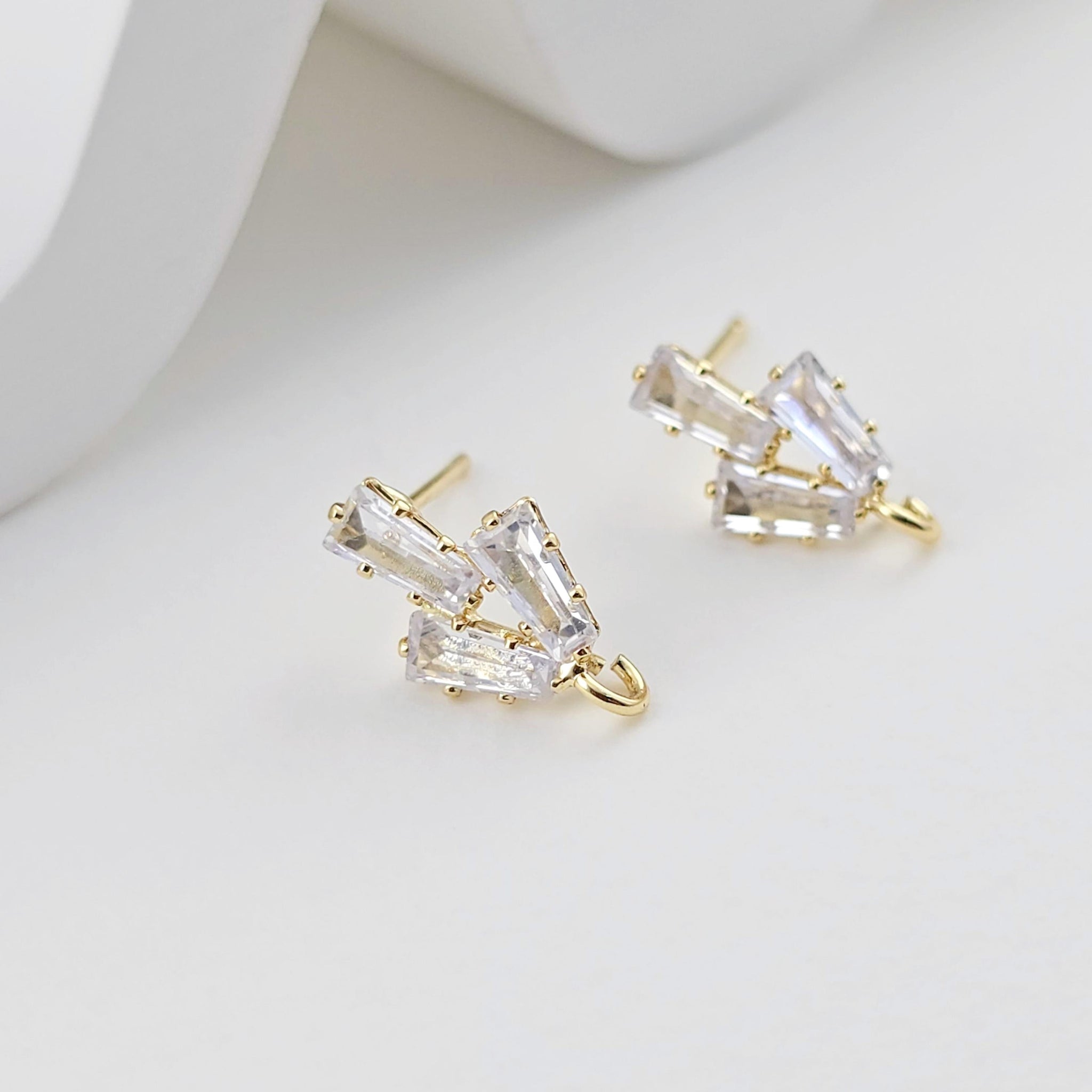 بيتعمود الأذن/الأزرارأقراط على شكل ورقة من الزركونيا المكعبة، دبوس من الفضة الاسترلينية عيار 925، مطلية بالذهب عيار 18 قيراطًا مع حلقة، مضادة للحساسية، لوازم صنع الأقراط بنفسك D0281