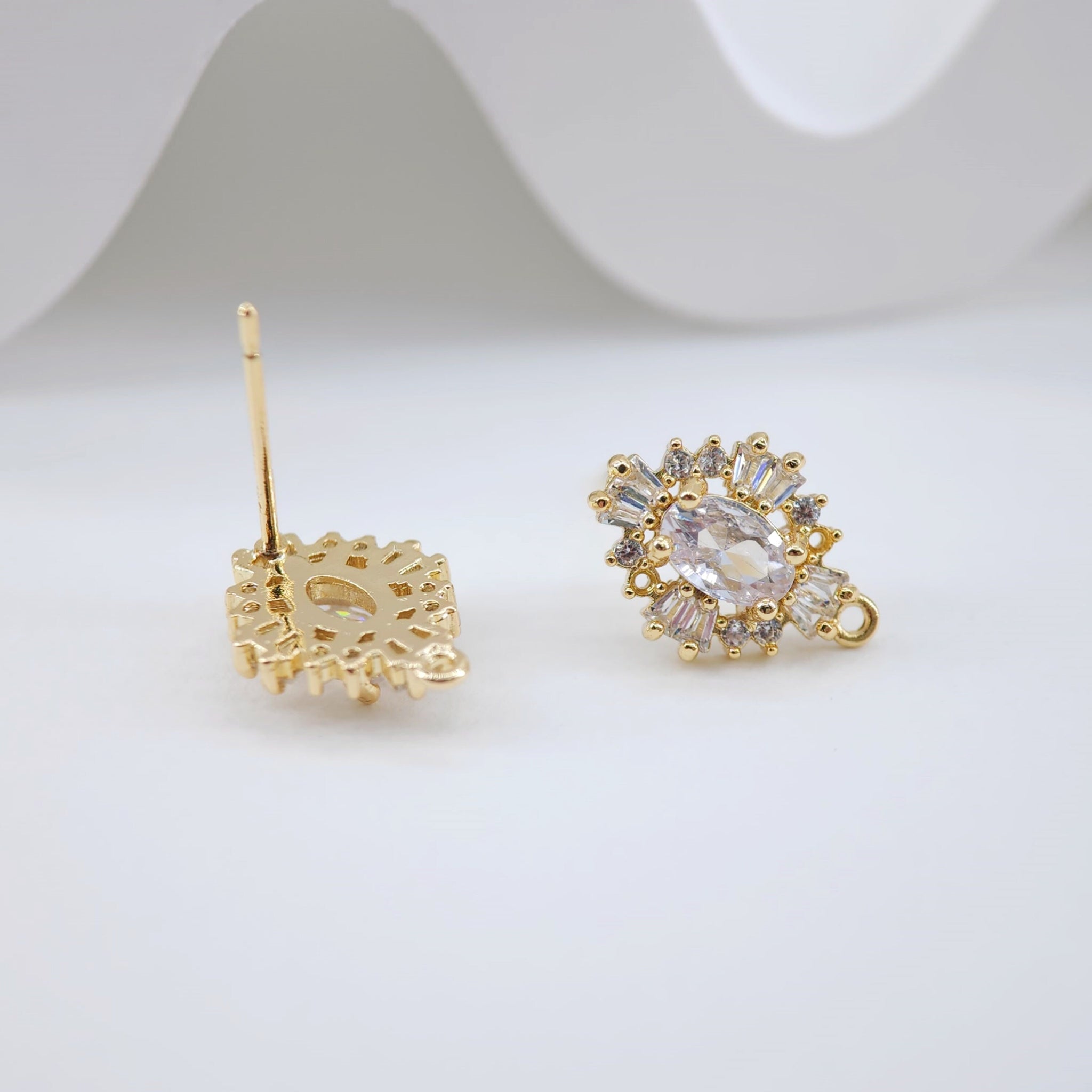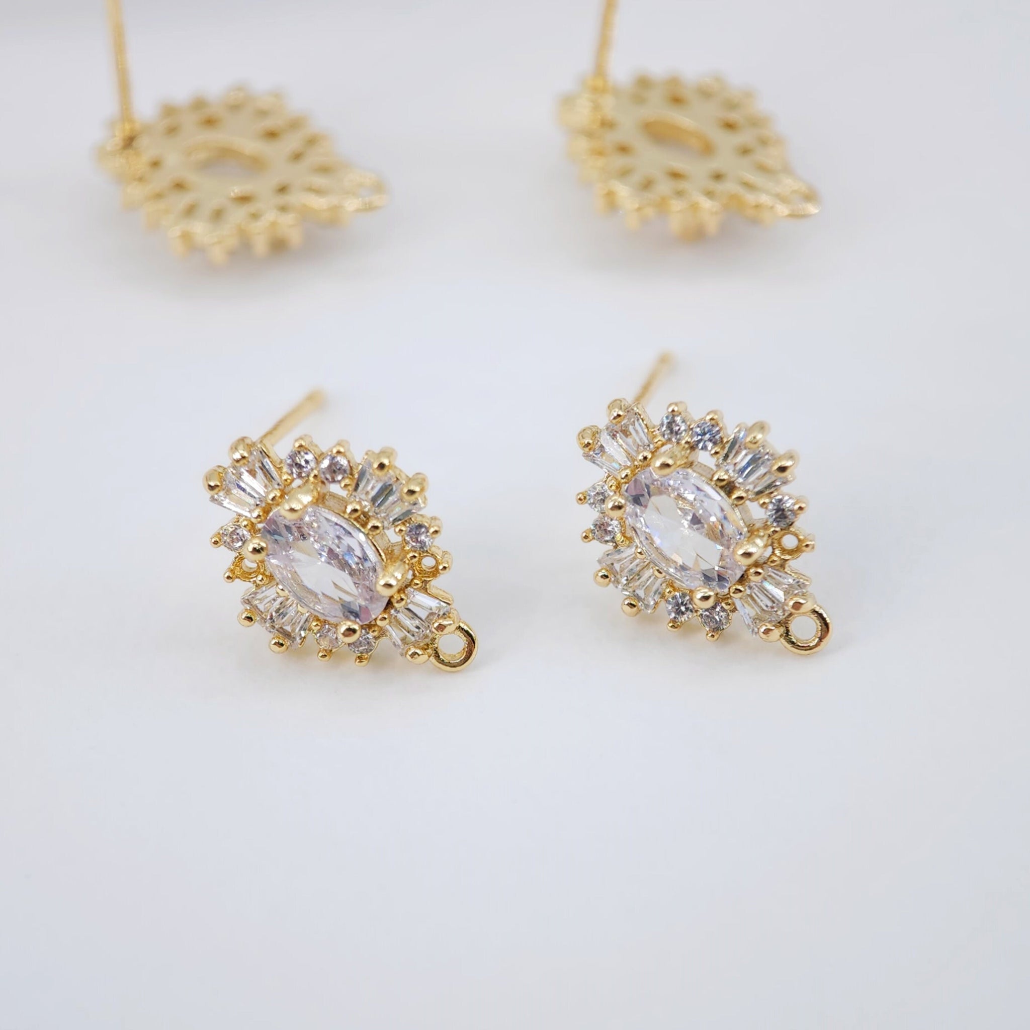 أقراط على شكل معين من الزركونيا المكعبة، أقراط على شكل زهرة ذهبية مع حلقة، مضادة للحساسية، قطع أقراط، لوازم صنع أقراط يدوية الصنع D0042