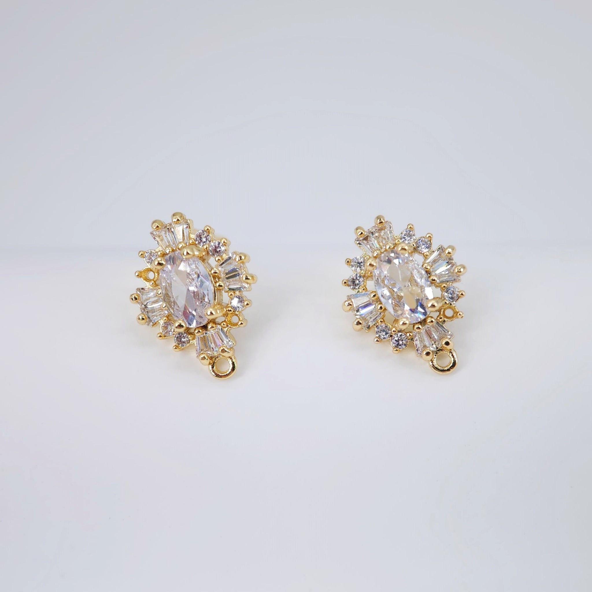 بيتعمود الأذن/الأزرارأقراط على شكل معين من الزركونيا المكعبة، أقراط على شكل زهرة ذهبية مع حلقة، مضادة للحساسية، قطع أقراط، لوازم صنع أقراط يدوية الصنع D0042