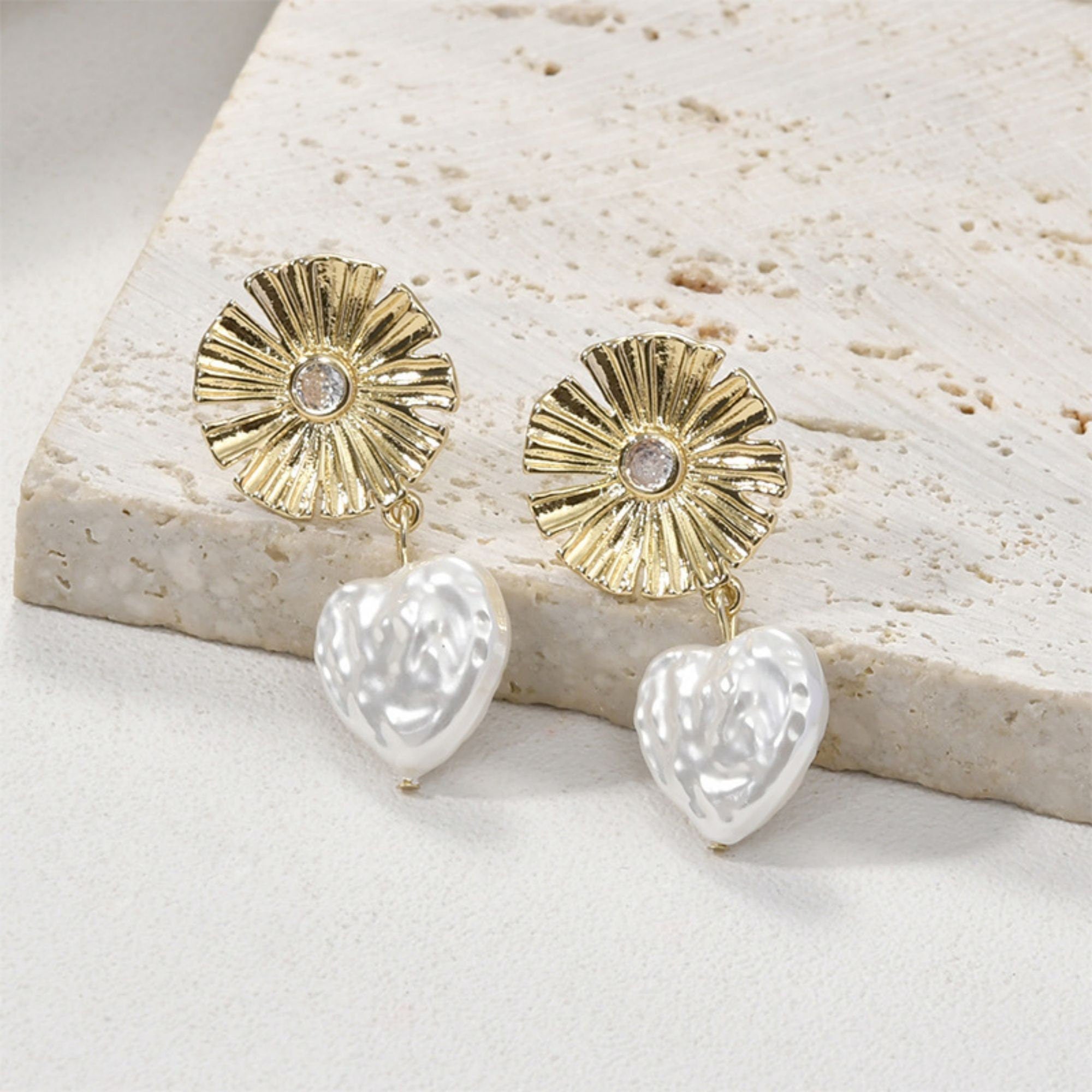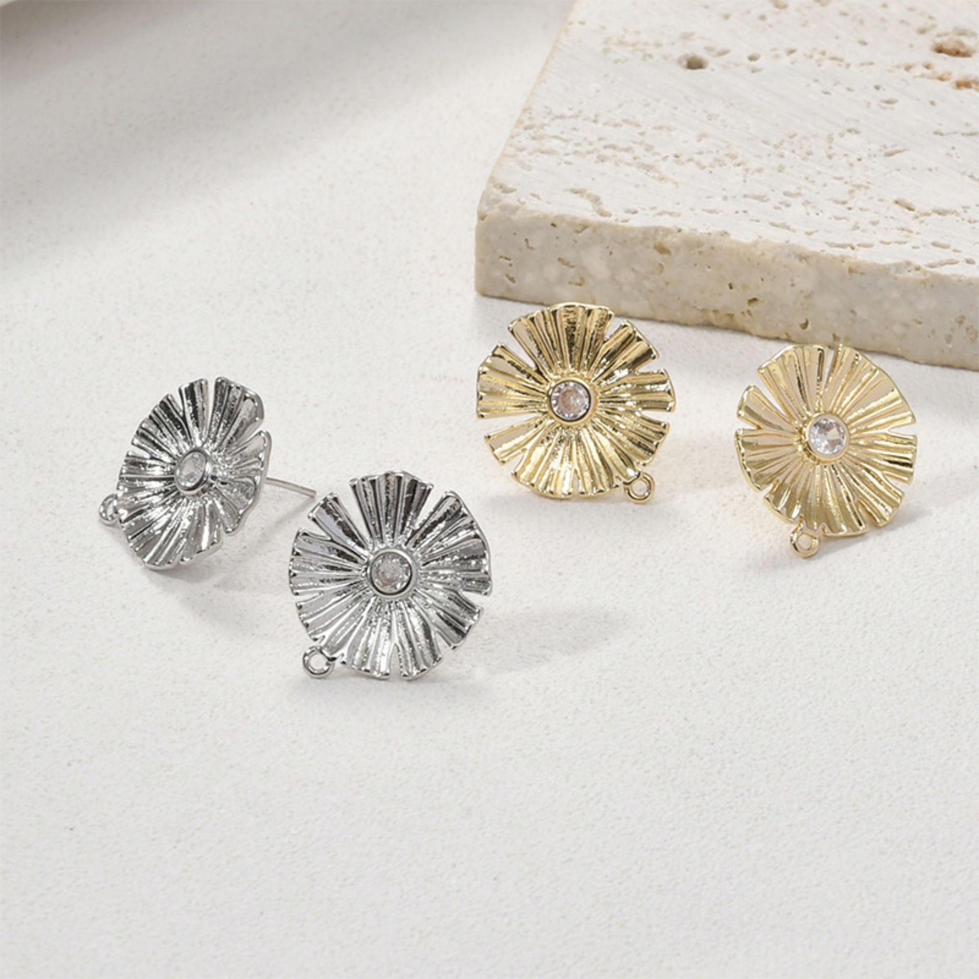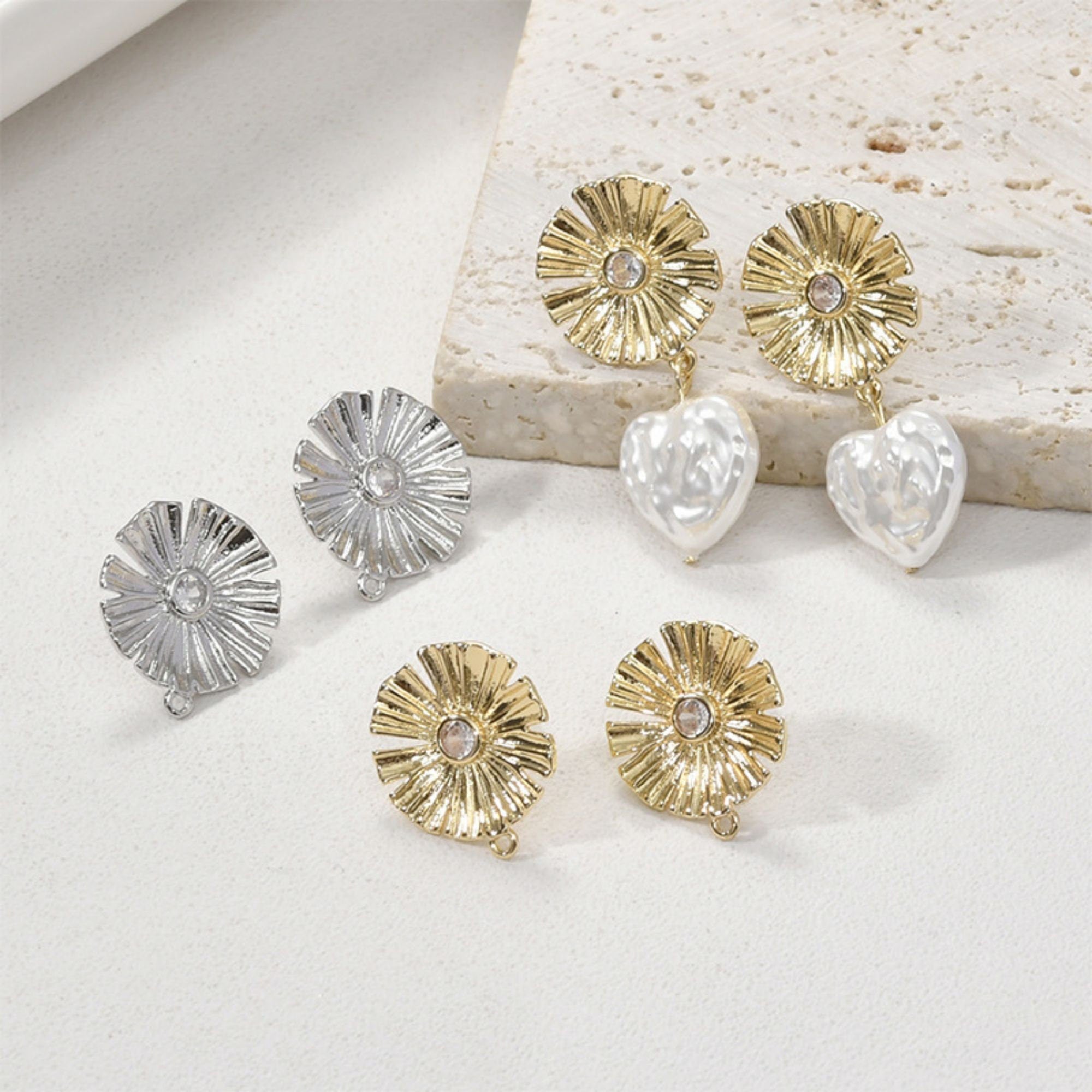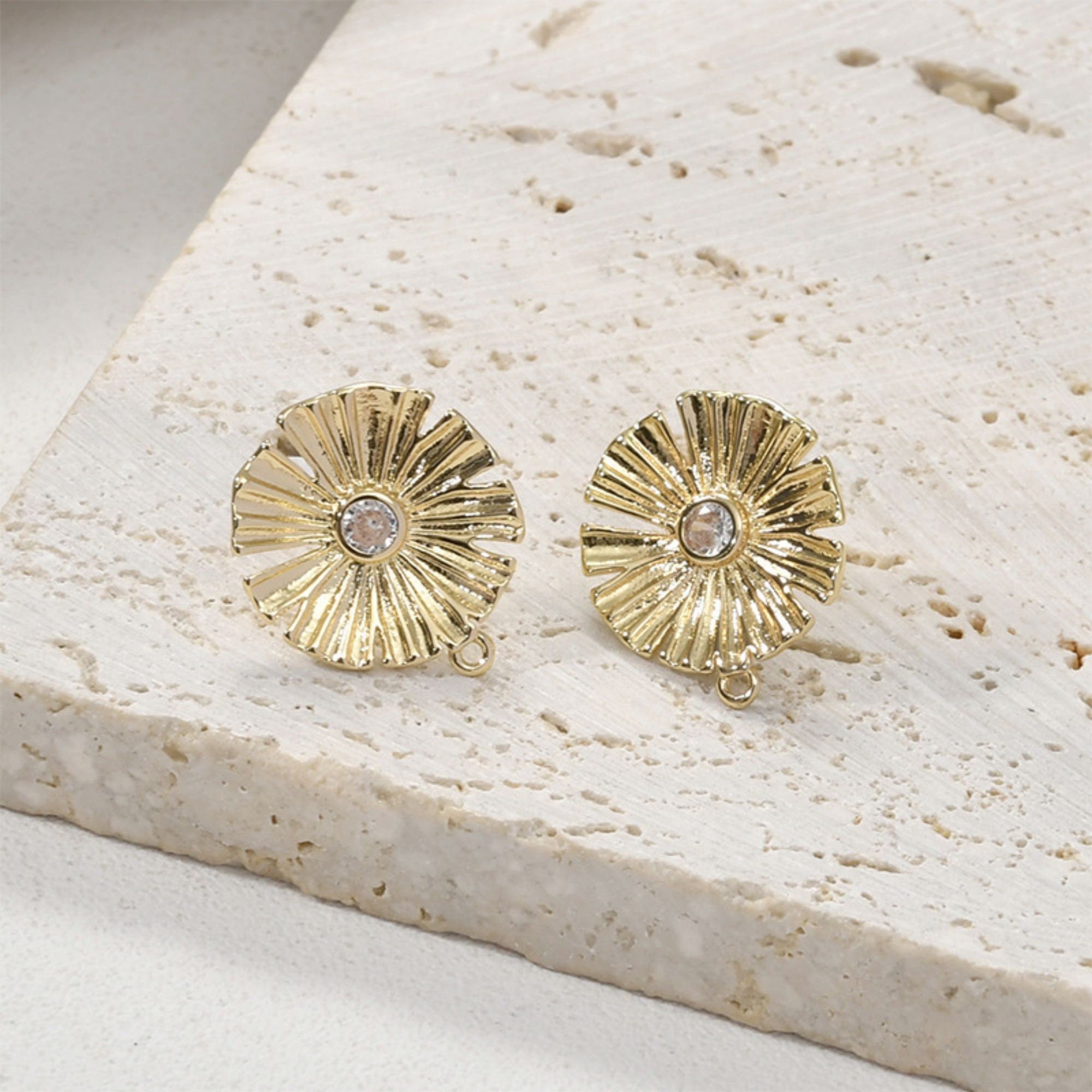 عمود قرط زهرة، قرط مرصع من النحاس المطلي بالذهب الحقيقي عيار 18 قيراطًا مع حلقة، خالٍ من النيكل، أداة العثور على القرط LL217-D0384