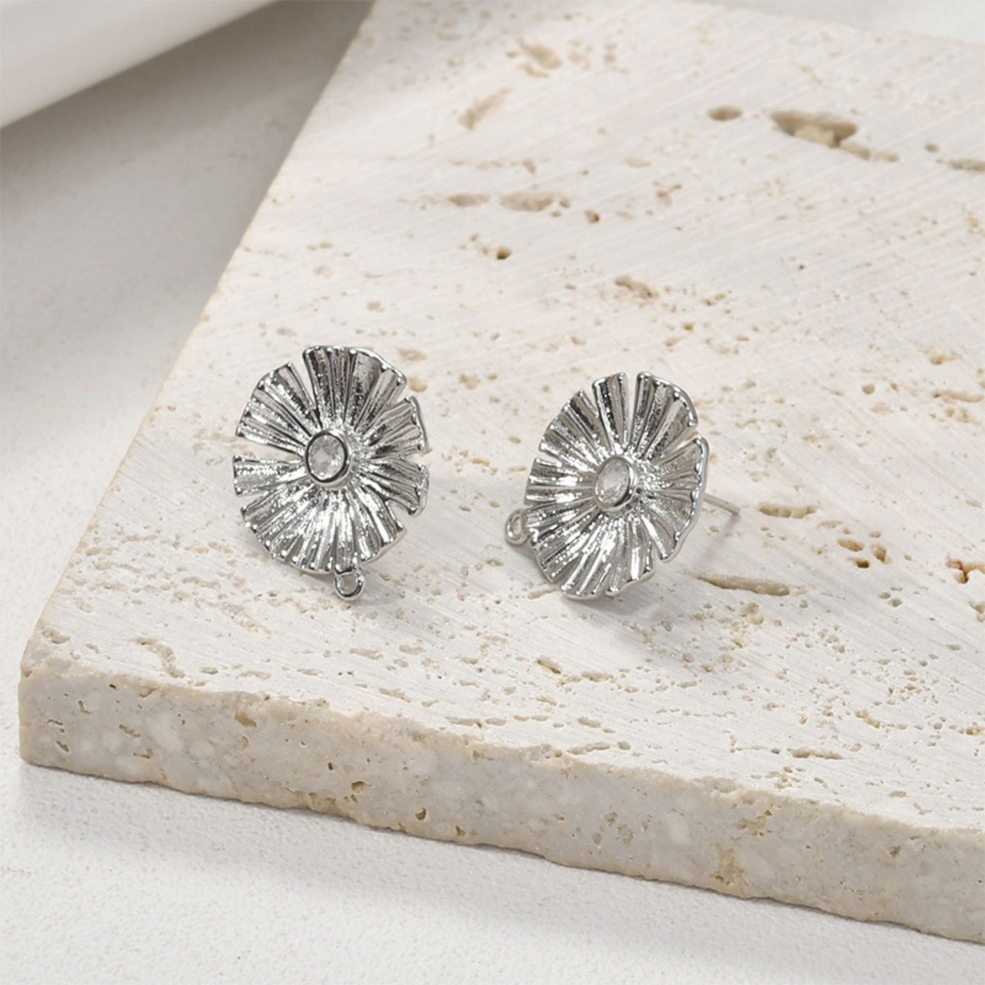 بيتعمود الأذن/الأزرارعمود قرط زهرة، قرط مرصع من النحاس المطلي بالذهب الحقيقي عيار 18 قيراطًا مع حلقة، خالٍ من النيكل، أداة العثور على القرط LL217-D0384