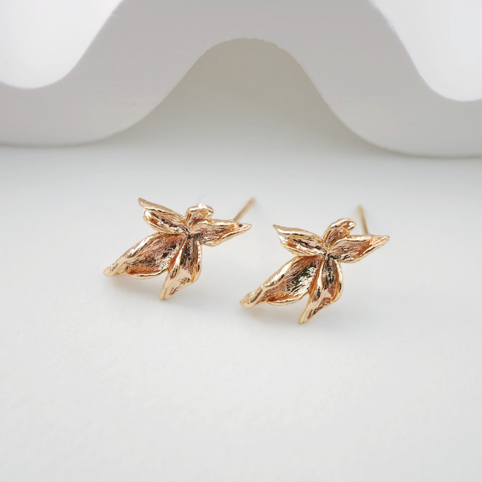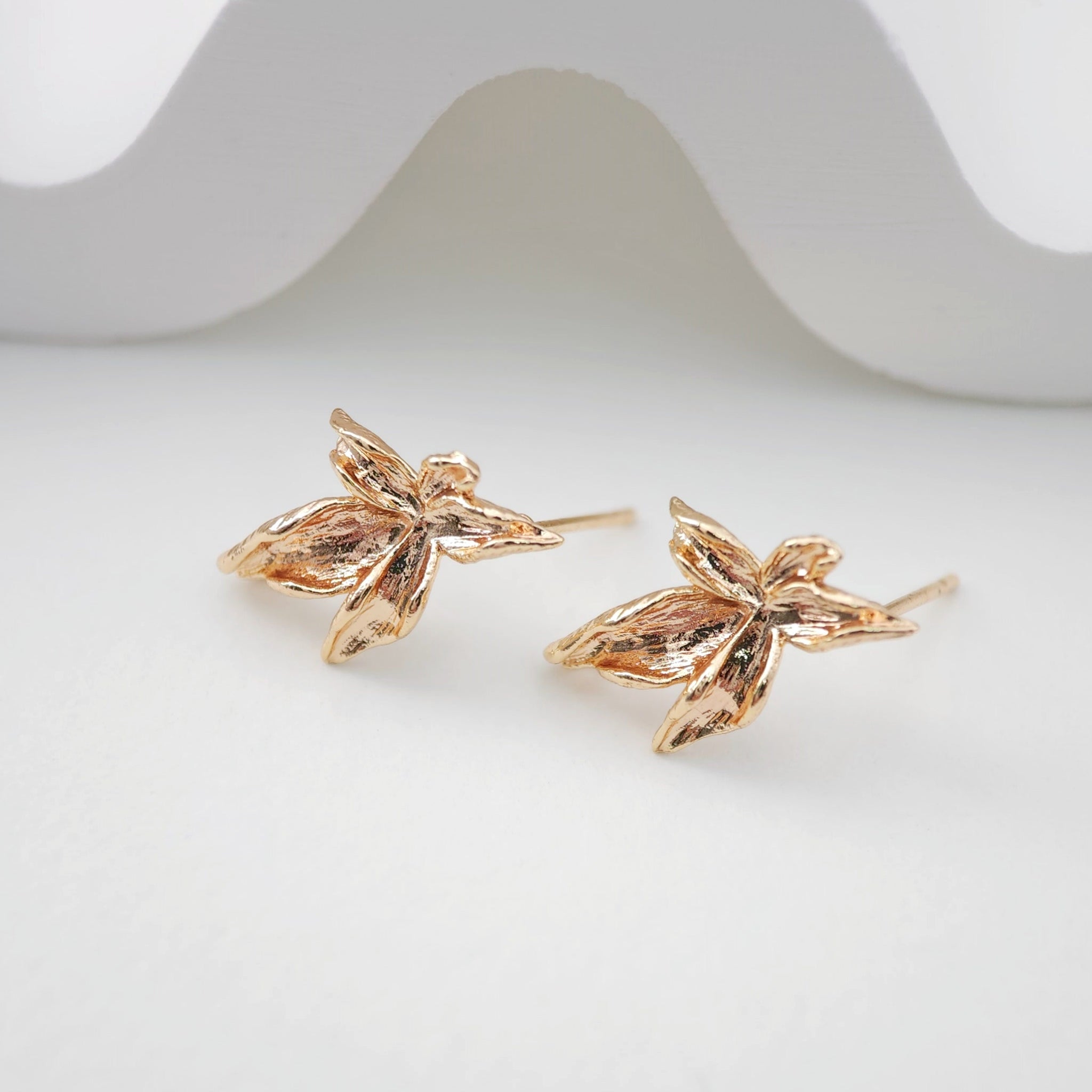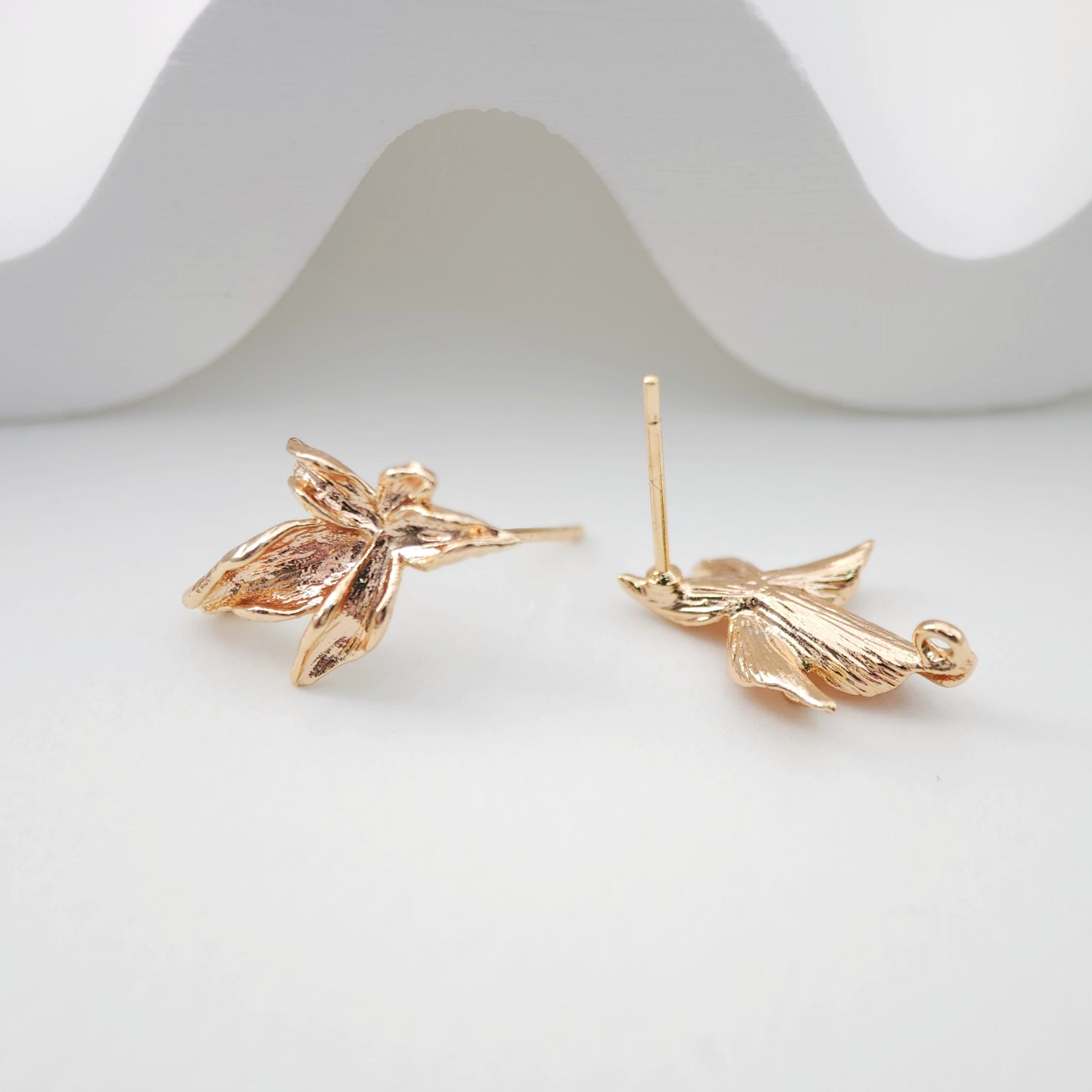 بيتعمود الأذن/الأزرارقرط زهرة مع حلقة، قرط مرصع من النحاس الأصفر مطلي بالذهب الحقيقي عيار 18 قيراطًا مع حلقة، خالٍ من النيكل، أداة العثور على القرط ZX191