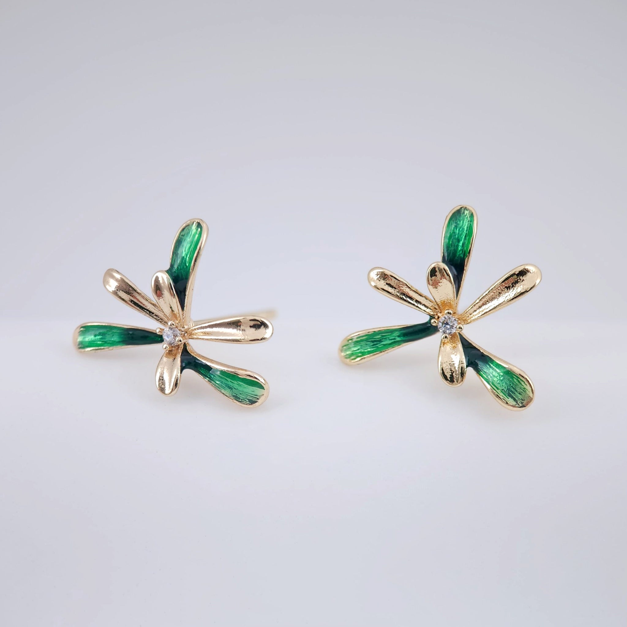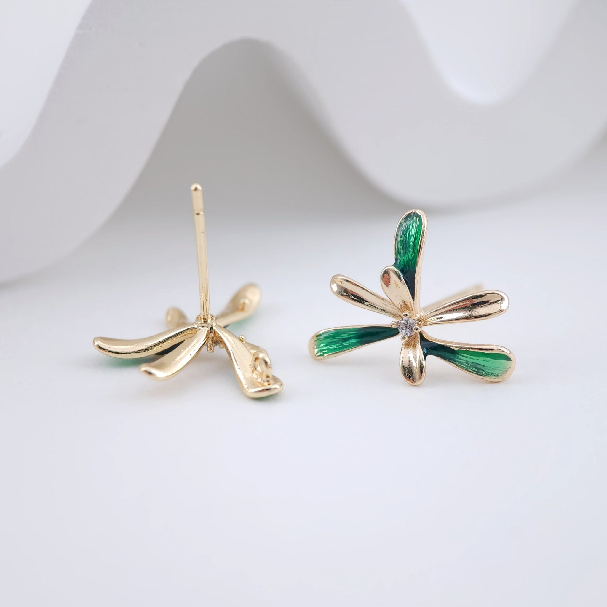 أعمدة أقراط على شكل زهور، عمود أقراط مطلي بالمينا الأخضر مع حلقة، أدوات يدوية للعثور على الأقراط، لوازم صنع الأقراط بنفسك ZX227