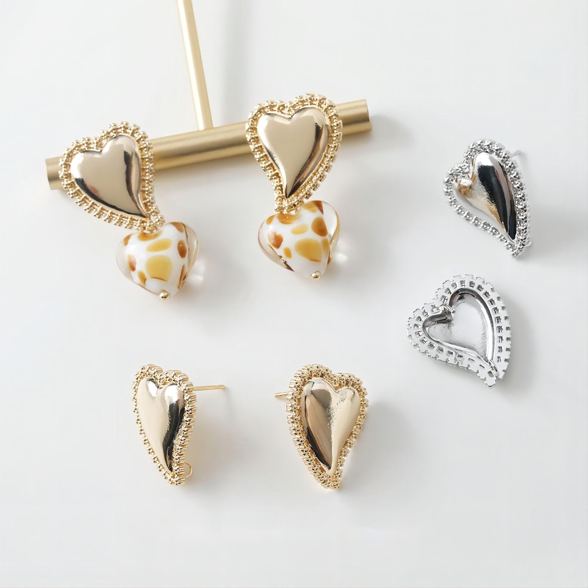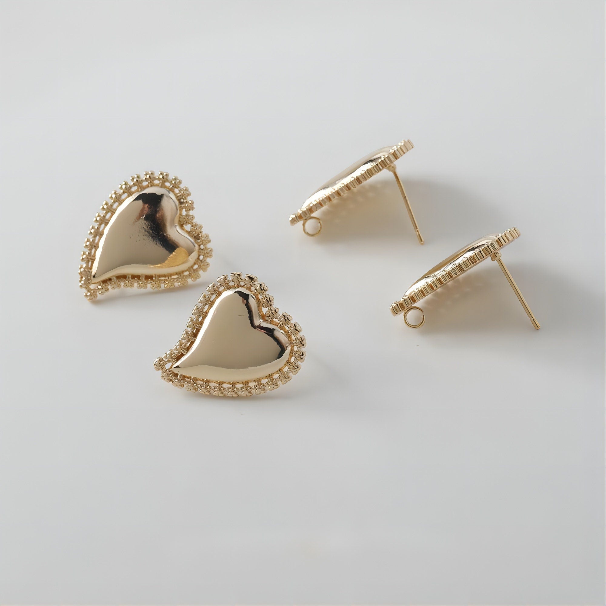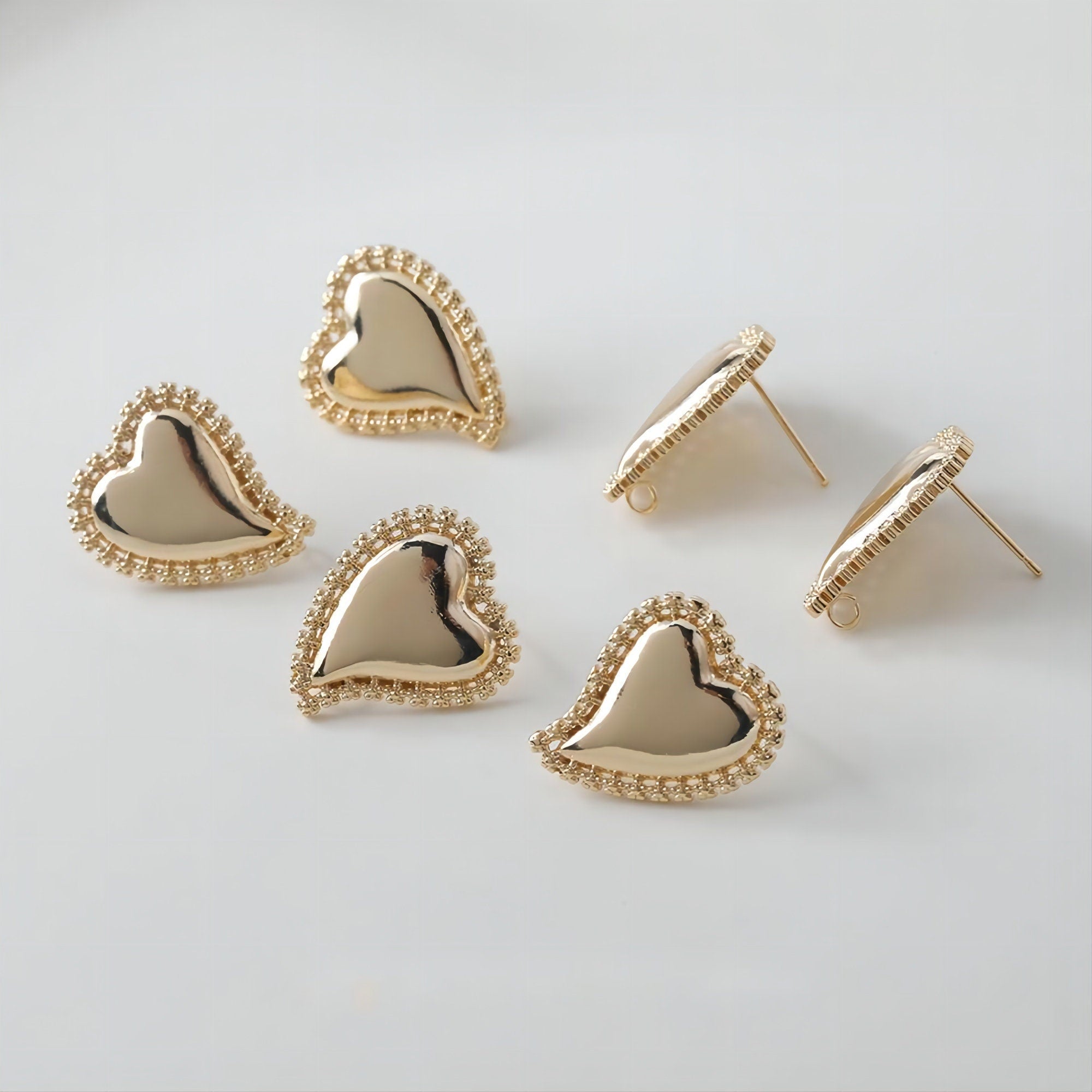 بيتعمود الأذن/الأزرارعمود قرط ذهبي على شكل قلب، أقراط من الذهب عيار 14 قيراطًا خالية من النيكل، دبابيس أذن من الفضة S925، 20 مم، قرط أذن على شكل قلب مع حلقة GE001