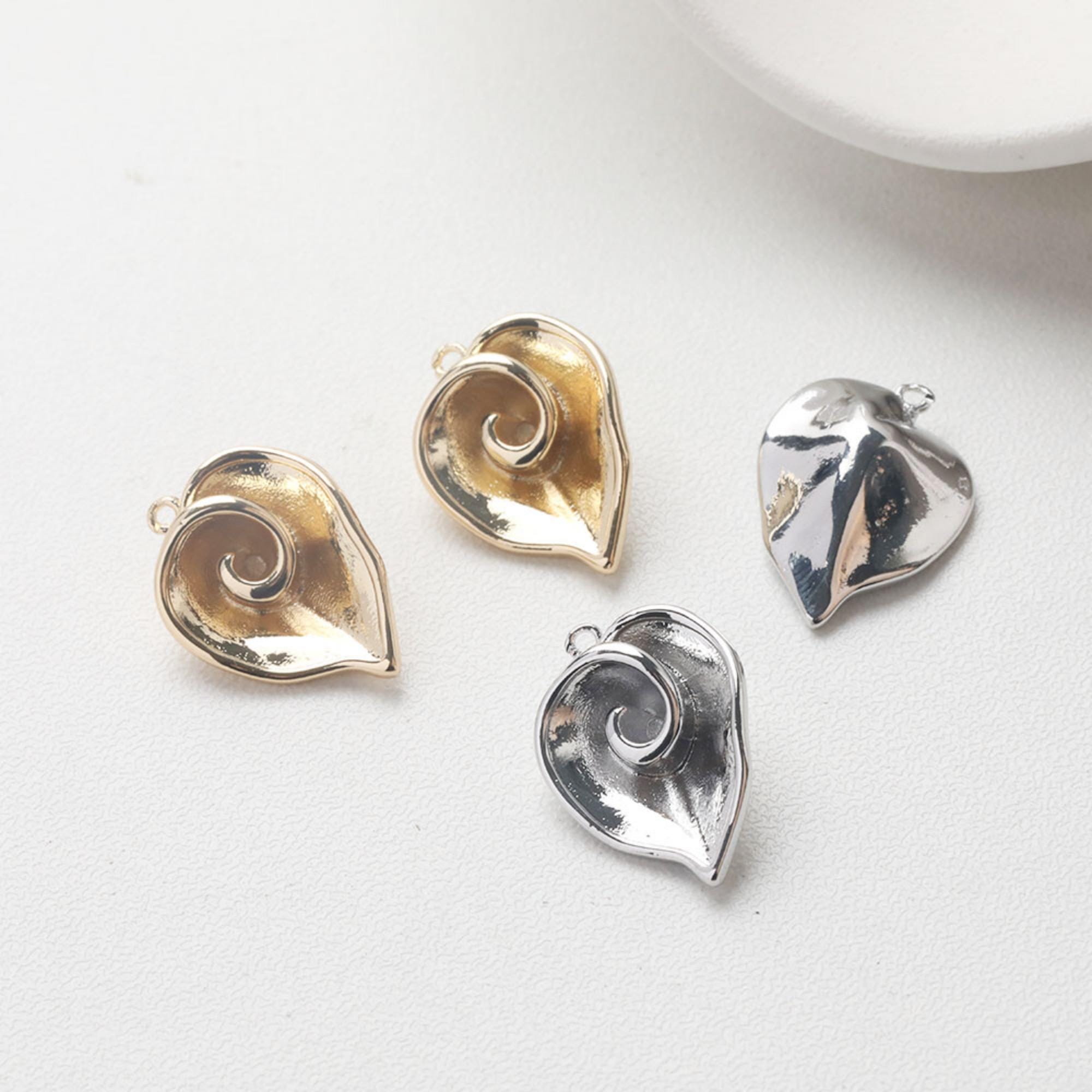 قرط ذهبي على شكل ورقة قلب، أقراط من الذهب عيار 14 قيراطًا/فضة خالية من النيكل، دبابيس أذن من الفضة S925، قرط أذن على شكل قلب مع حلقة GZ715