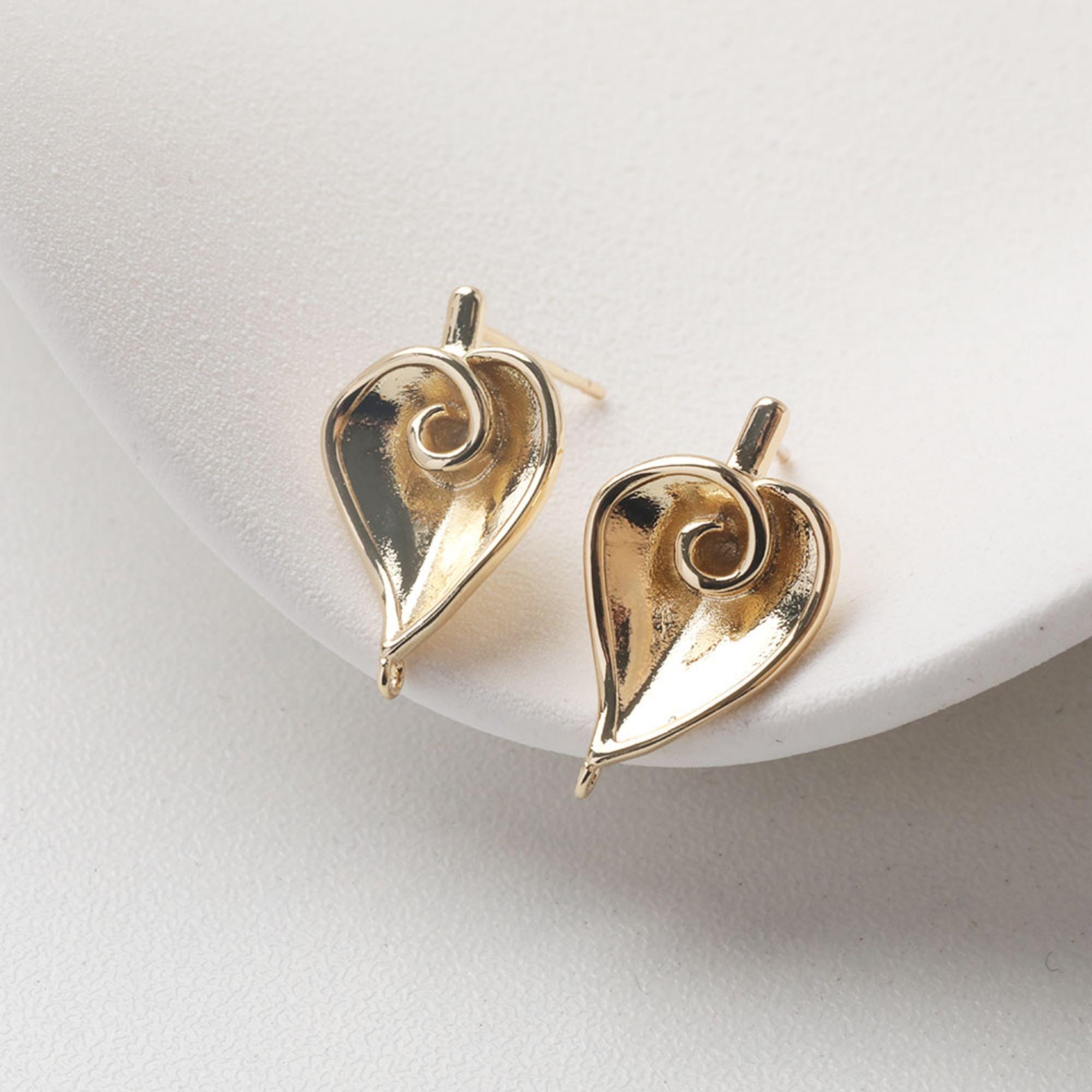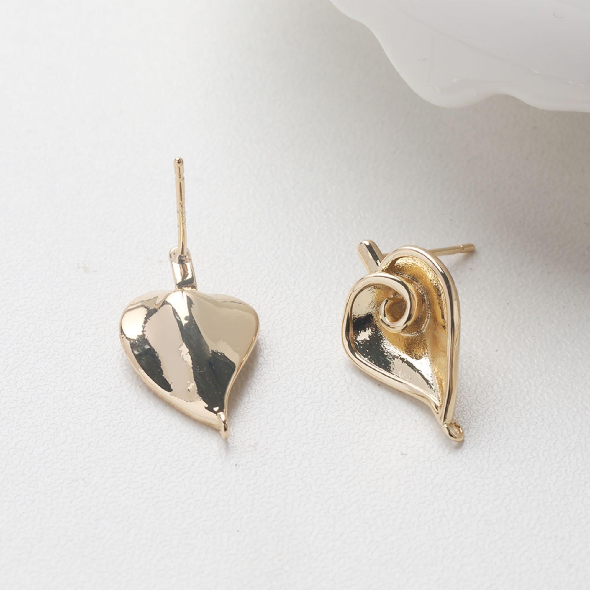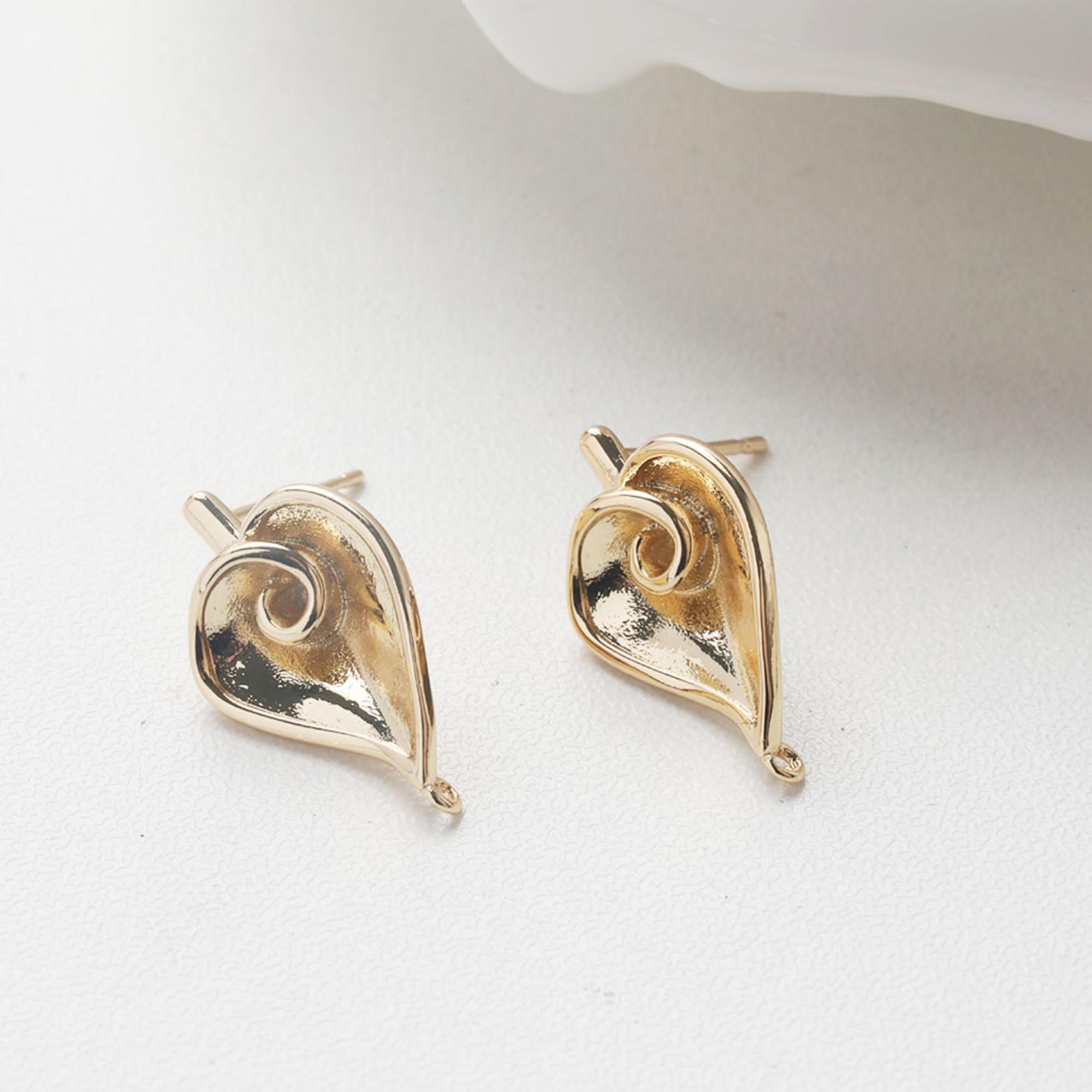 بيتعمود الأذن/الأزرارقرط ذهبي على شكل ورقة قلب، أقراط من الذهب عيار 14 قيراطًا/فضة خالية من النيكل، دبابيس أذن من الفضة S925، قرط أذن على شكل قلب مع حلقة GZ715