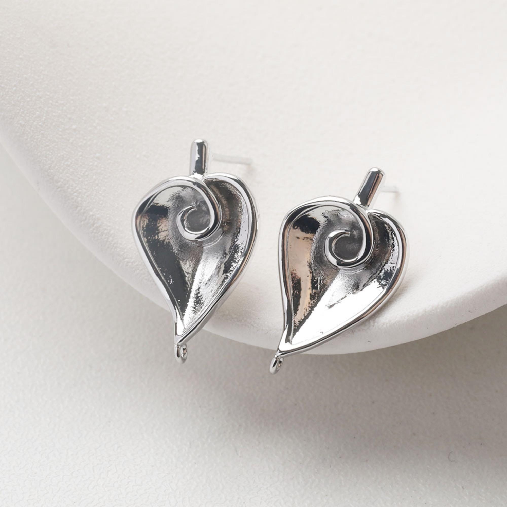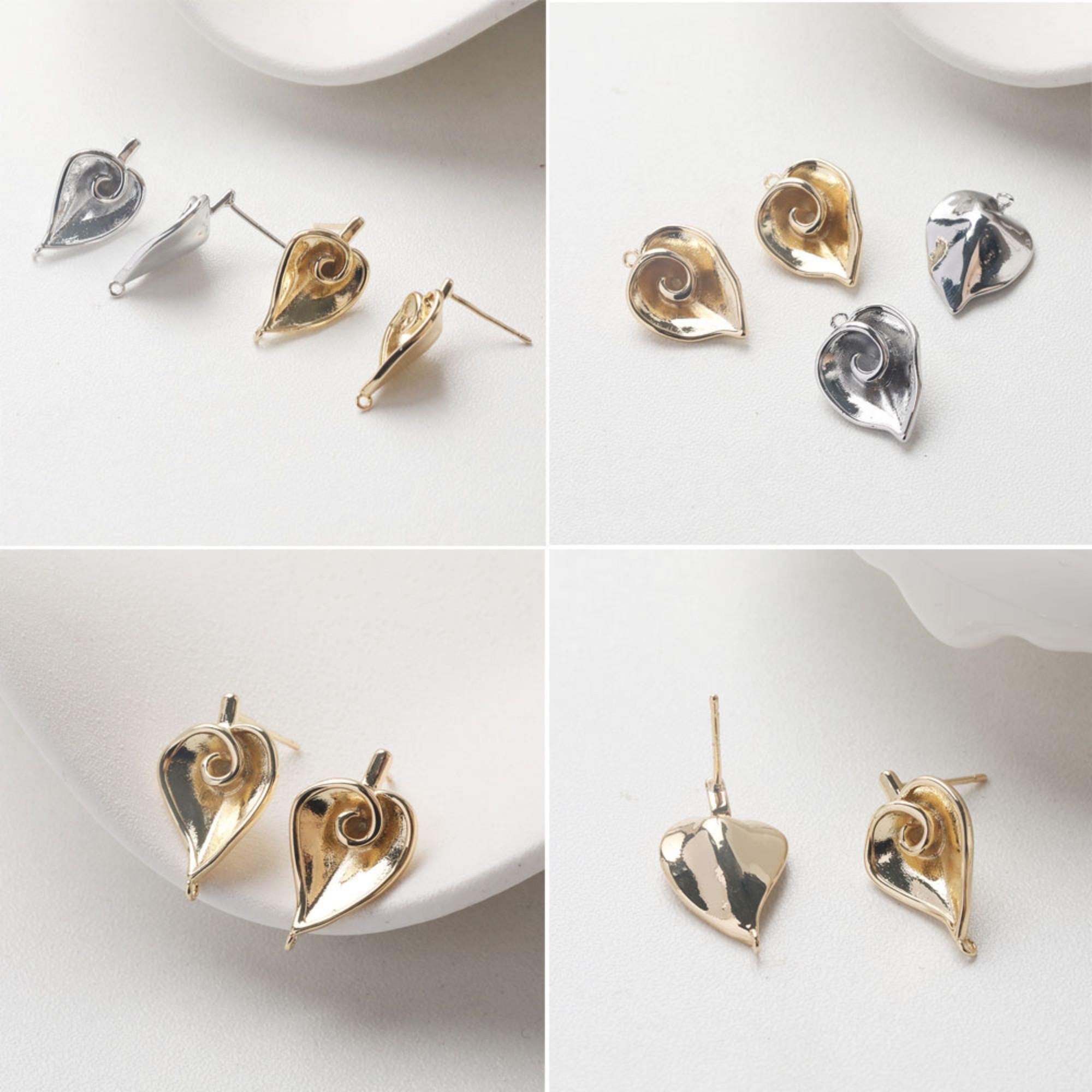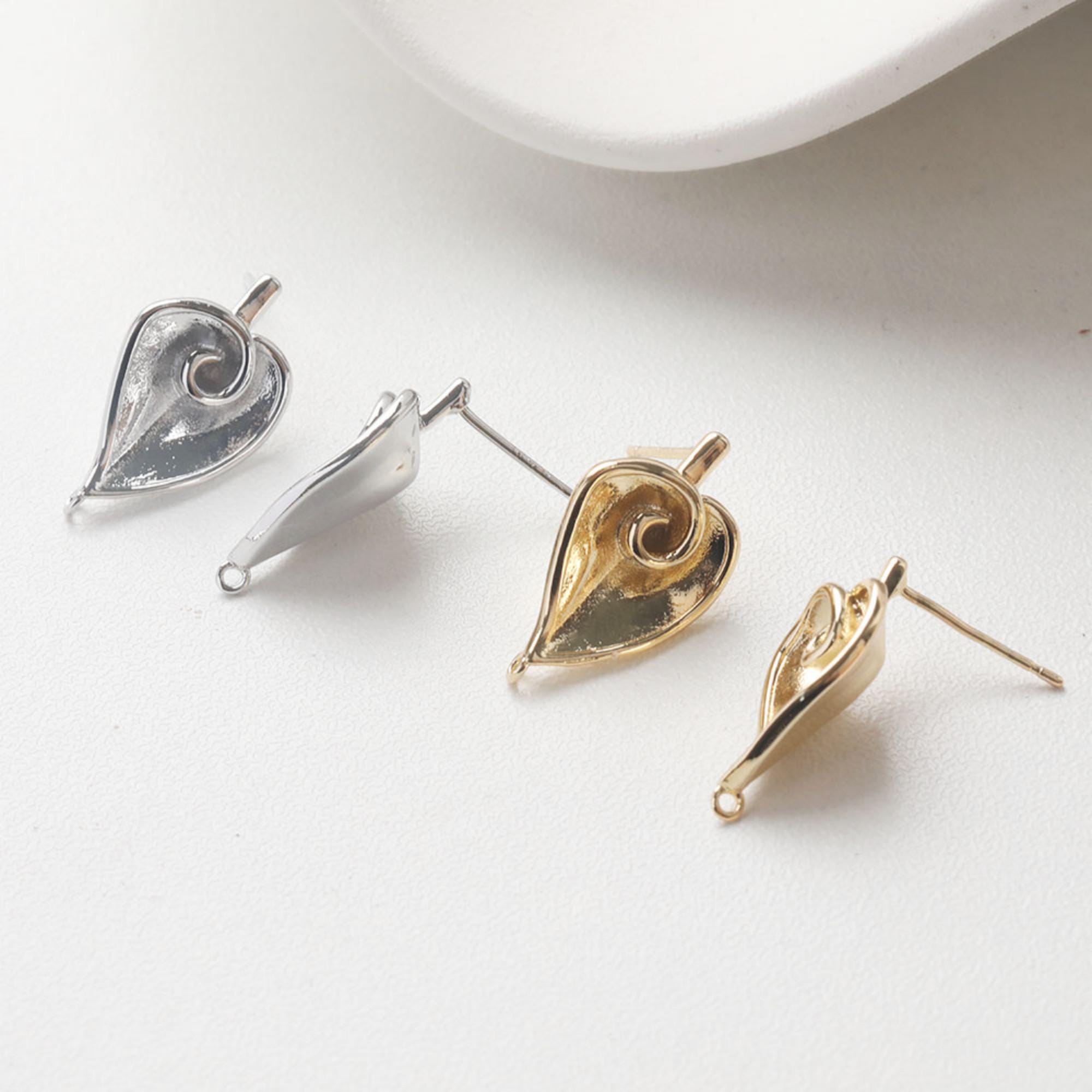 بيتعمود الأذن/الأزرارقرط ذهبي على شكل ورقة قلب، أقراط من الذهب عيار 14 قيراطًا/فضة خالية من النيكل، دبابيس أذن من الفضة S925، قرط أذن على شكل قلب مع حلقة GZ715