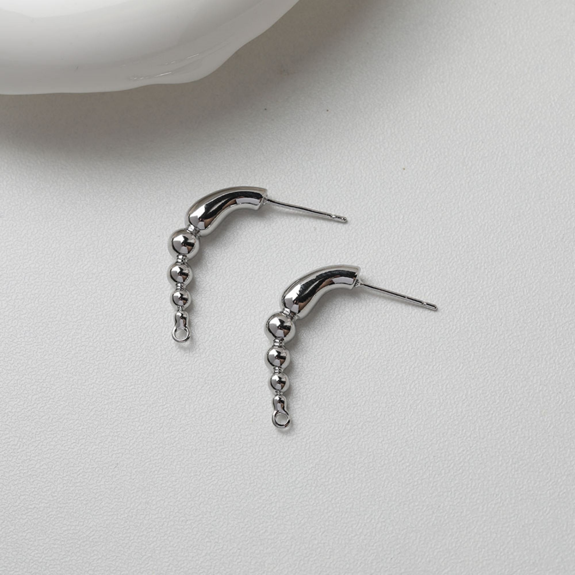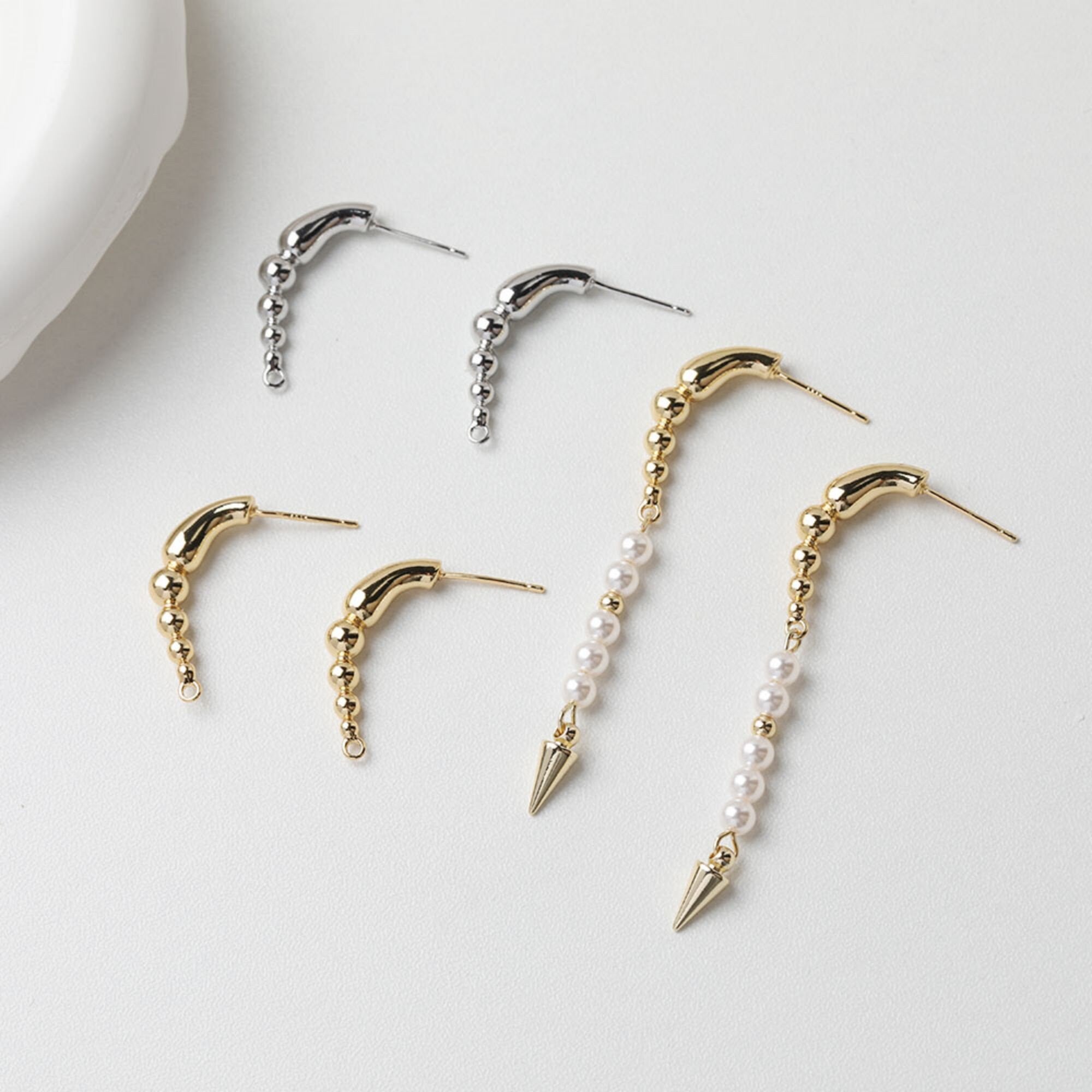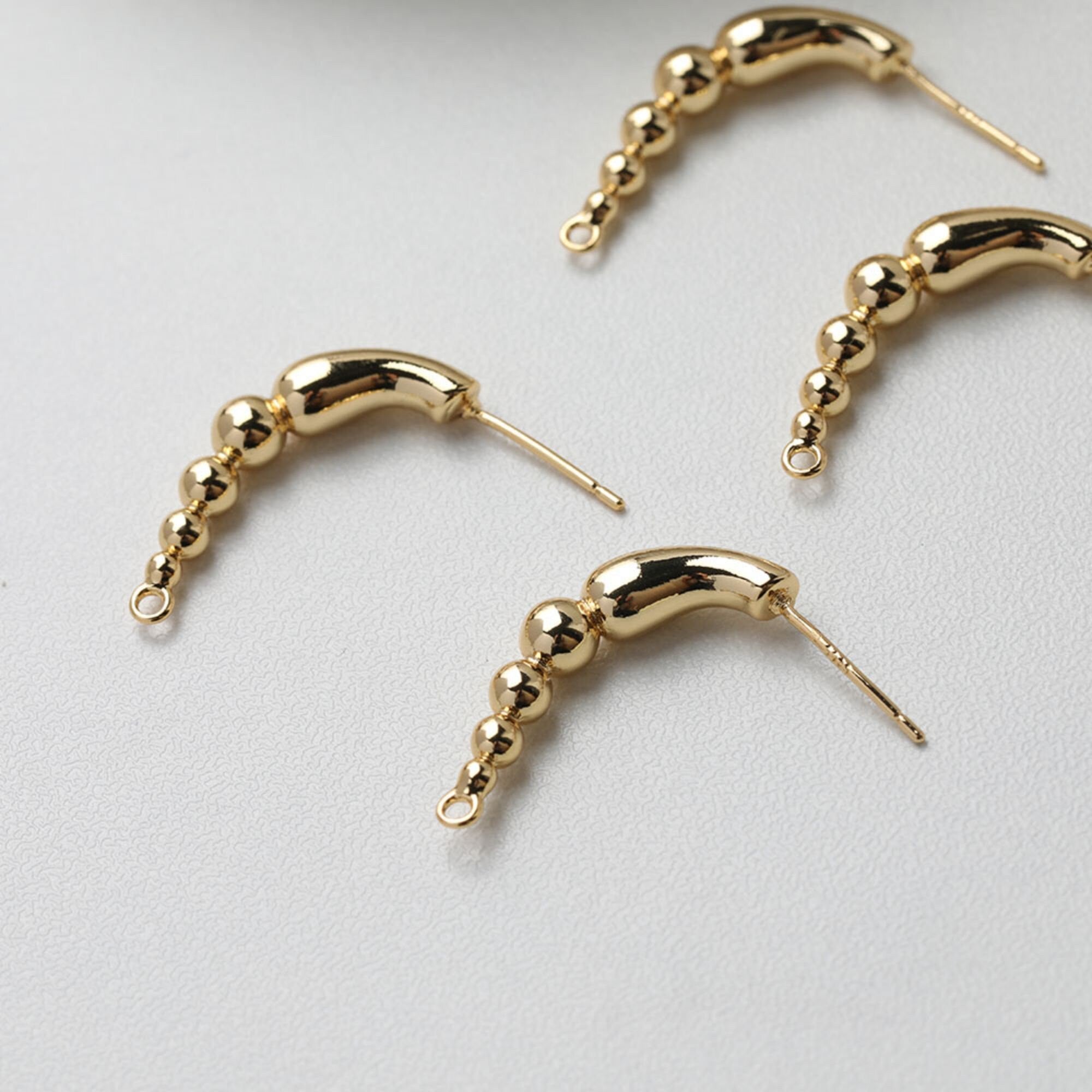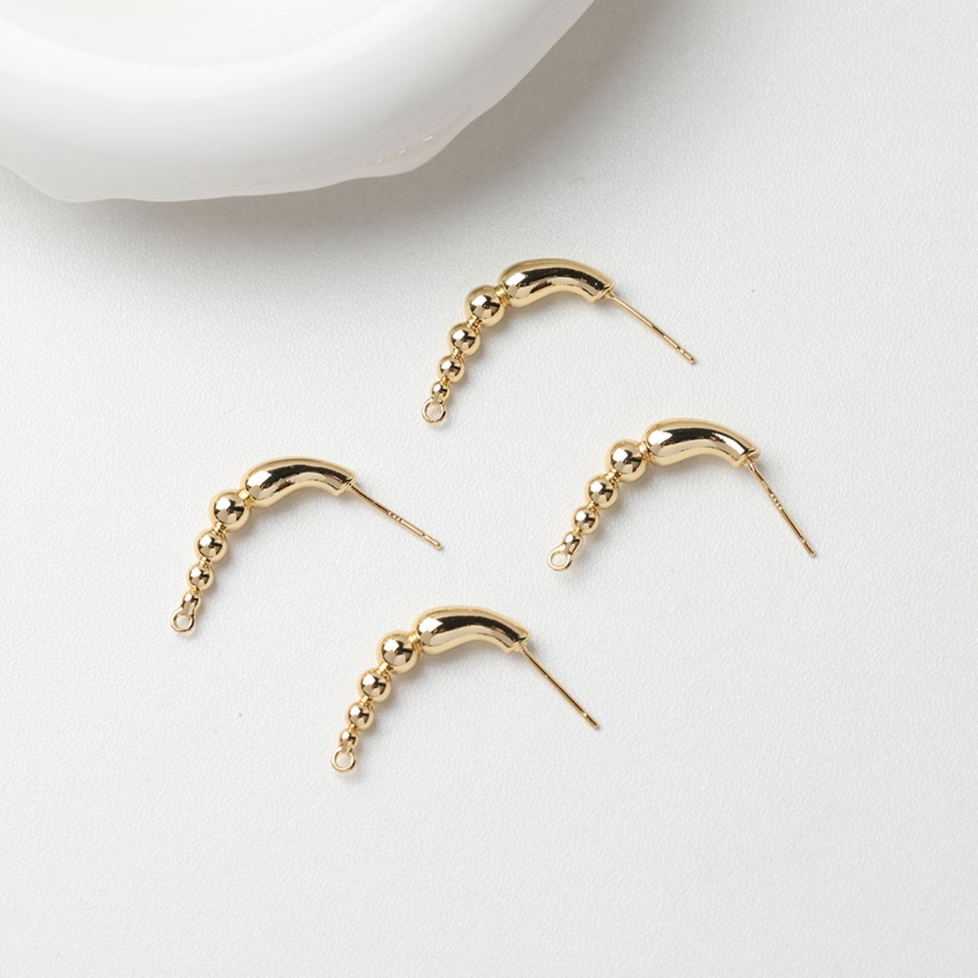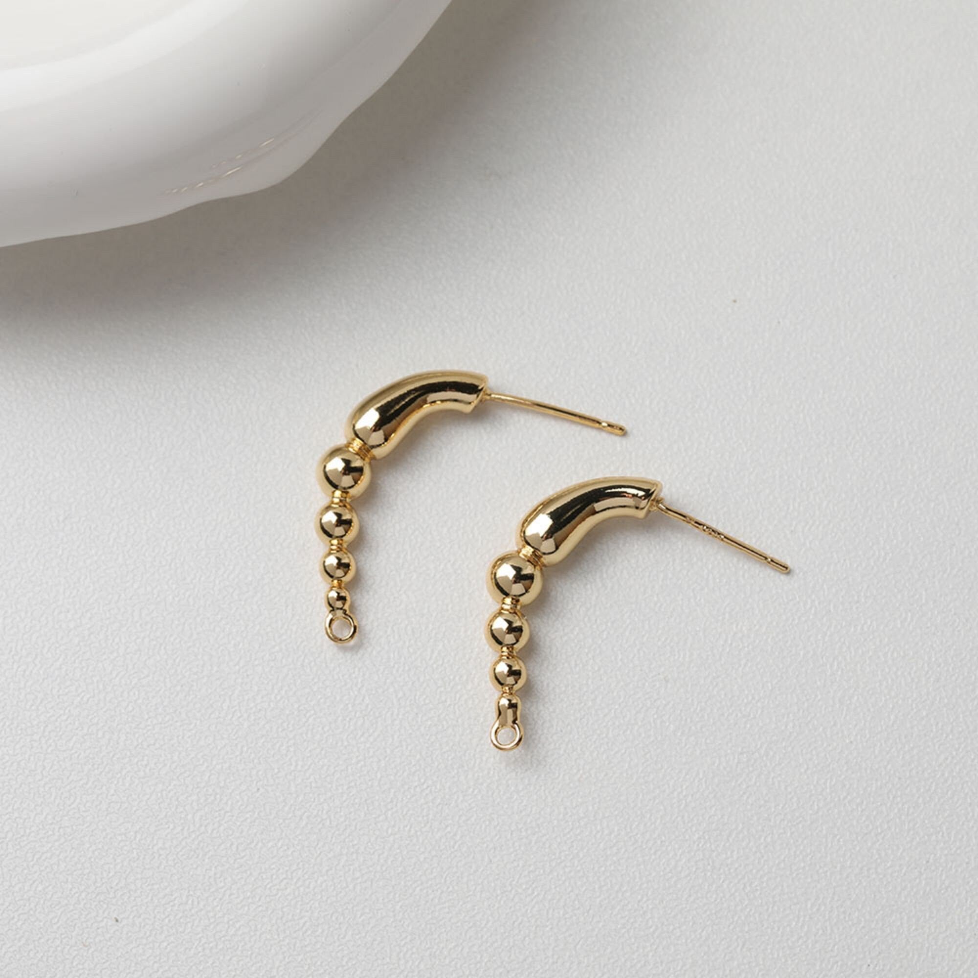 قرط من سلسلة خرز دائرية ذهبية مع عمود، قرط مرصع خالٍ من النيكل، دبوس أذن من الفضة S925، نتائج قرط مضادة للحساسية GT050