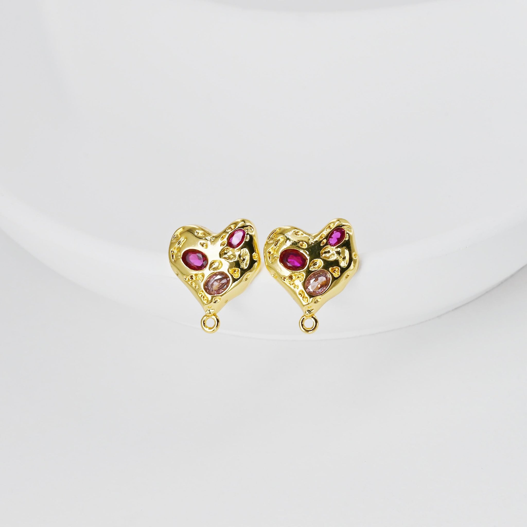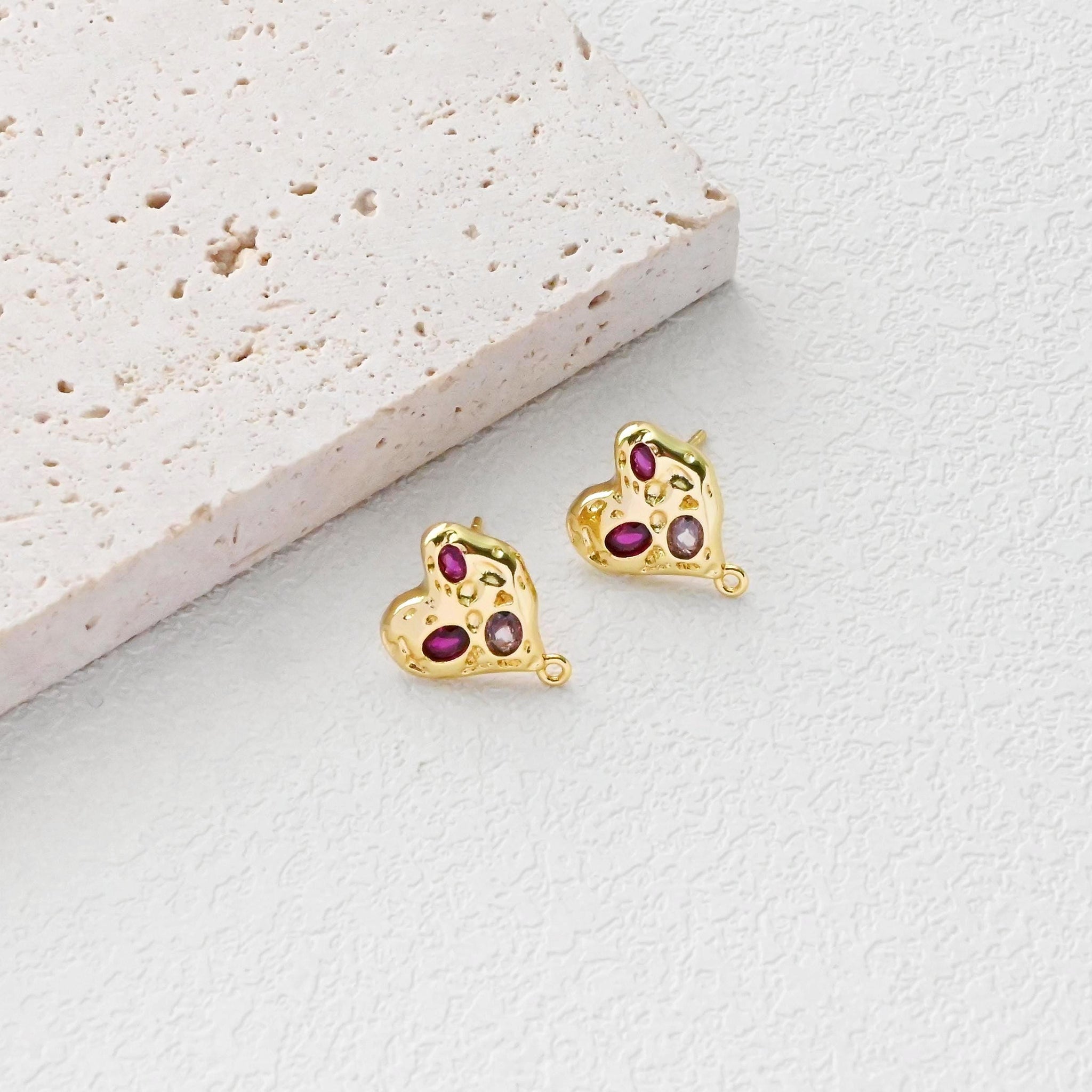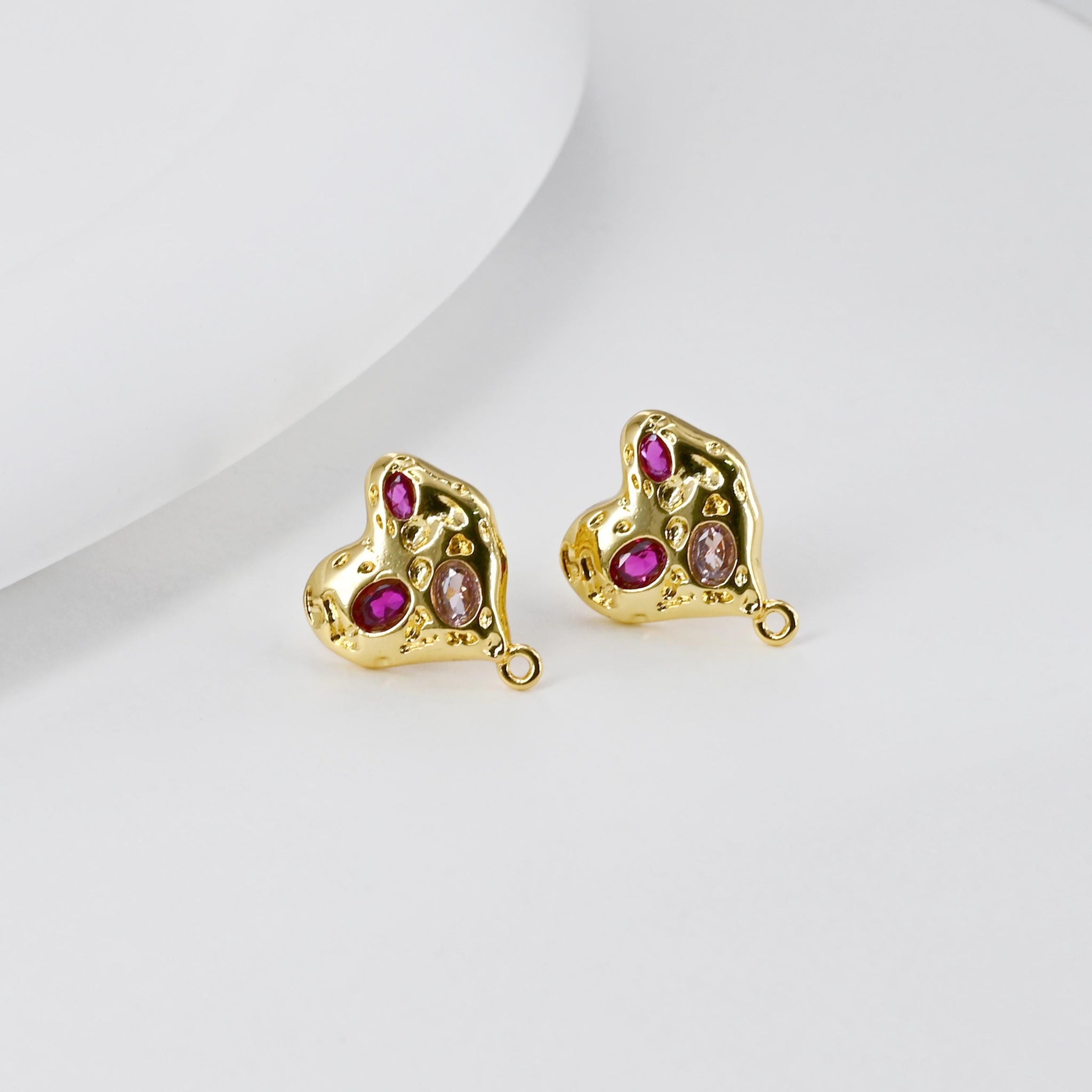 بيتعمود الأذن/الأزرارقرط على شكل قلب مطروق مع حلقة، مطلي بالذهب عيار 18 قيراطًا، مرصع بأحجار الزركونيا المكعبة، دبابيس فضية S925 خالية من النيكل، أقراط على شكل قلب D0460