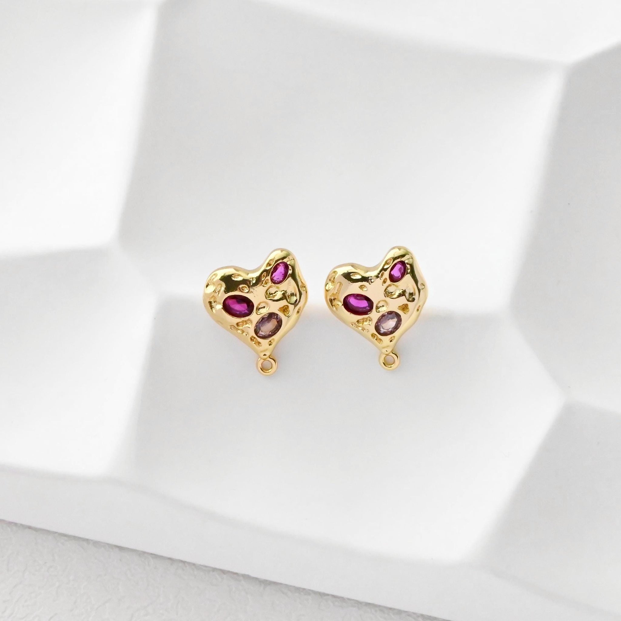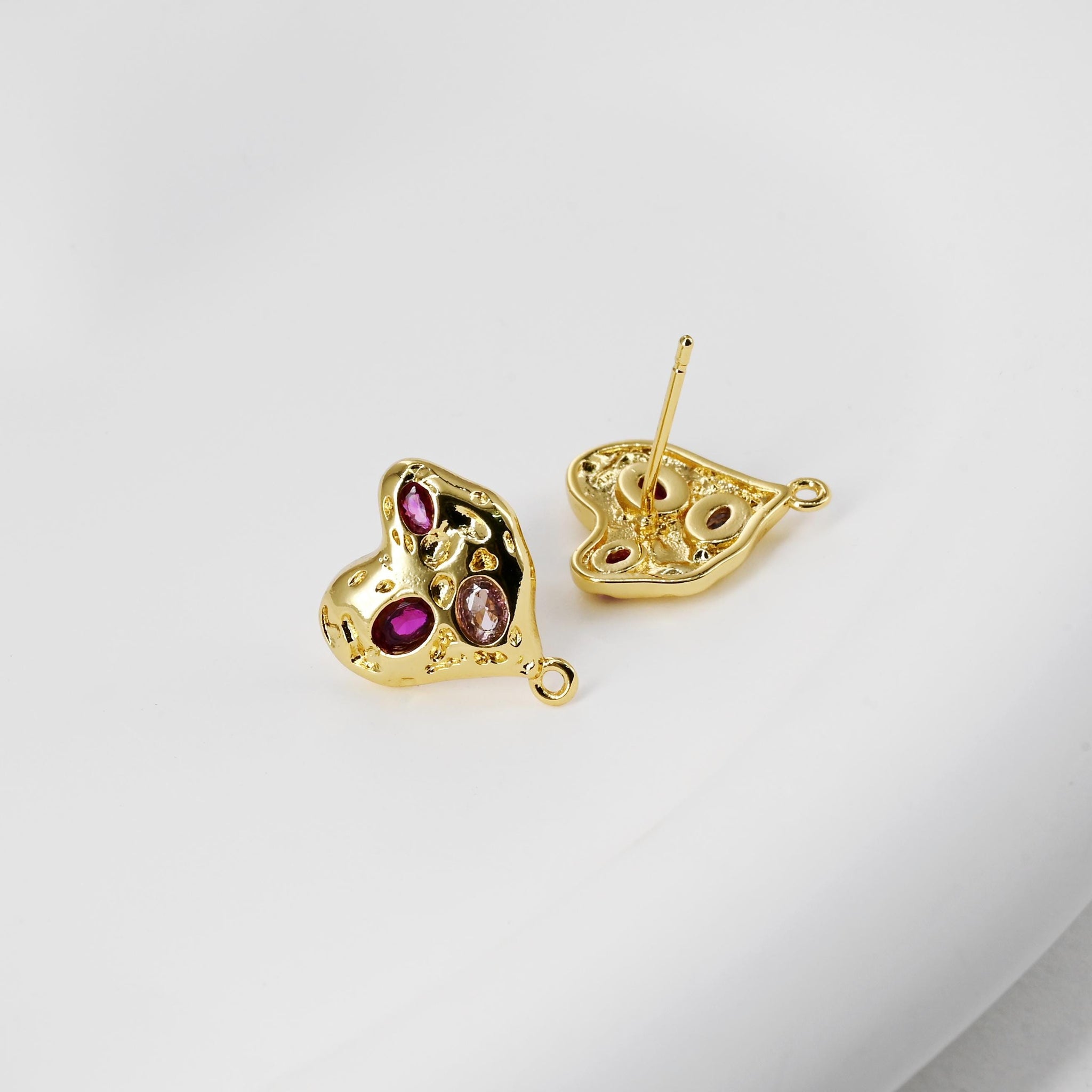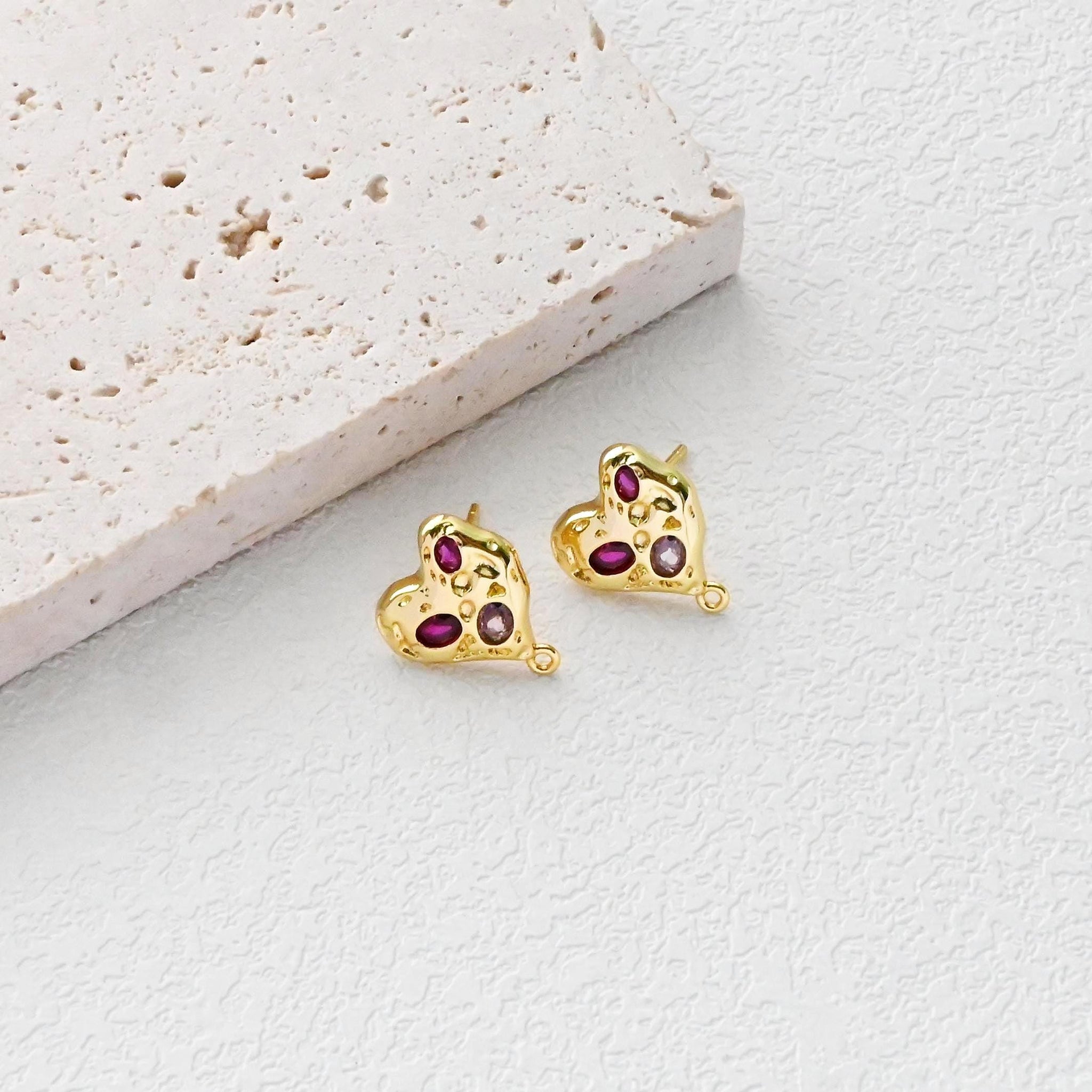 بيتعمود الأذن/الأزرارقرط على شكل قلب مطروق مع حلقة، مطلي بالذهب عيار 18 قيراطًا، مرصع بأحجار الزركونيا المكعبة، دبابيس فضية S925 خالية من النيكل، أقراط على شكل قلب D0460
