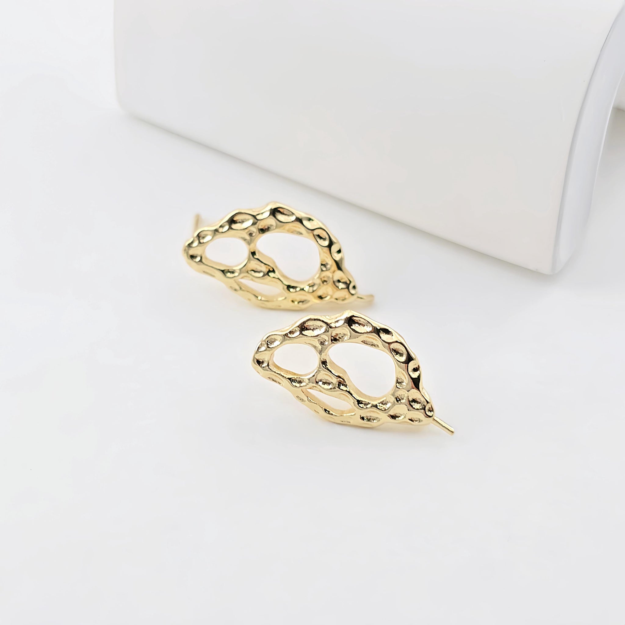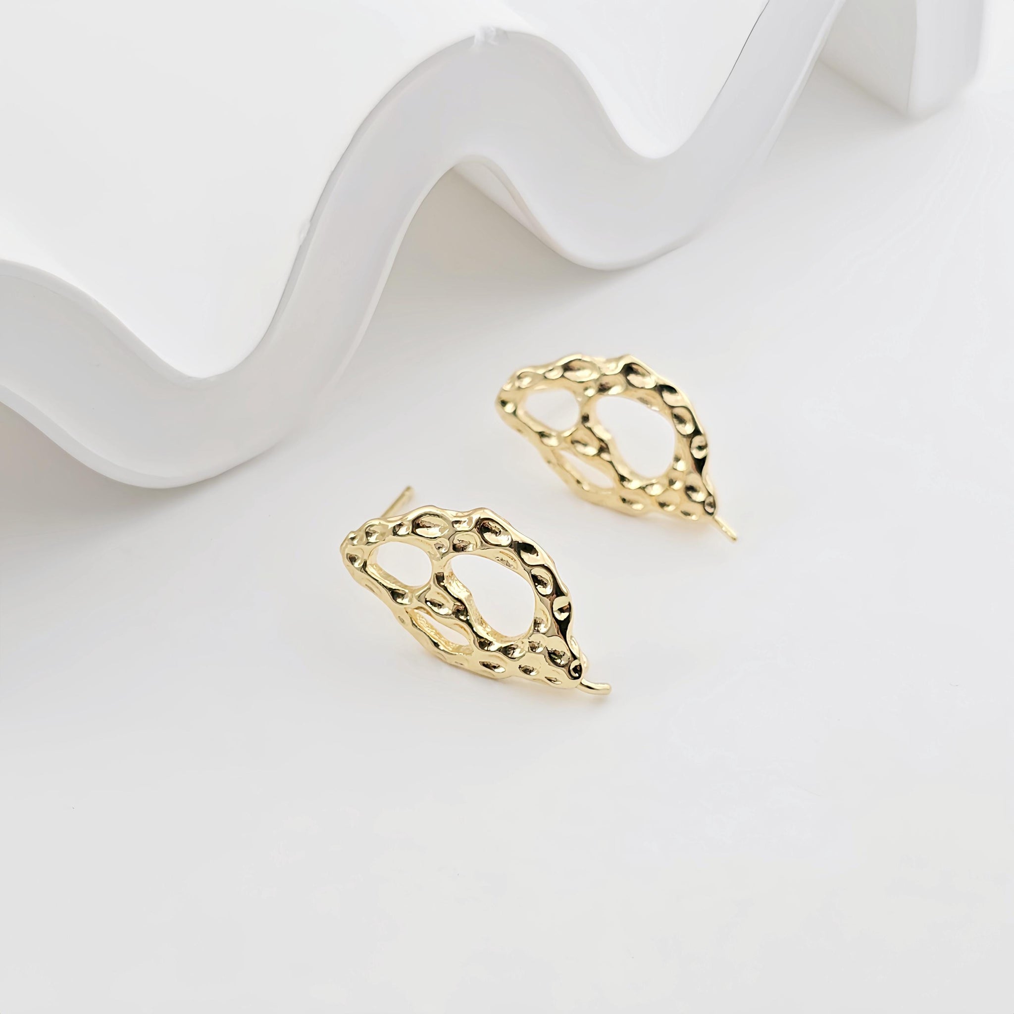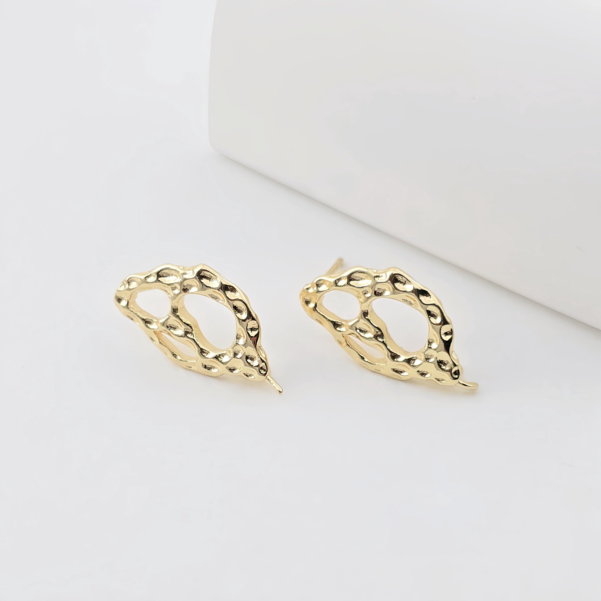 قرط أذن مطروق غير منتظم، ذهب عيار 14 قيراط، فضة S925، قرط أذن خالٍ من النيكل، مع حلقة ZX290