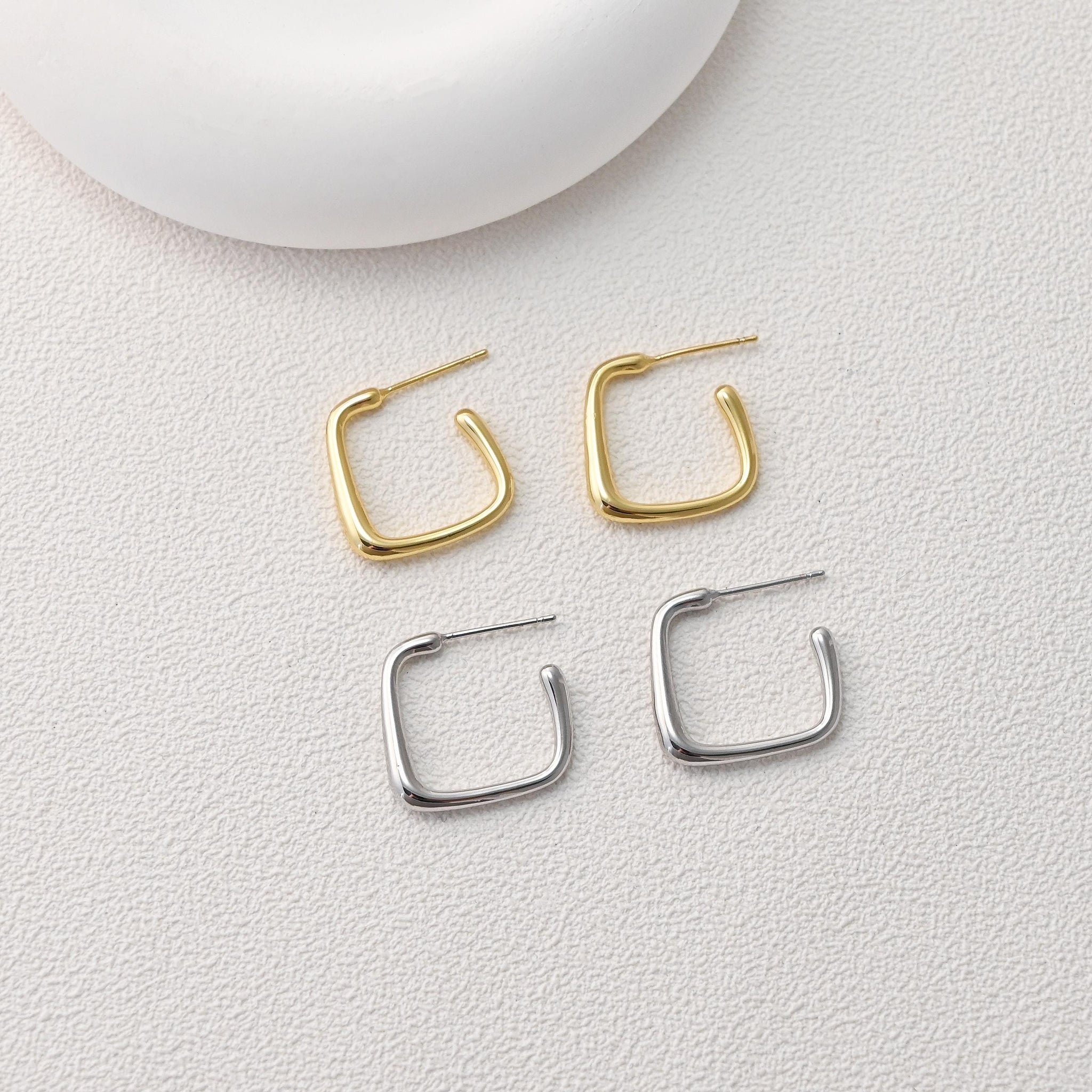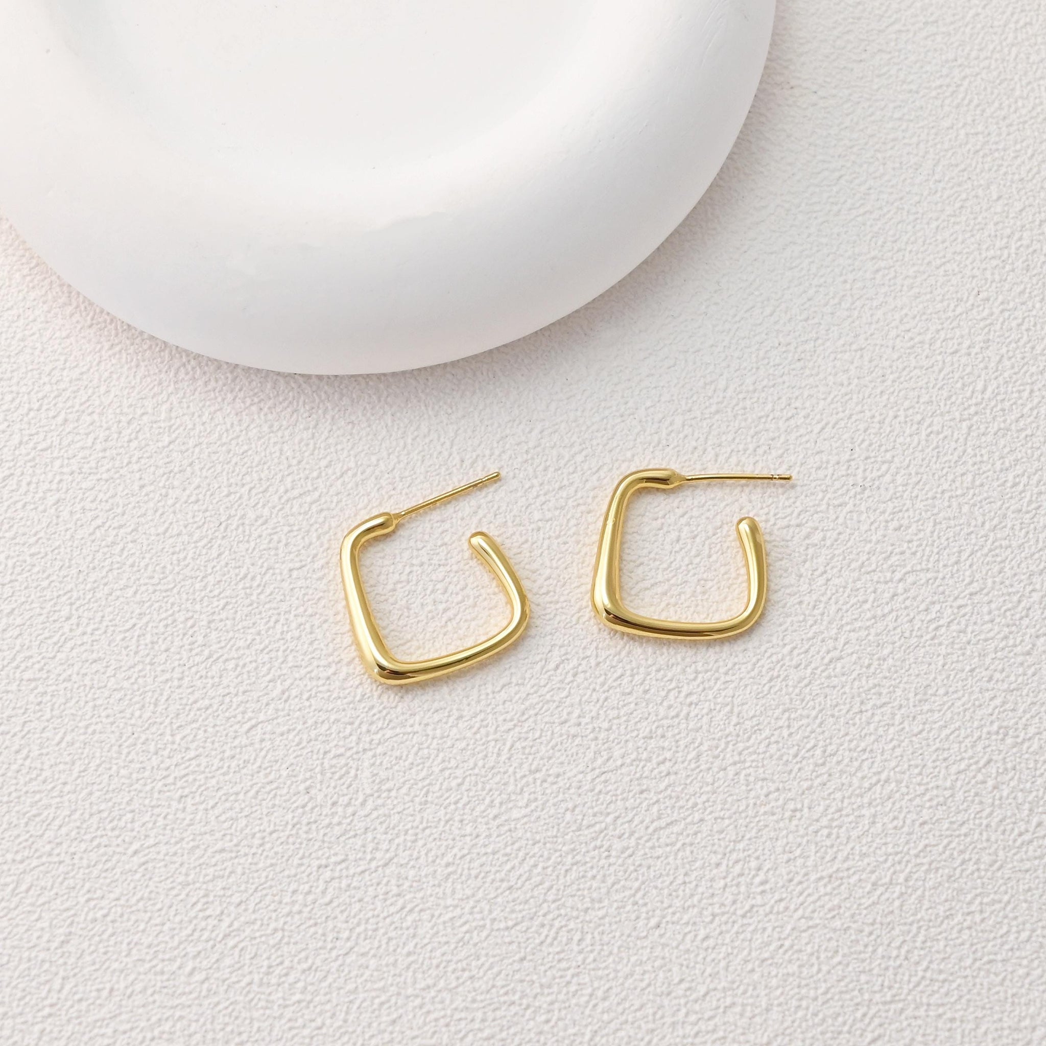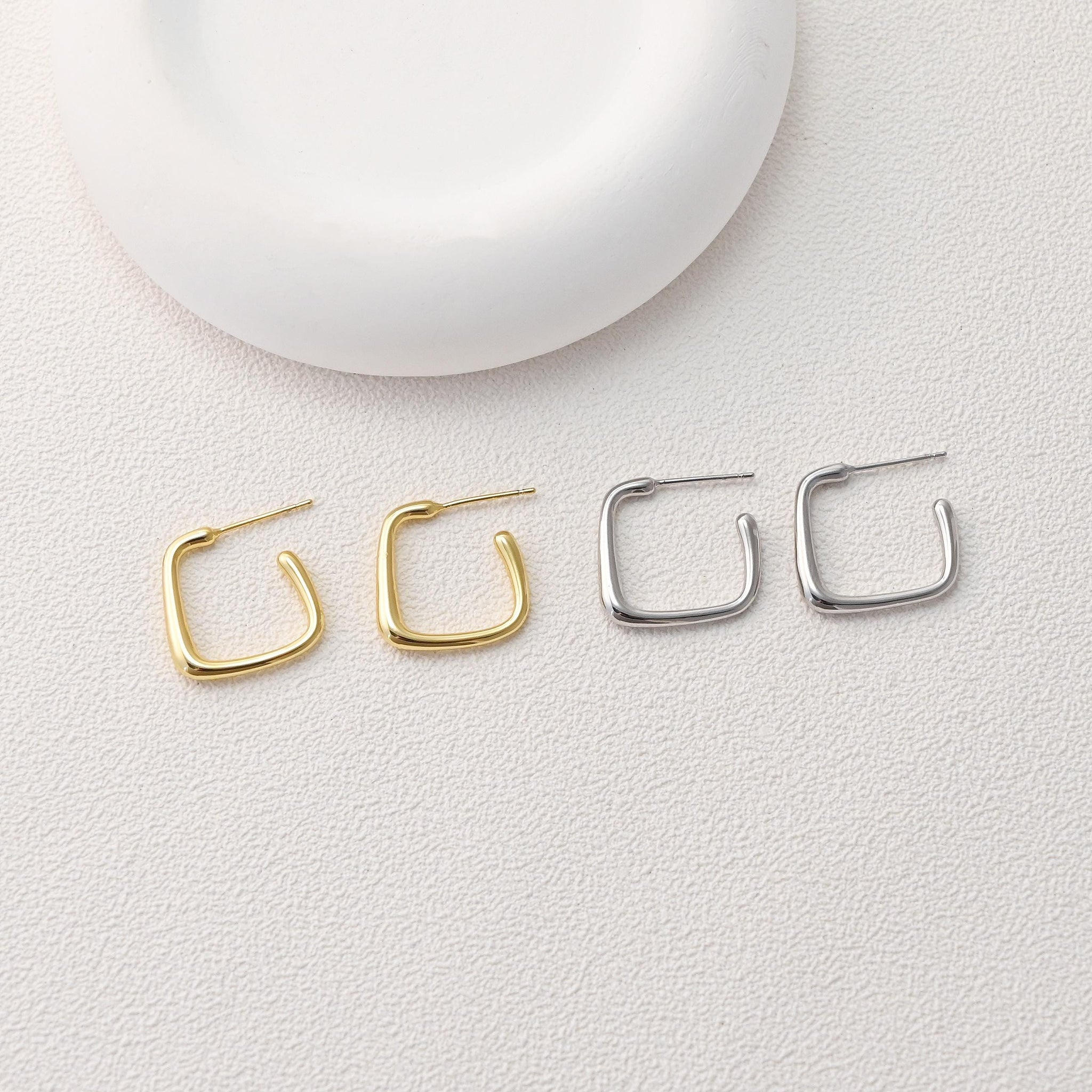 أقراط مربعة، مطلية بالذهب عيار 18 قيراطًا، خالية من النيكل، أقراط مربعة الشكل، نتائج أقراط مضادة للحساسية D0386