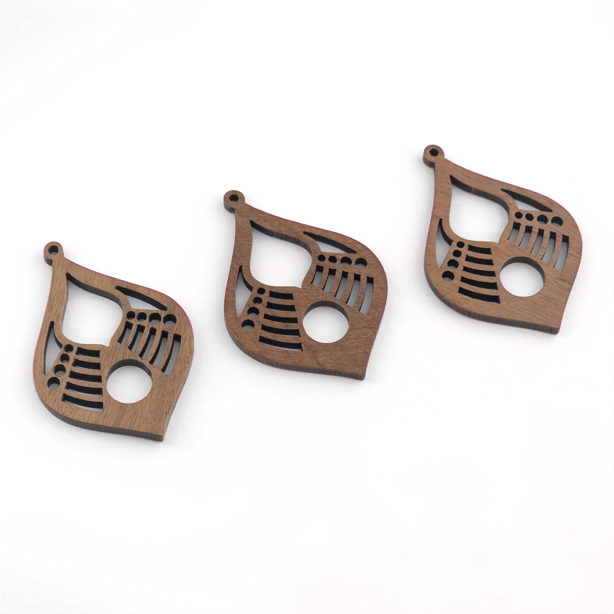 دلايات خشبية بأشكال هندسية على شكل ورقة شجر، قلادة خشبية، خشب الجوز المُعاد تدويره، أقراط خشبية...
