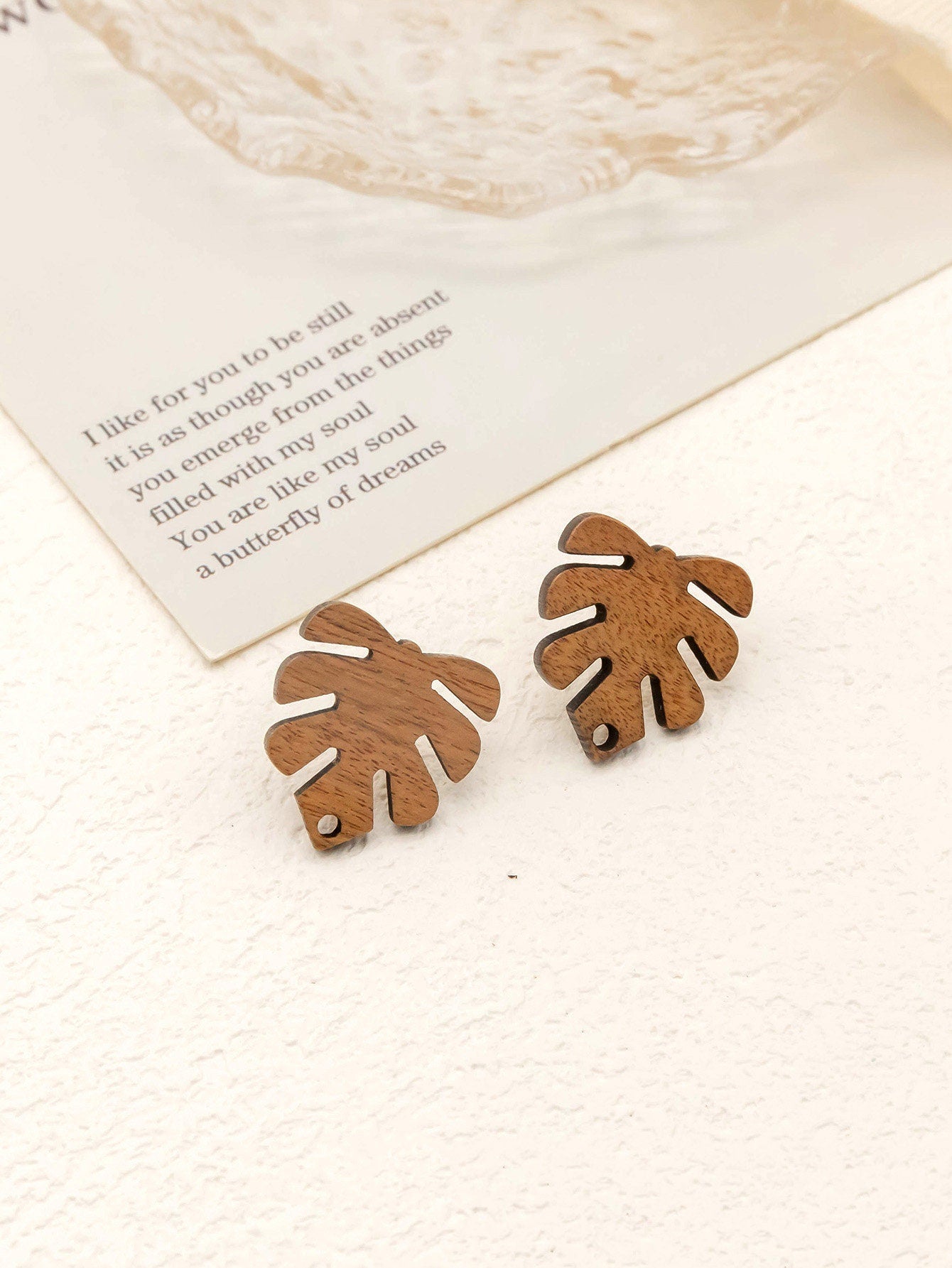 أقراط خشبية من 4 قطع، أقراط خشبية على شكل أوراق مونستيرا للنساء، خالية من النيكل، مجموعة أقراط بوهو JT931