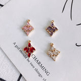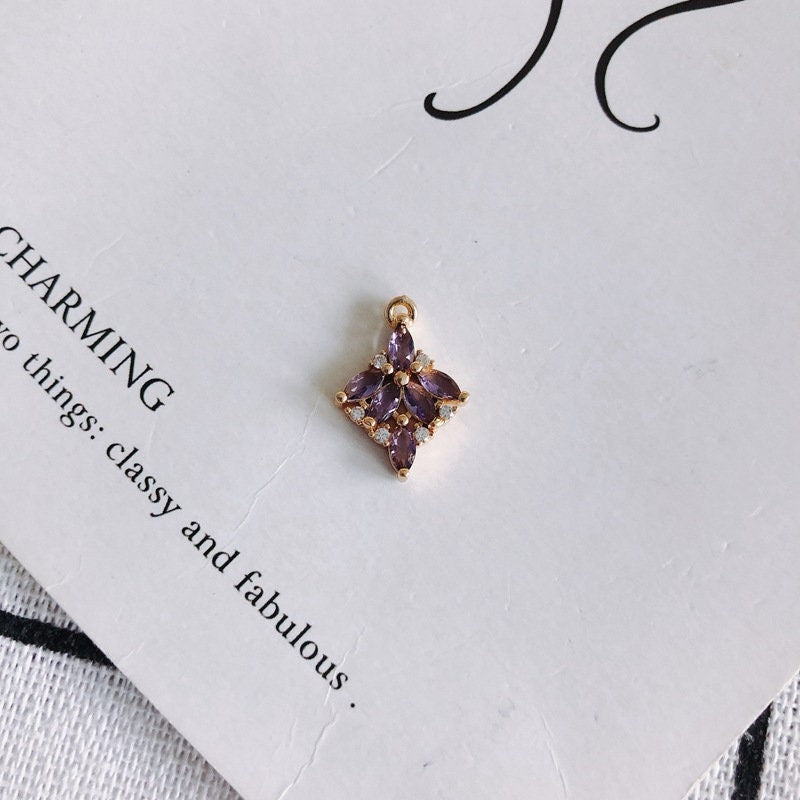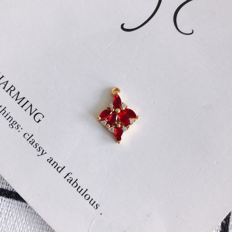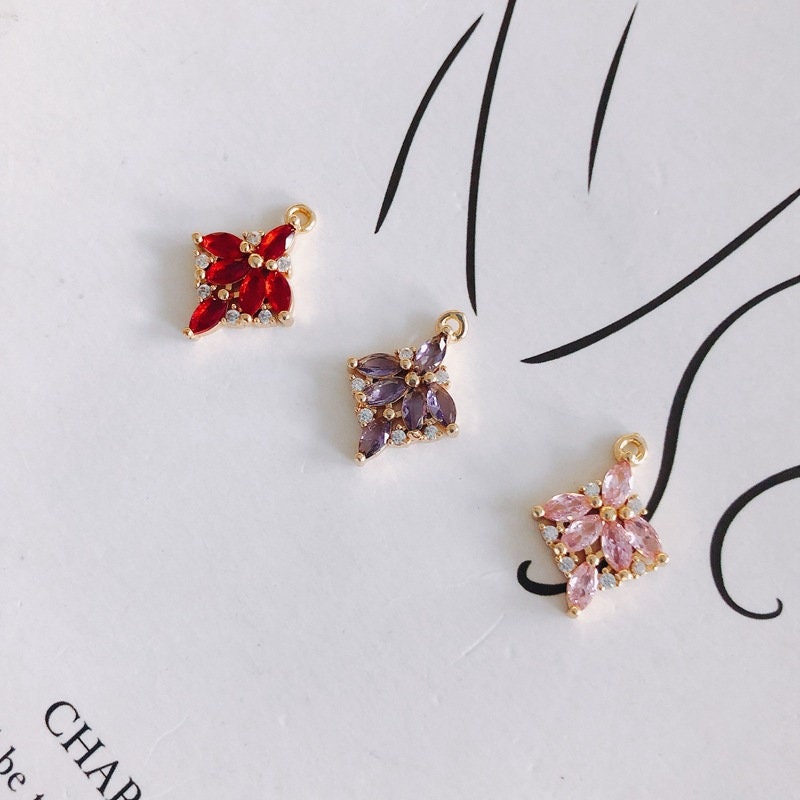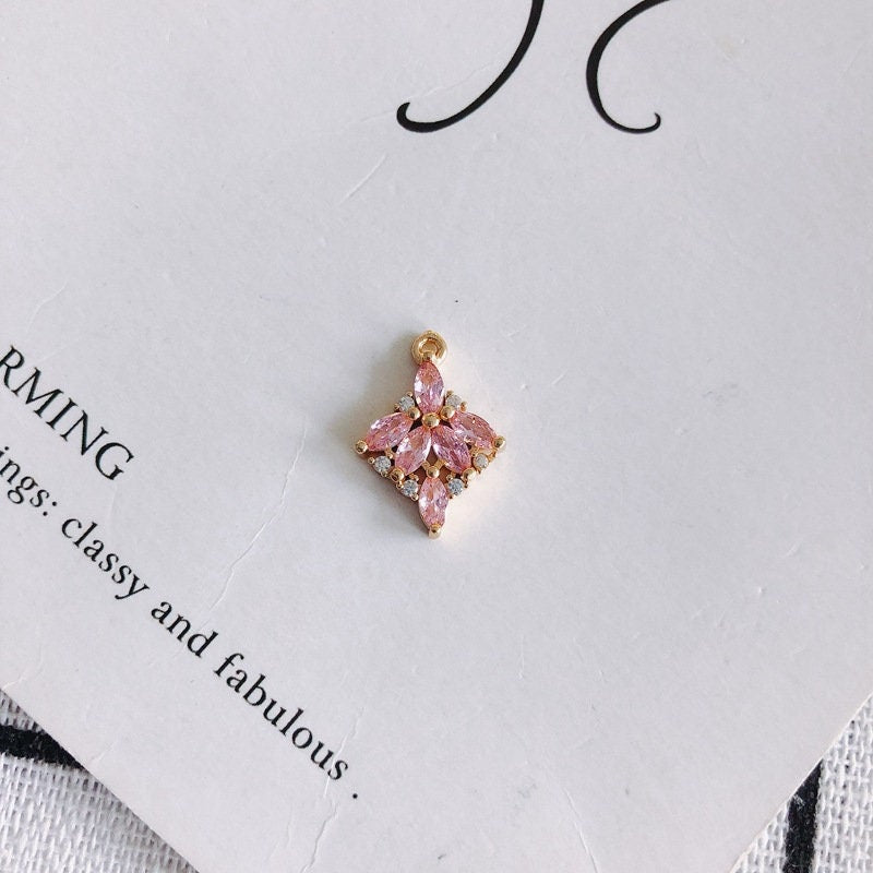 10 قطع من دلايات الزهور مع حلقات، قلادة بوهو، قلادة مكعبة مرصعة بالأحجار الكريمة، صناعة قلادات الأساور، نتائج مجوهرات مطلية بالذهب MY063