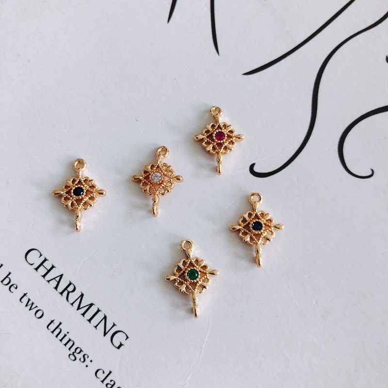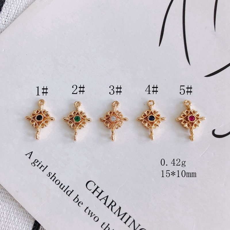 10 قطع من حُلي موصلات الزهور مع حلقات، موصلات بوهو، قلادة مرصعة بالأحجار المكعبة، صناعة قلادات السوار، نتائج مجوهرات مطلية بالذهب MY032