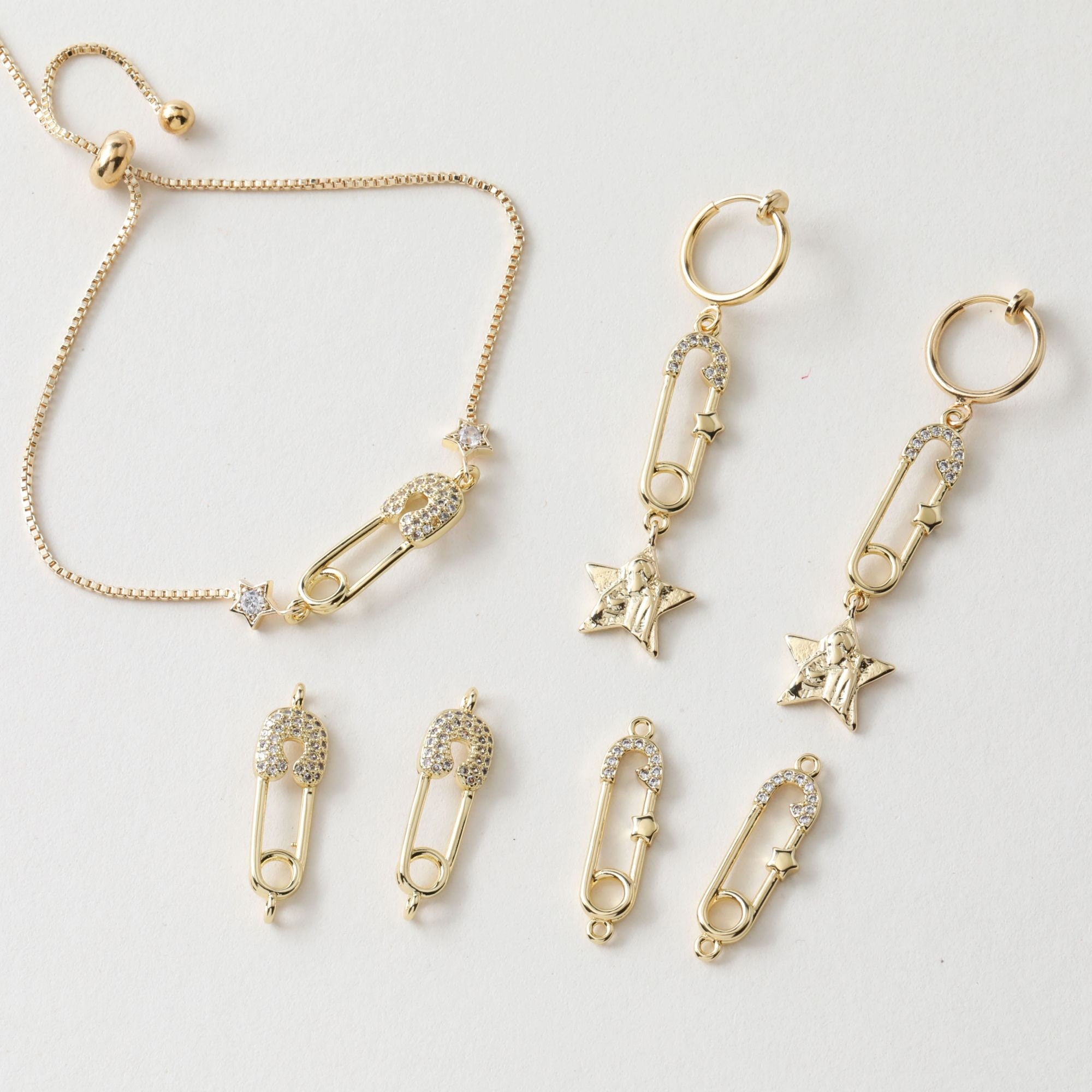 موصل دبوس أمان دانيتي، قلادة دبوس، أقراط مطلية بالذهب/الفضة عيار 14 قيراطًا، نتائج صنع المجوهرات JG010