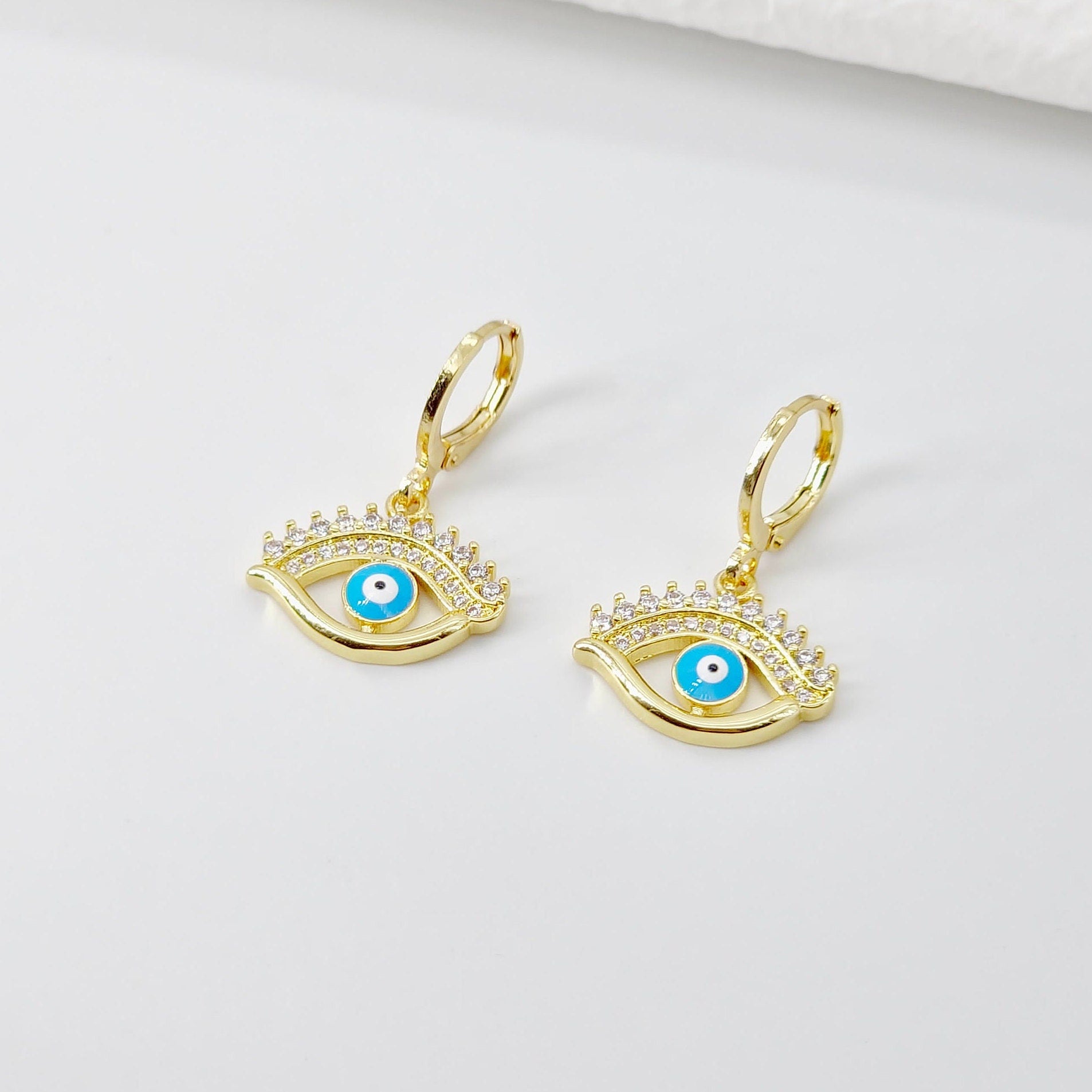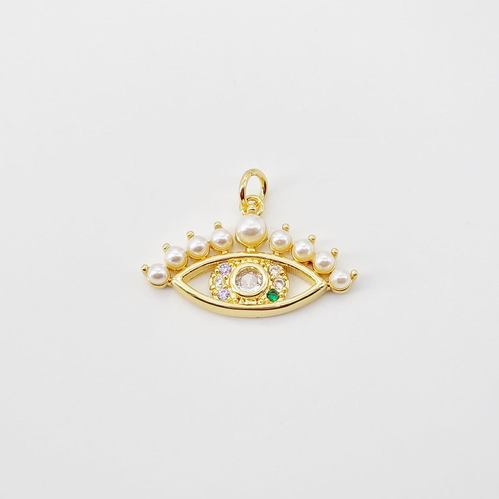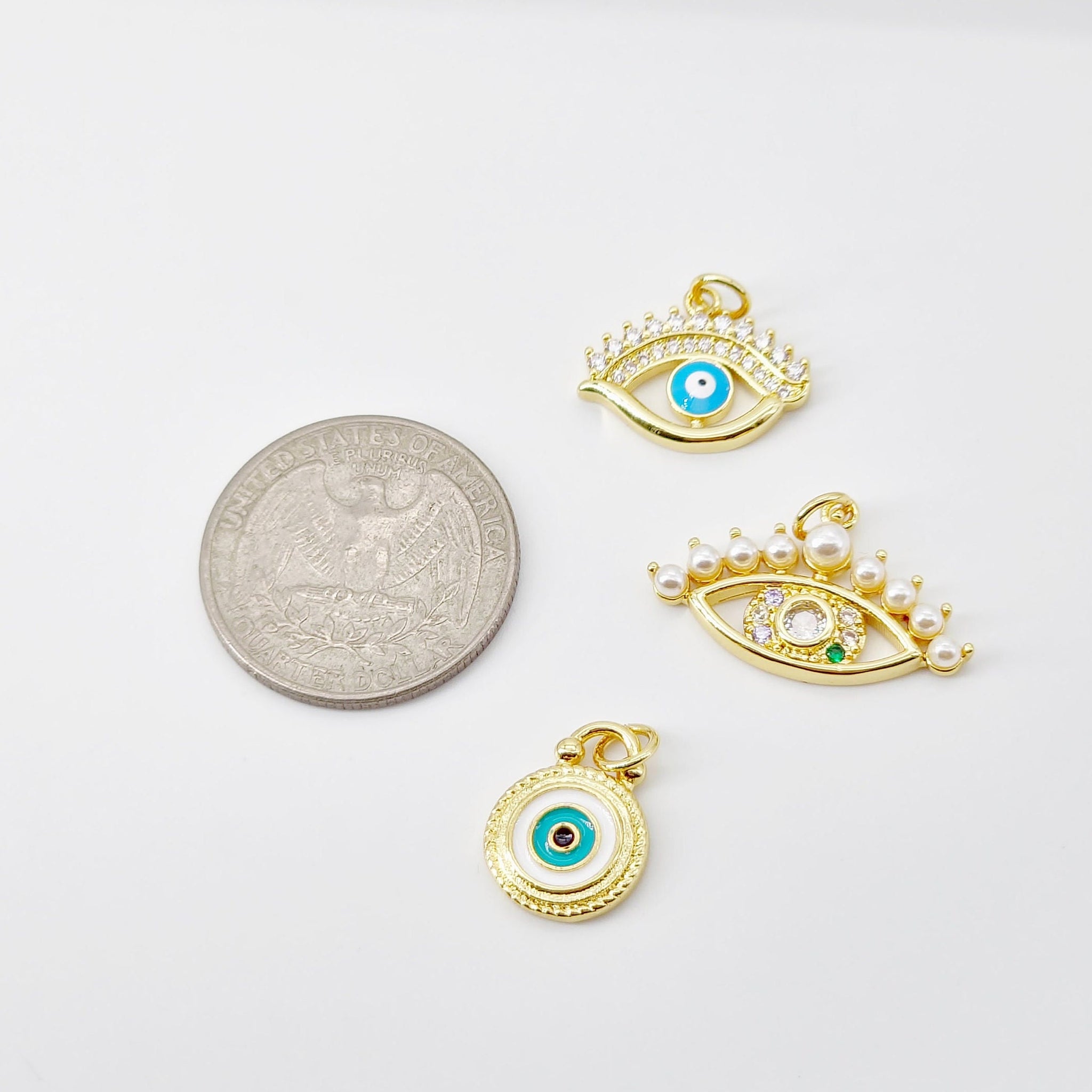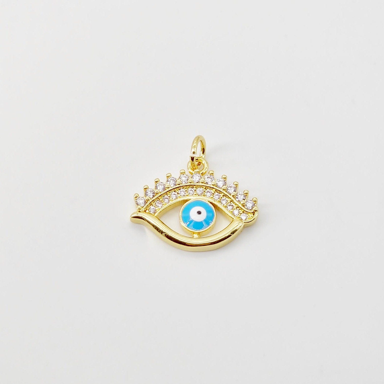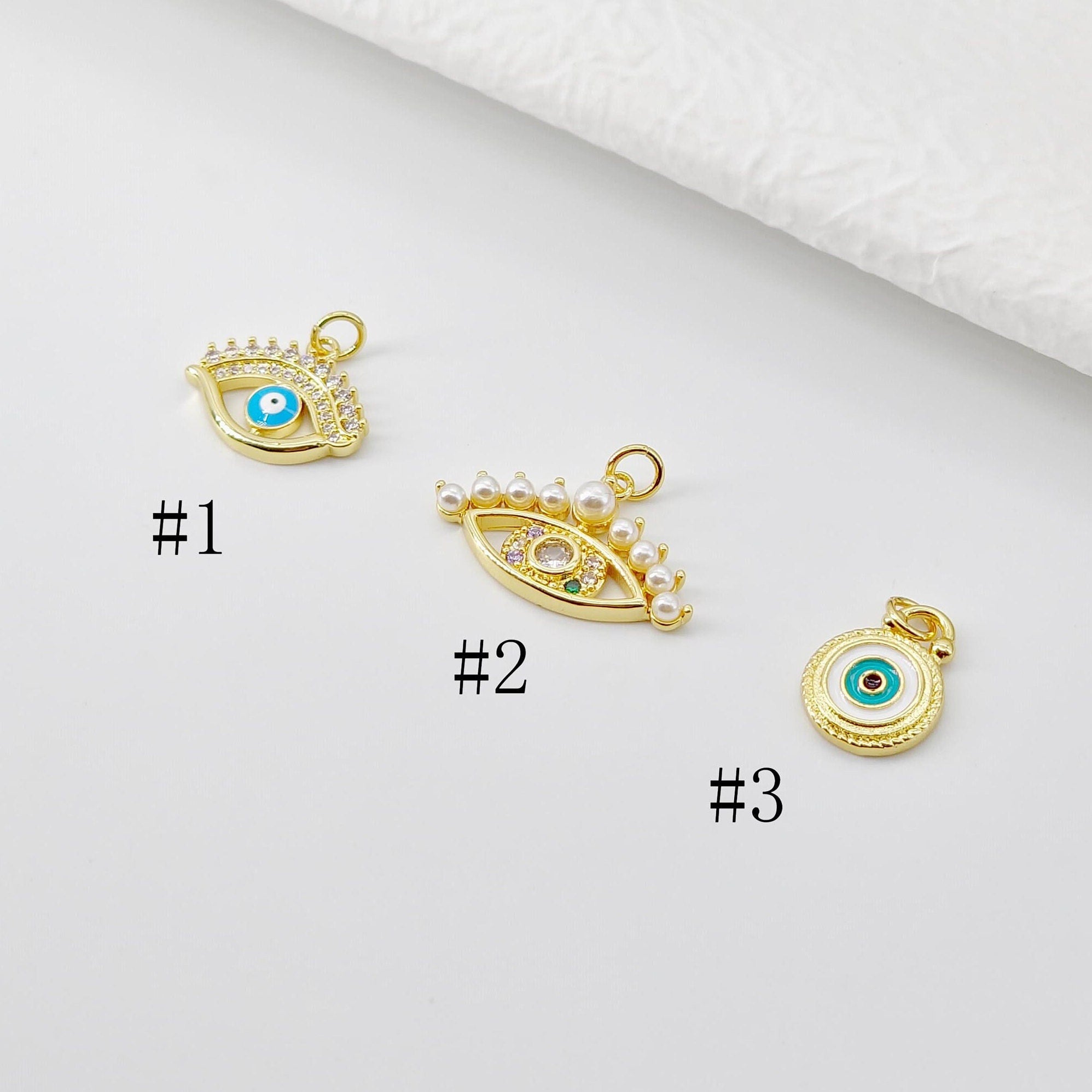 تميمة عين الشر، قلادة عين مطلية بالذهب عيار 18 قيراطًا من المينا، تميمة لصنع القلائد، قطع مجوهرات S20697