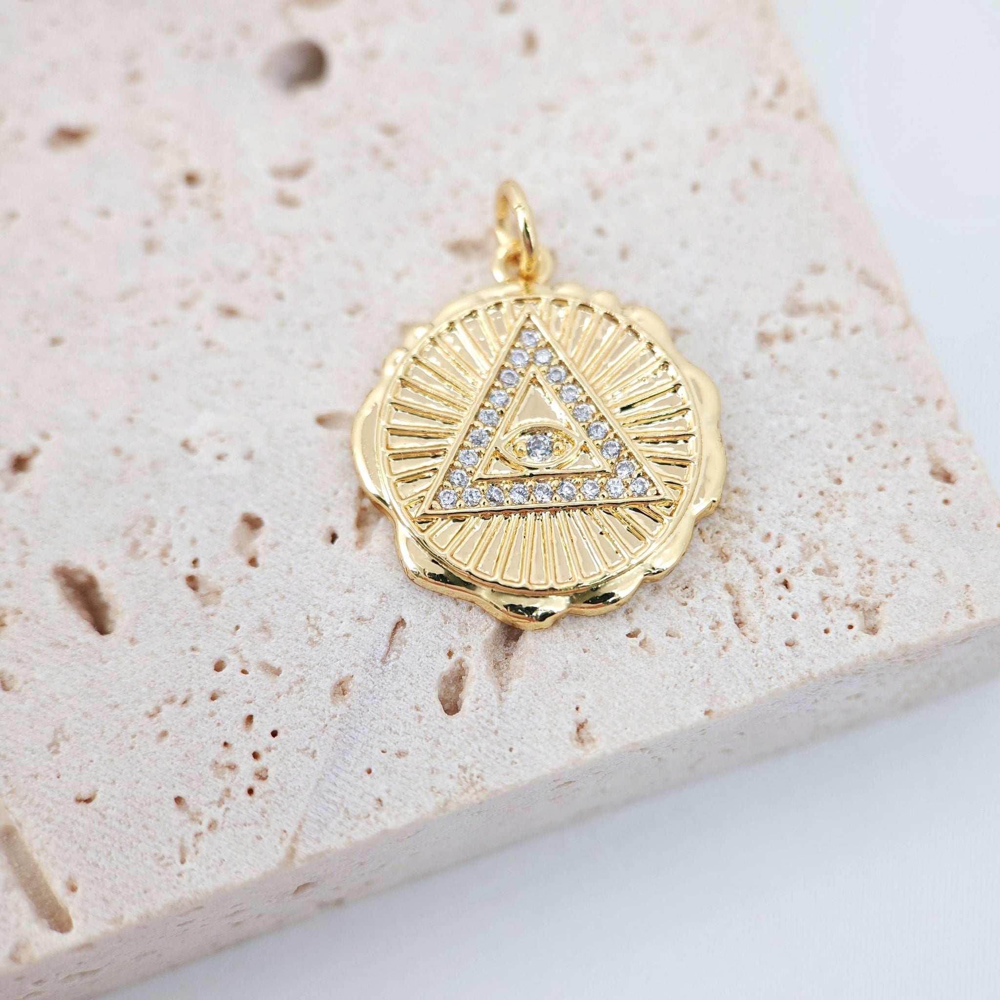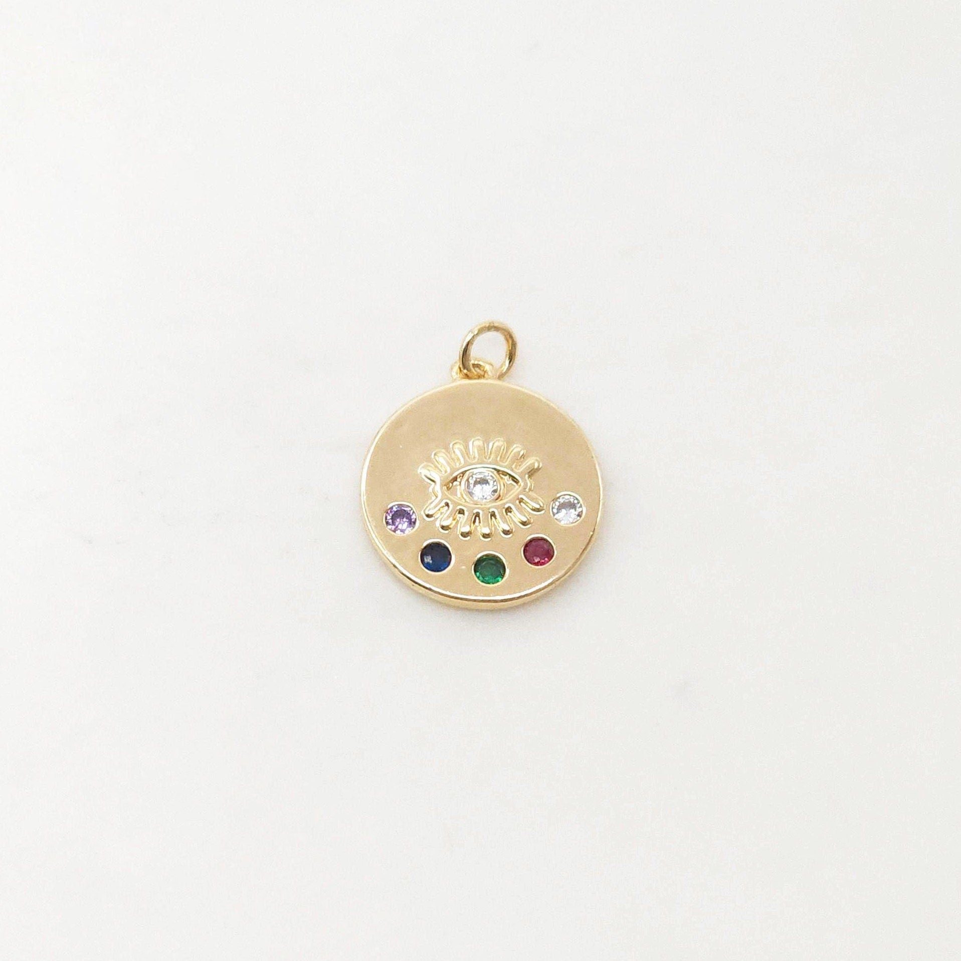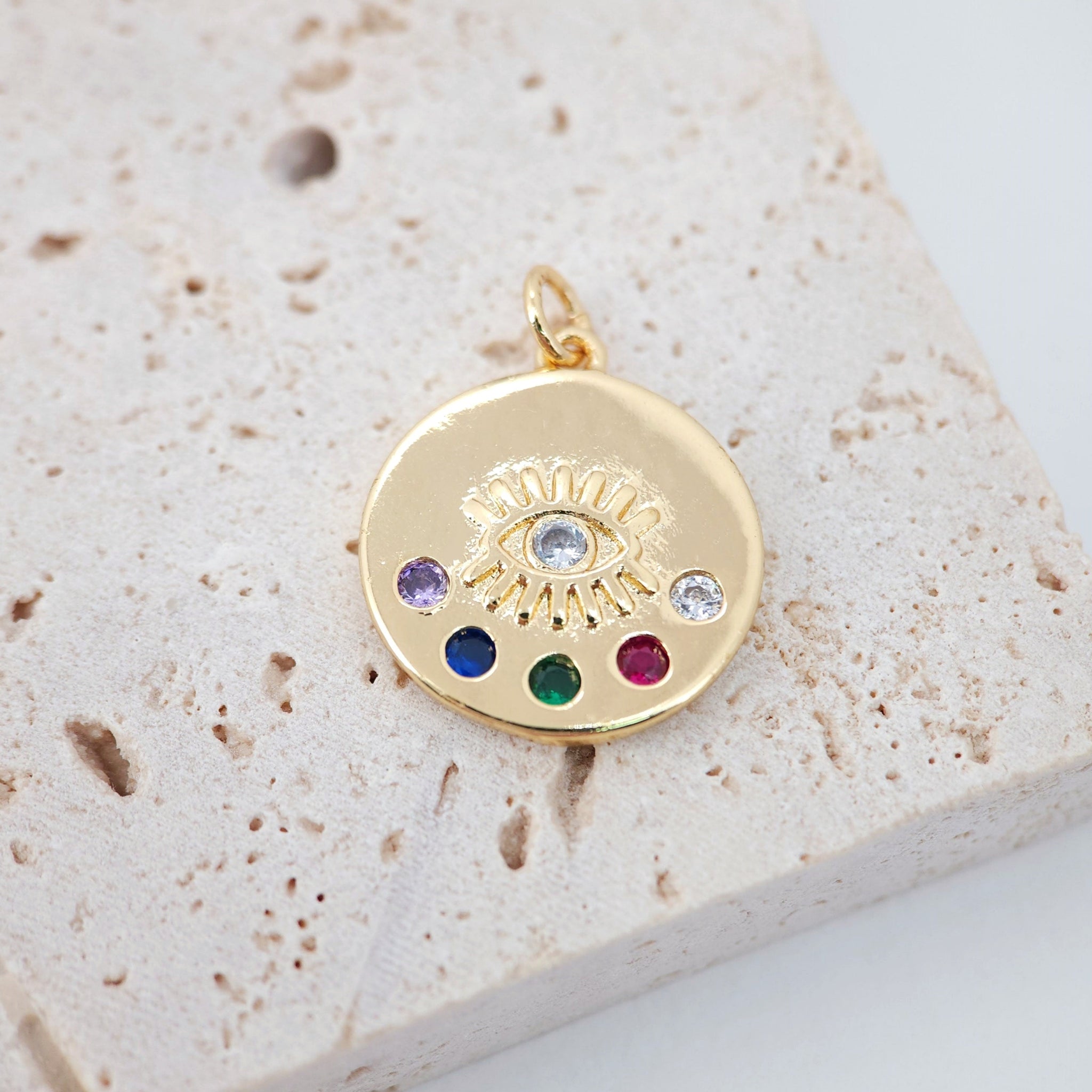 سحر عين الشر، قلادة عملة معدنية، قلادة عين مرصعة بالزركونيوم مطلية بالذهب عيار 18 قيراطًا، سحر صنع القلائد، نتائج المجوهرات S20408