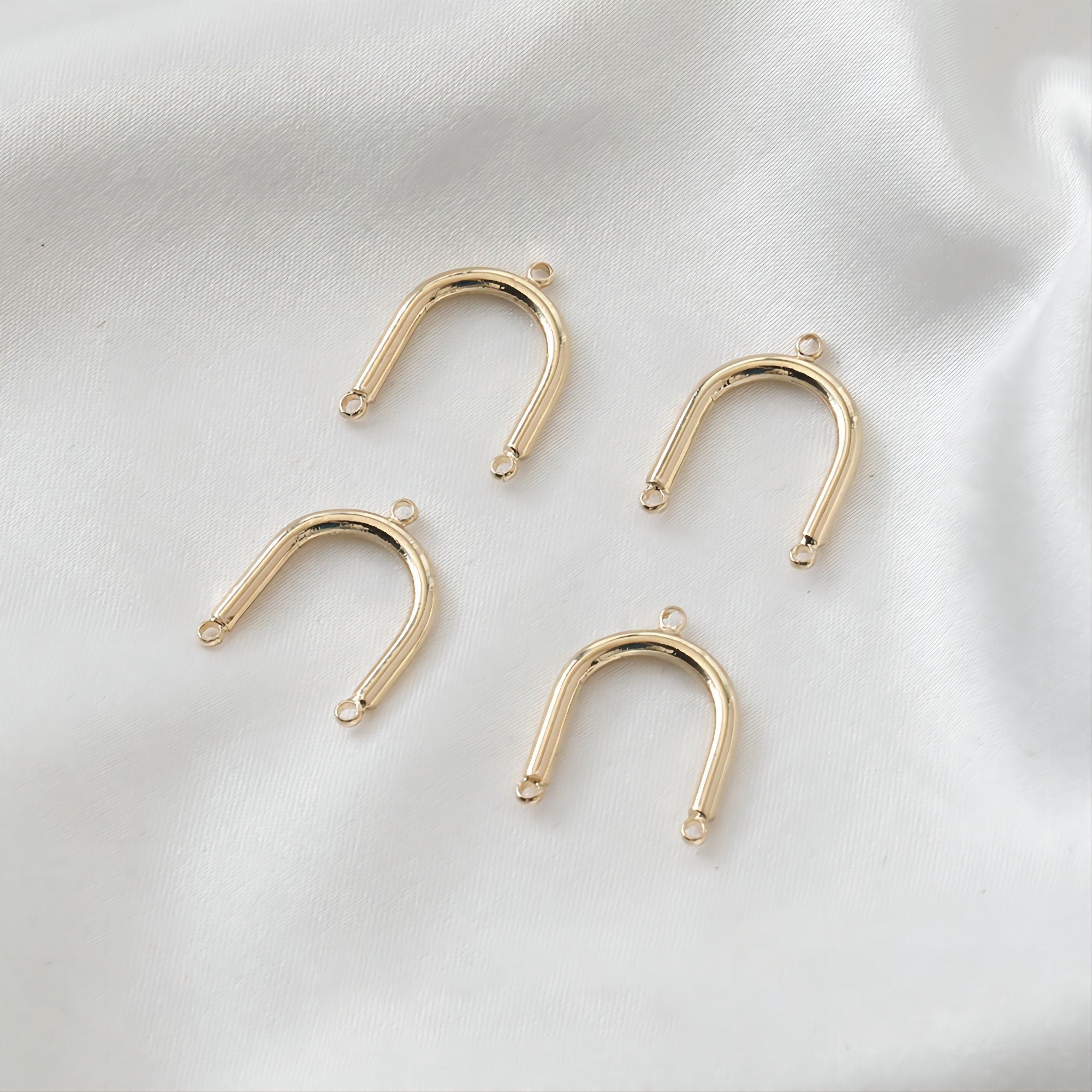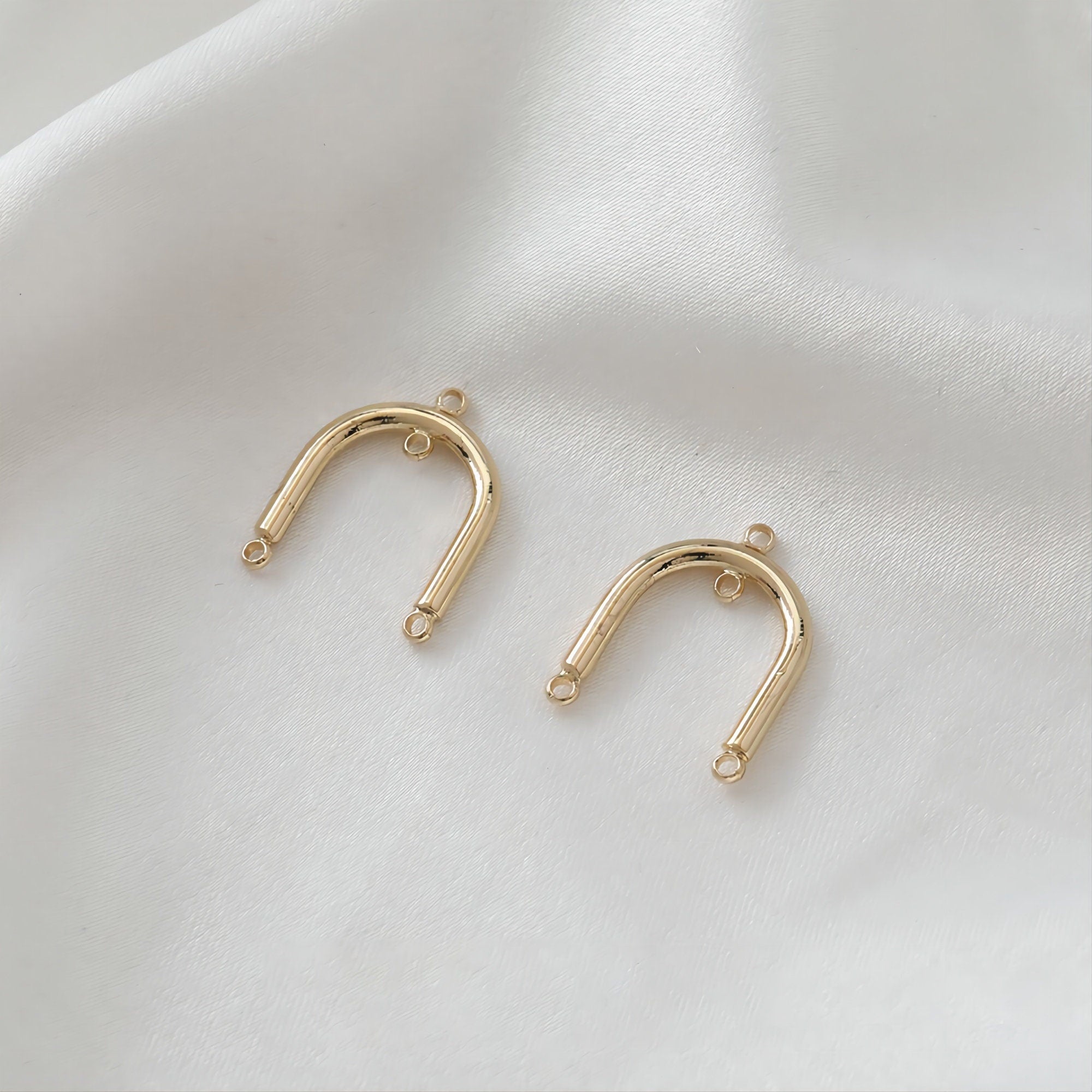 موصل ذهبي مقوس على شكل حرف U مع حلقات، مطلي بالذهب/الفضة عيار 14 قيراطًا، نتائج صنع الأقراط، نتائج مجوهرات 13 × 17 مم JH009
