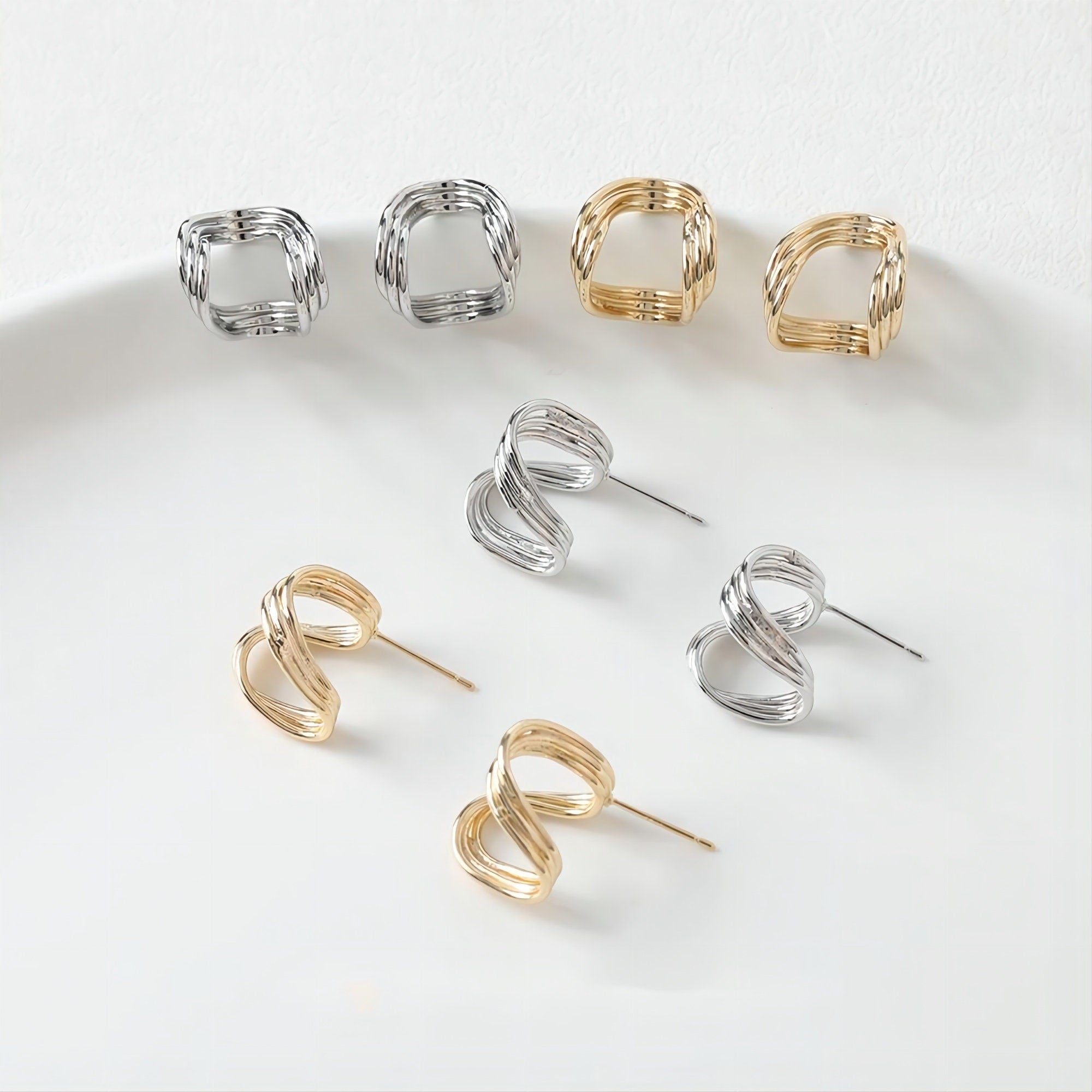 قرط أذن من الفضة الإسترليني عيار 925، دبوس أذن غير منتظم، خالٍ من النيكل، مشبك أذن ذهبي/فضي، مضاد للحساسية، GE066