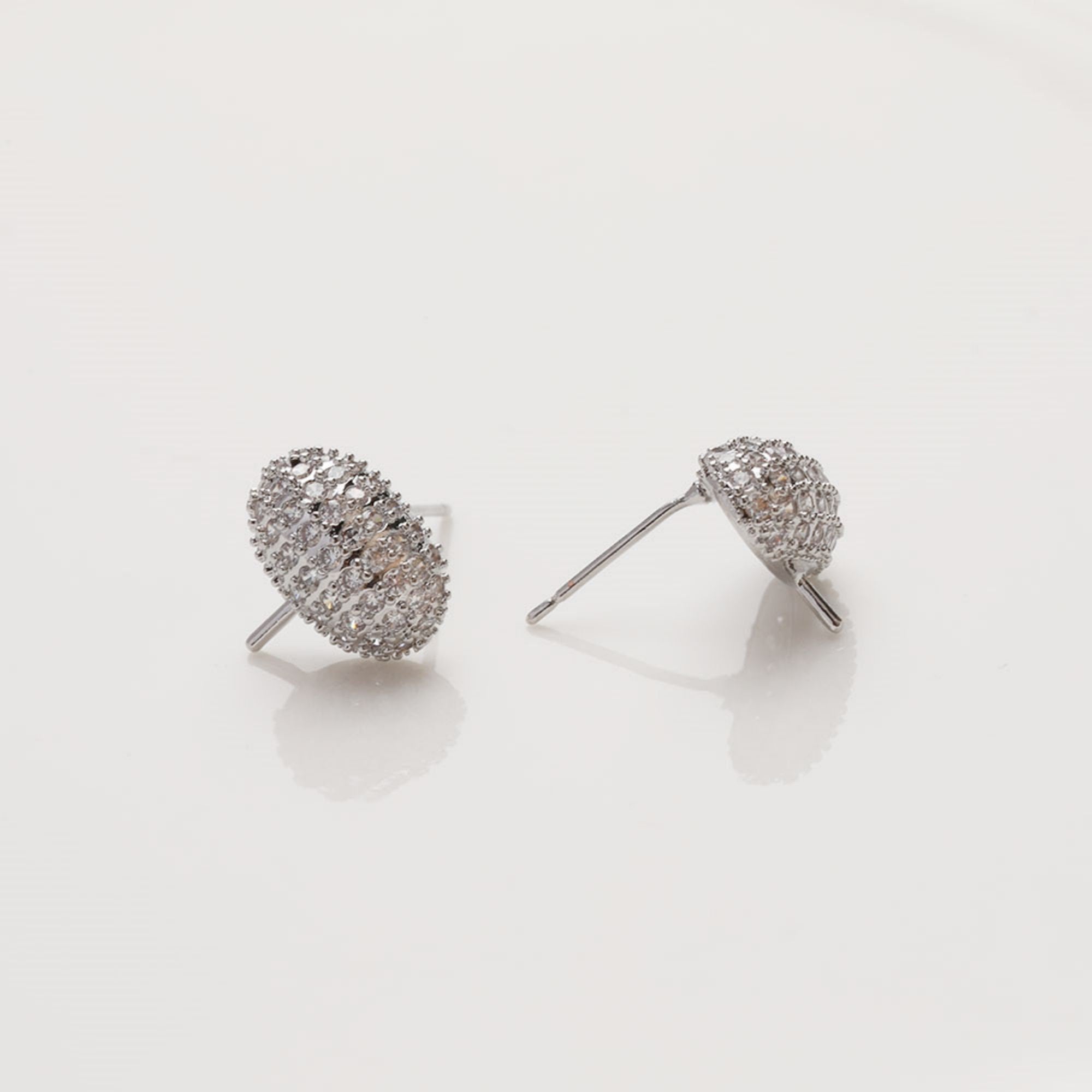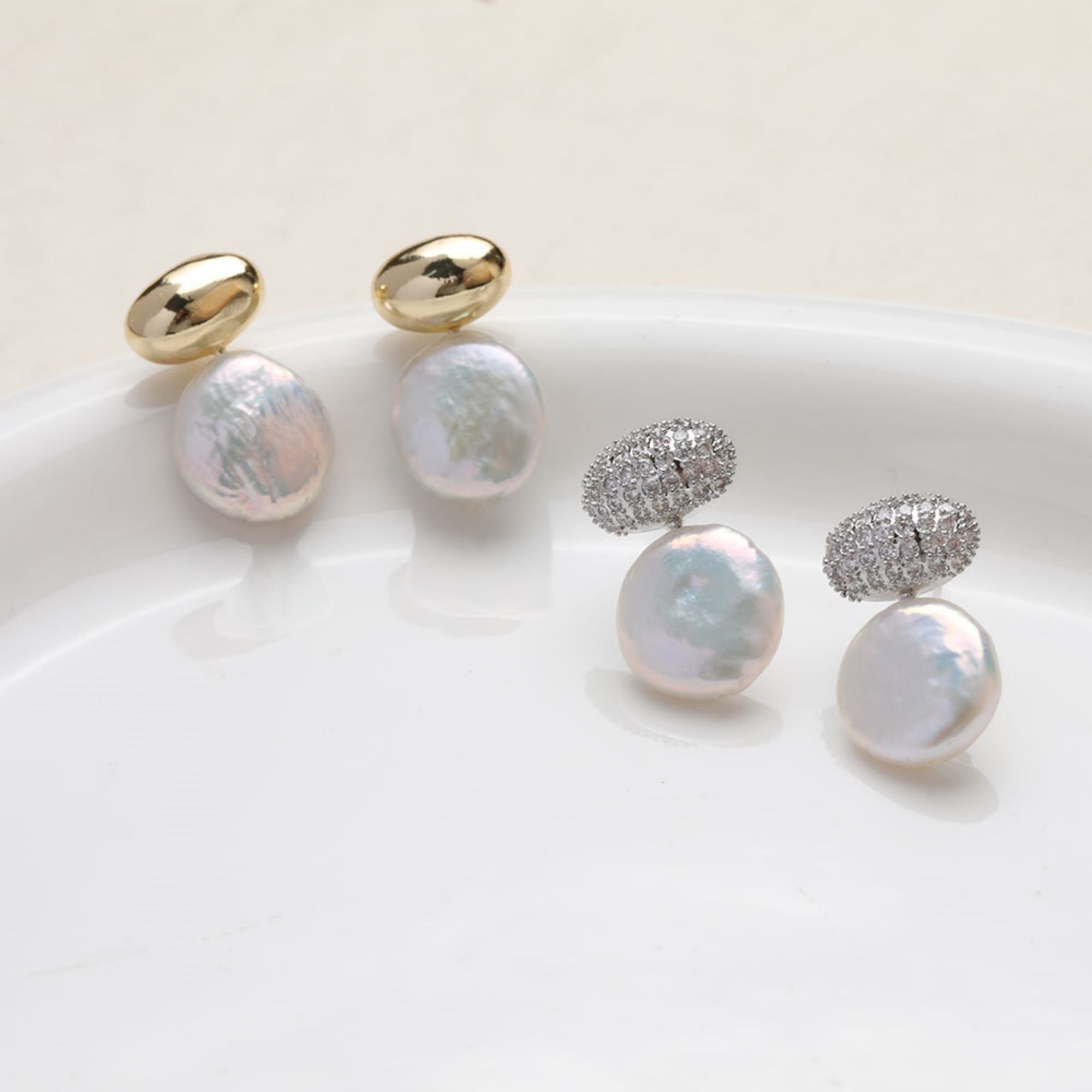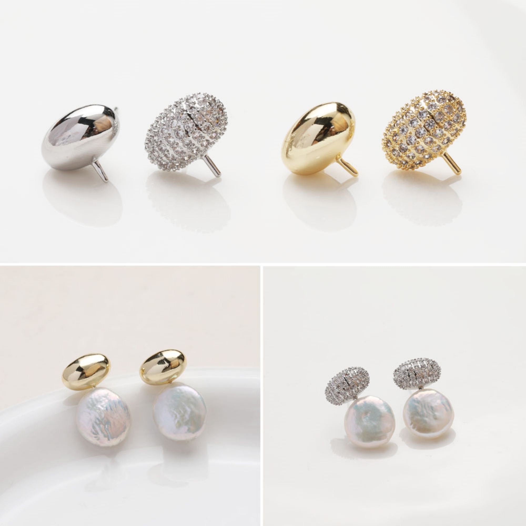 دبوس أذن من الفضة الإسترليني عيار 925 على شكل نجمة بيضاوية مرصعة بحجر الزركونيا المكعب، مع حلق أذن من الذهب عيار 14 قيراطًا مع أغطية تثبيت لنتائج أقراط اللؤلؤ نصف المثقوبة GZ414