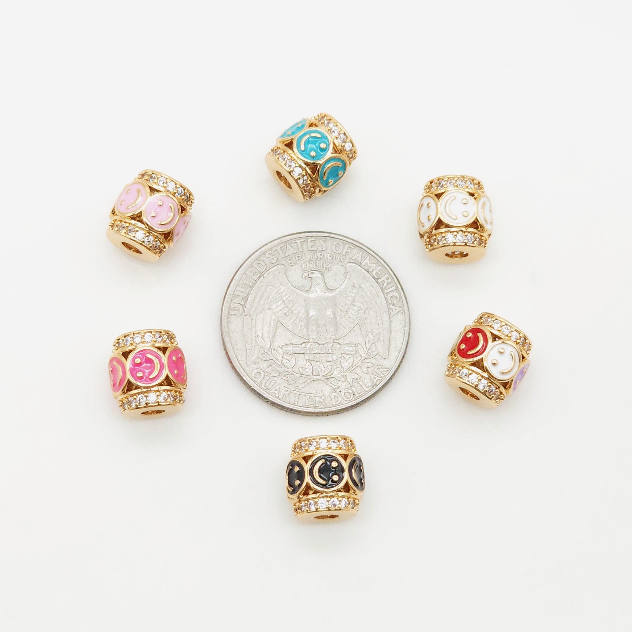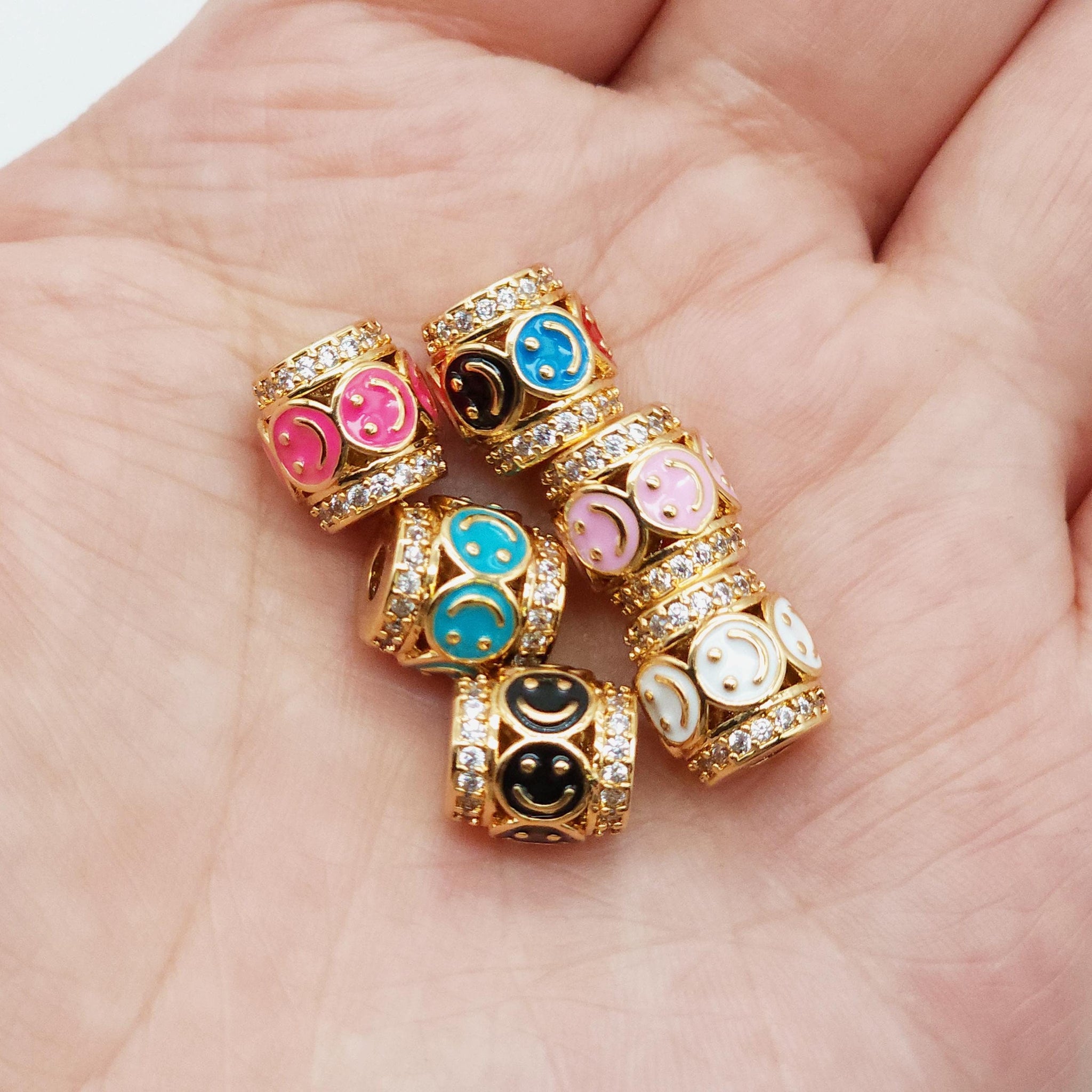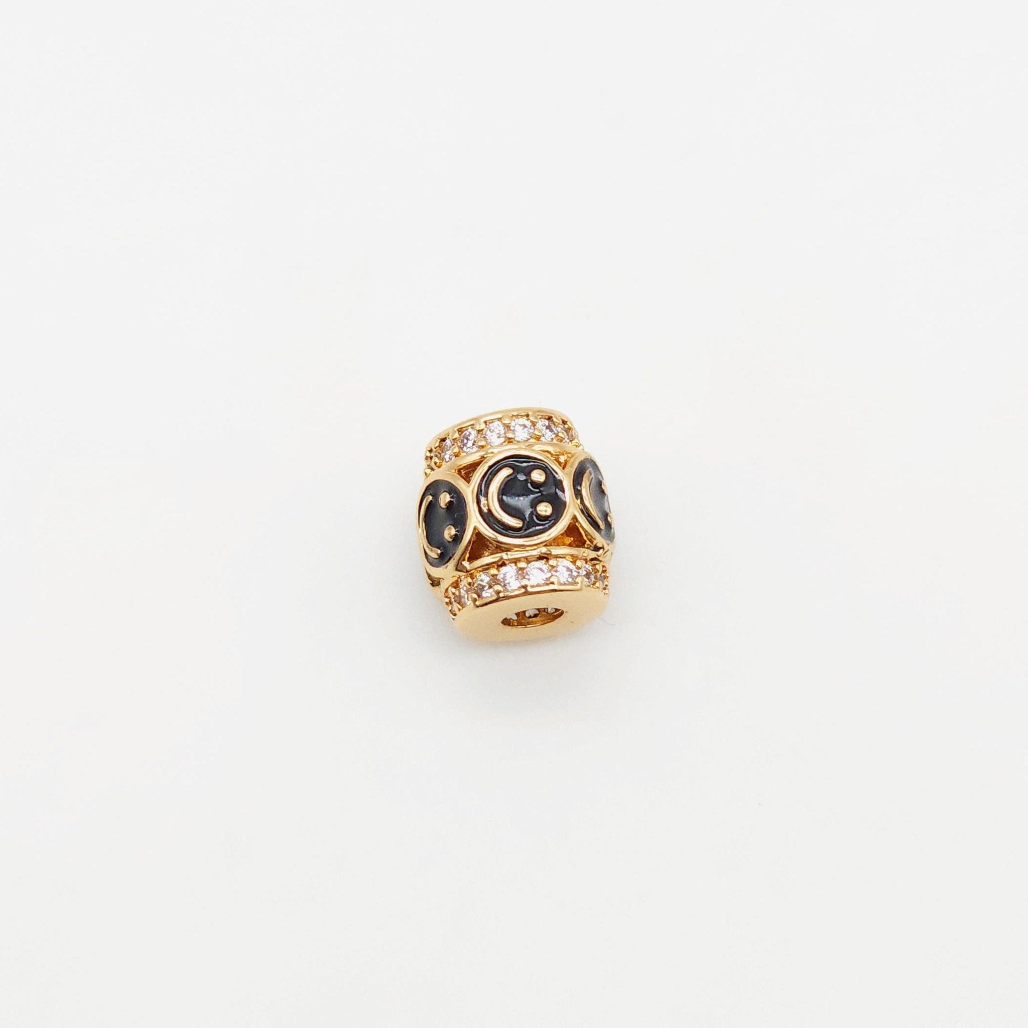 Barrel Column Beads, Spacer Beads, Enamel Emoji Beads, Happy Face, 18K Gold Plated Bracelet Necklace Making...