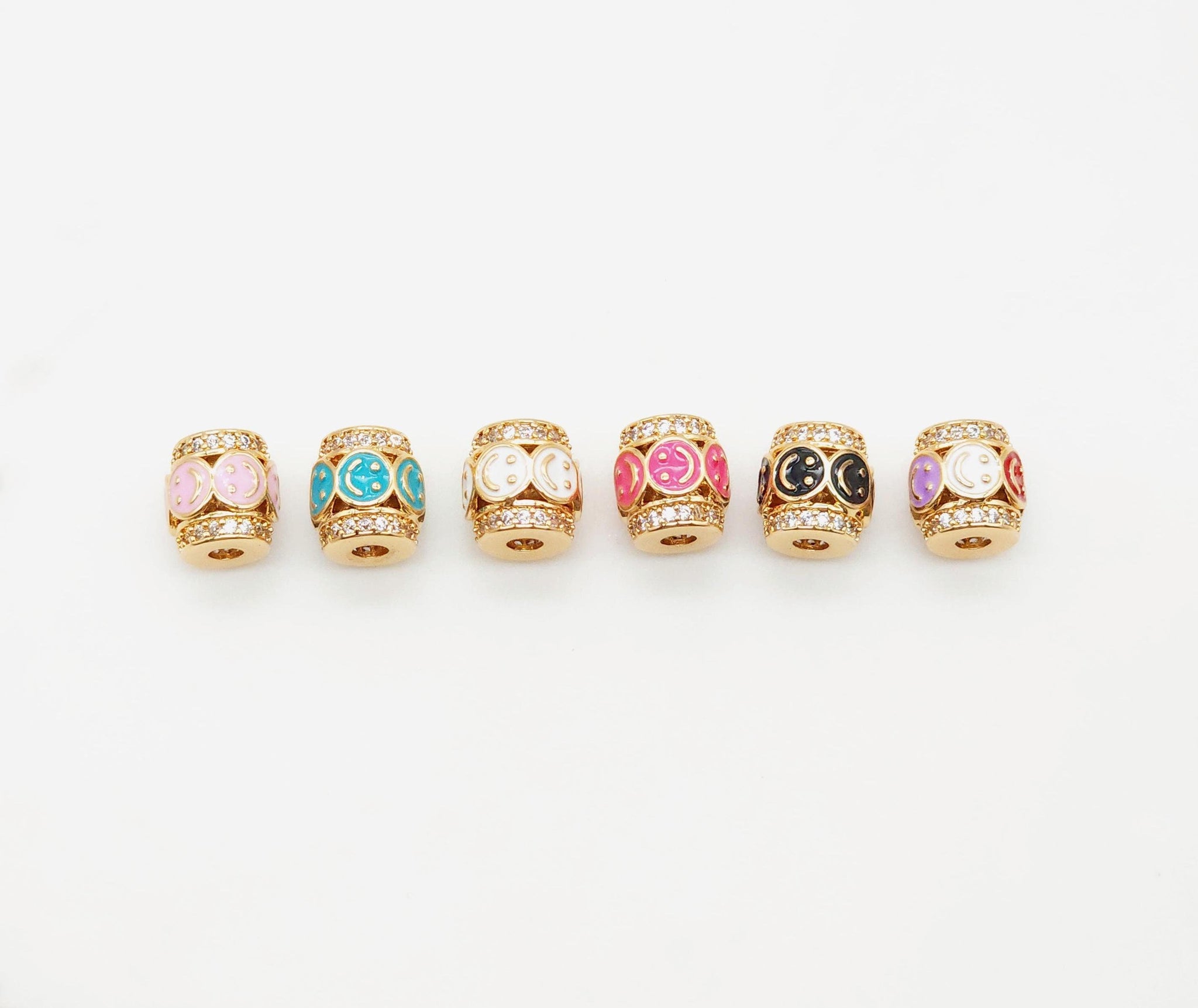 Barrel Column Beads, Spacer Beads, Enamel Emoji Beads, Happy Face, 18K Gold Plated Bracelet Necklace Making Jewelry Finding S20349