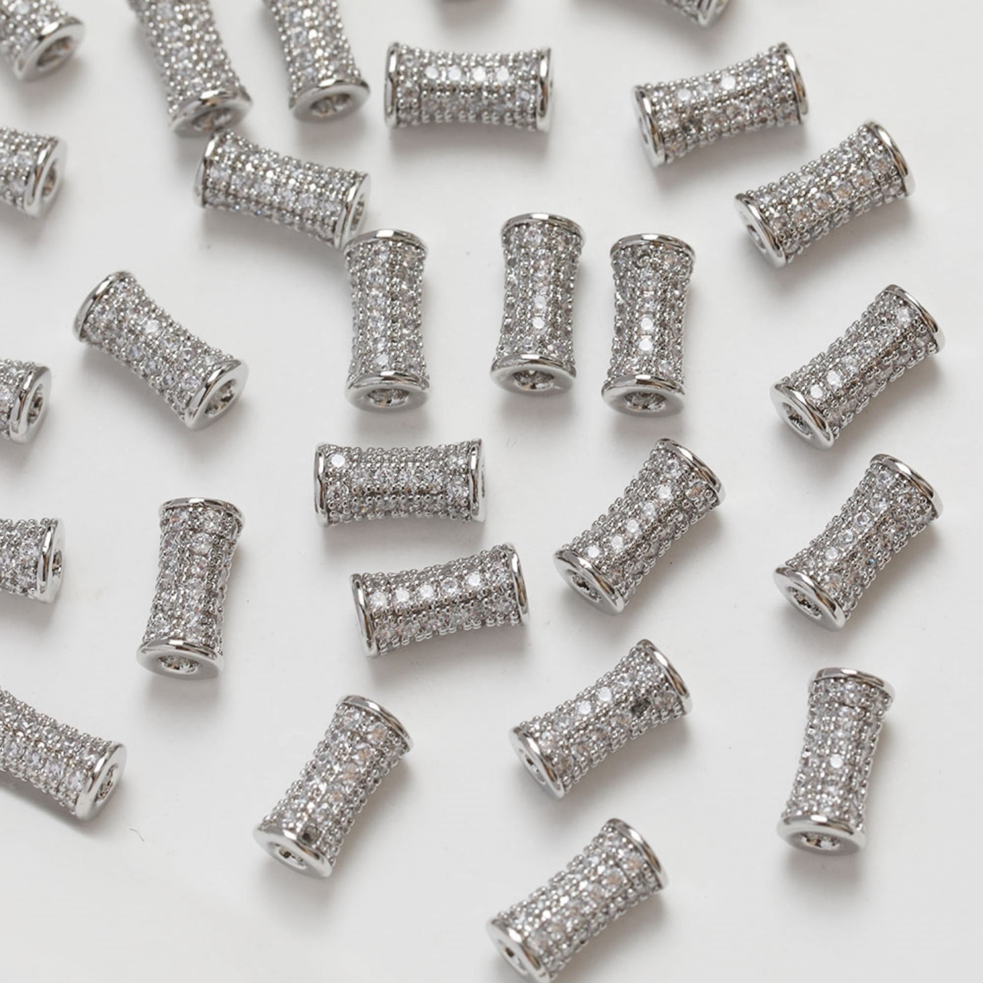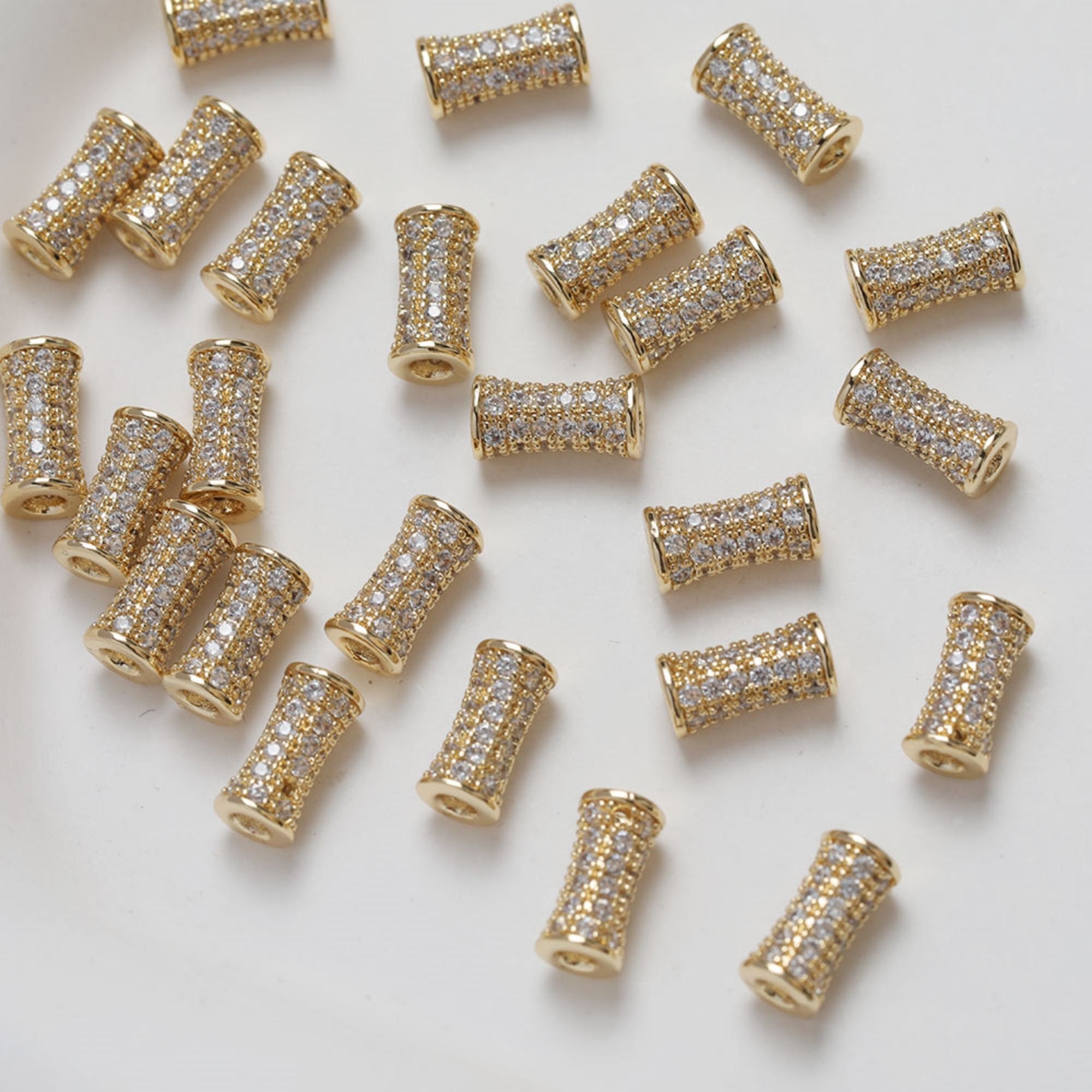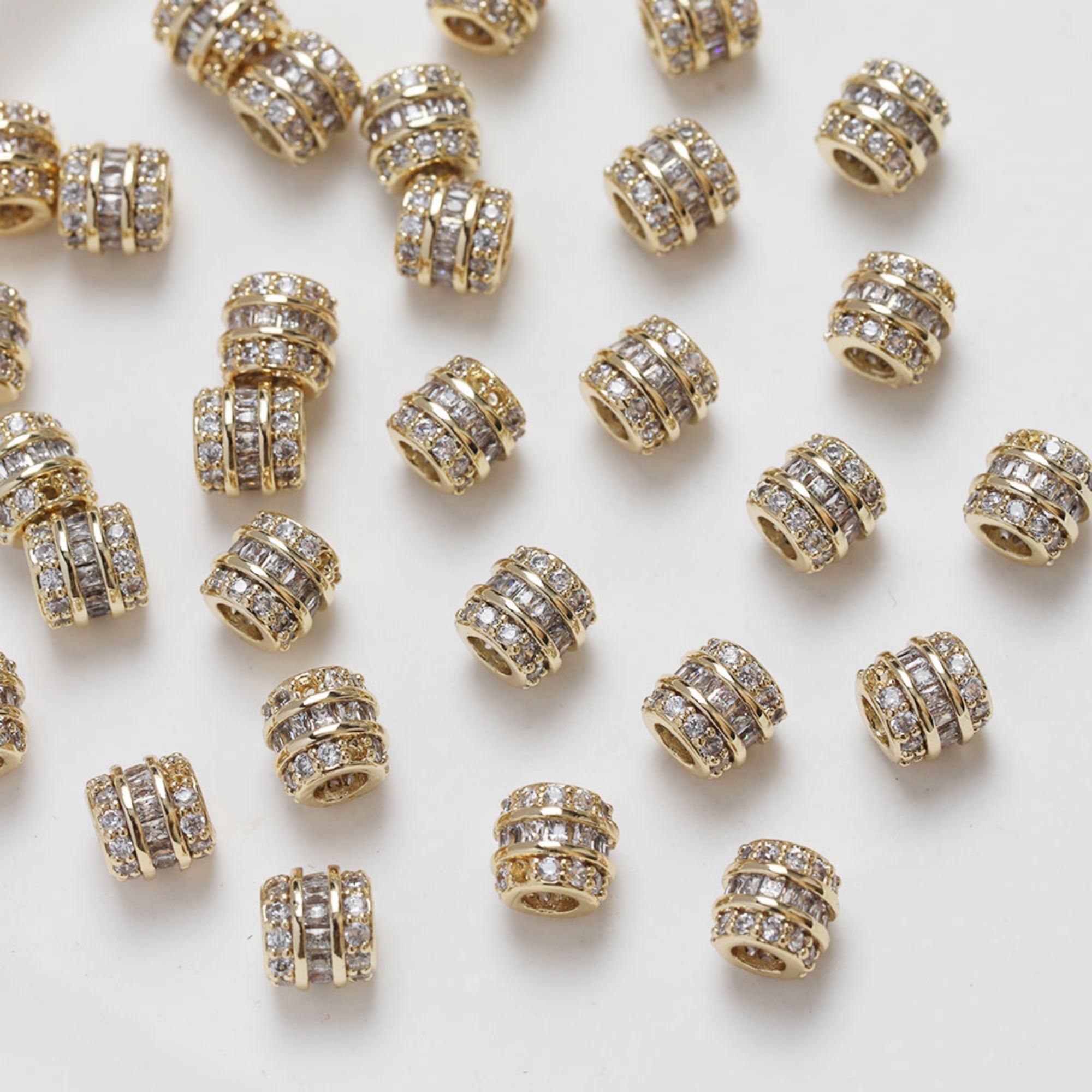 Cylindrical Cubic Spacer Beads, 14K Gold Plated, Cubic Zirconia, 3D Flower Beads, Dainty Earring Making Beads,...