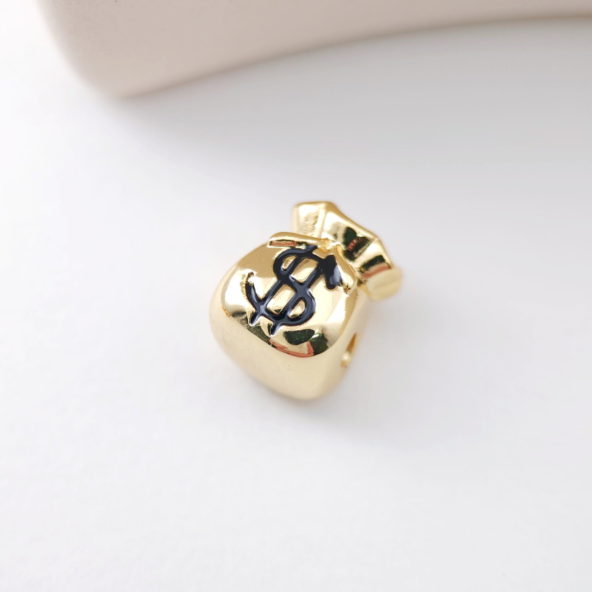 Enamel Money Bag Beads, Dollar Spacer Beads, 18K Gold Plated, Bracelet Necklace Making Jewelry Finding S1136