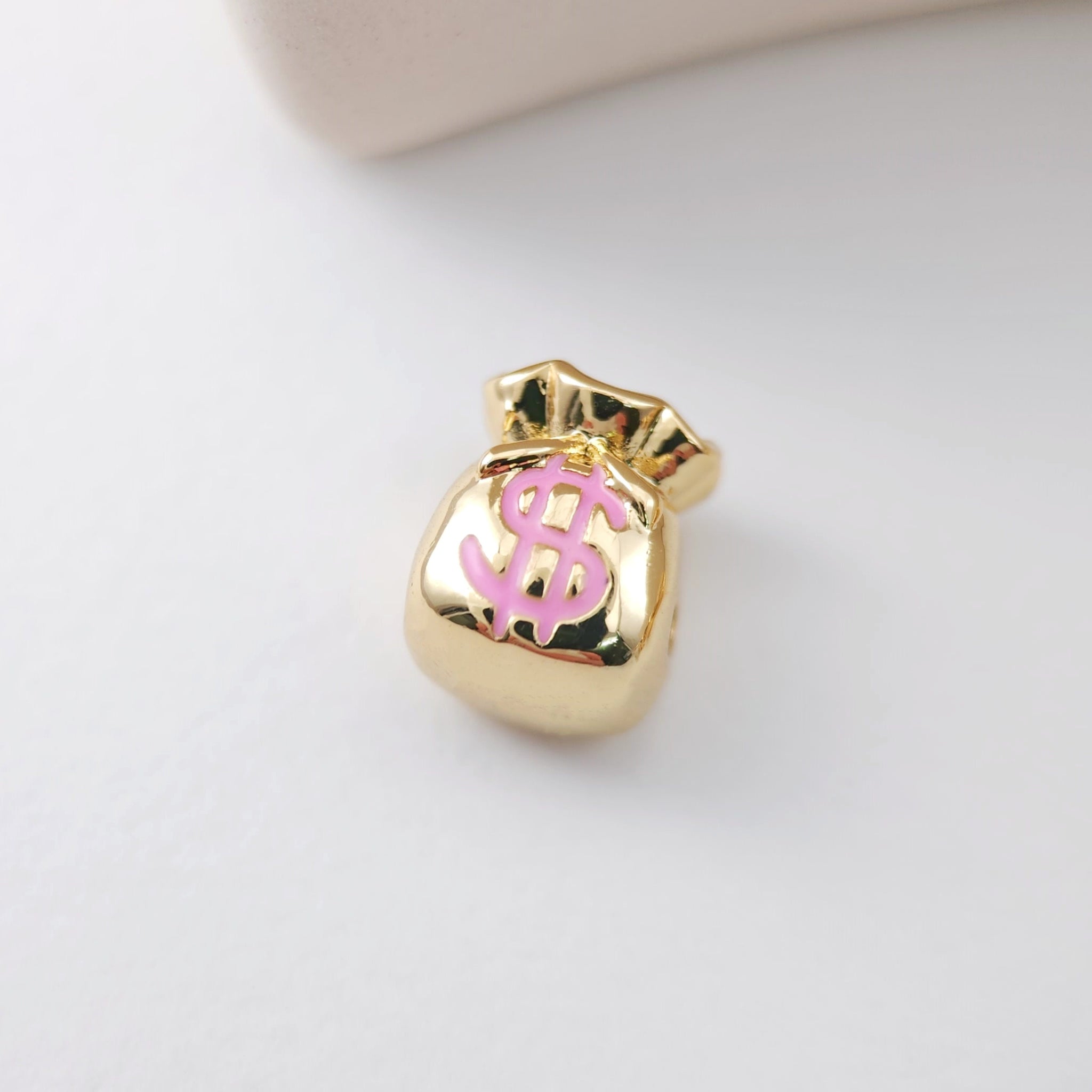 Enamel Money Bag Beads, Dollar Spacer Beads, 18K Gold Plated,  Bracelet Necklace Making Jewelry Finding S1136