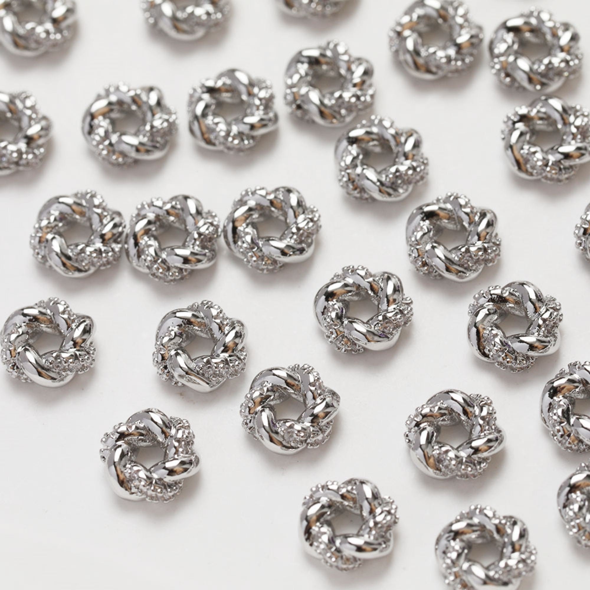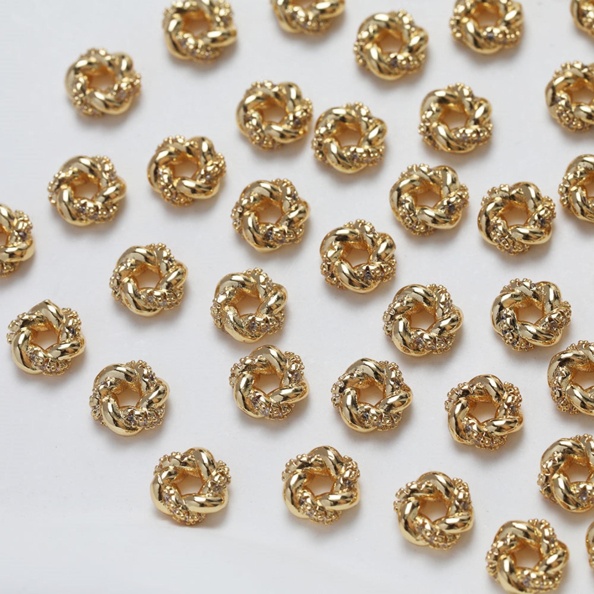 Flat Circle Twist Spacer Beads, CZ Pave Beads, 14K Gold Plated, Dainty Earring Making Beads, Jewelry Finding GZ357