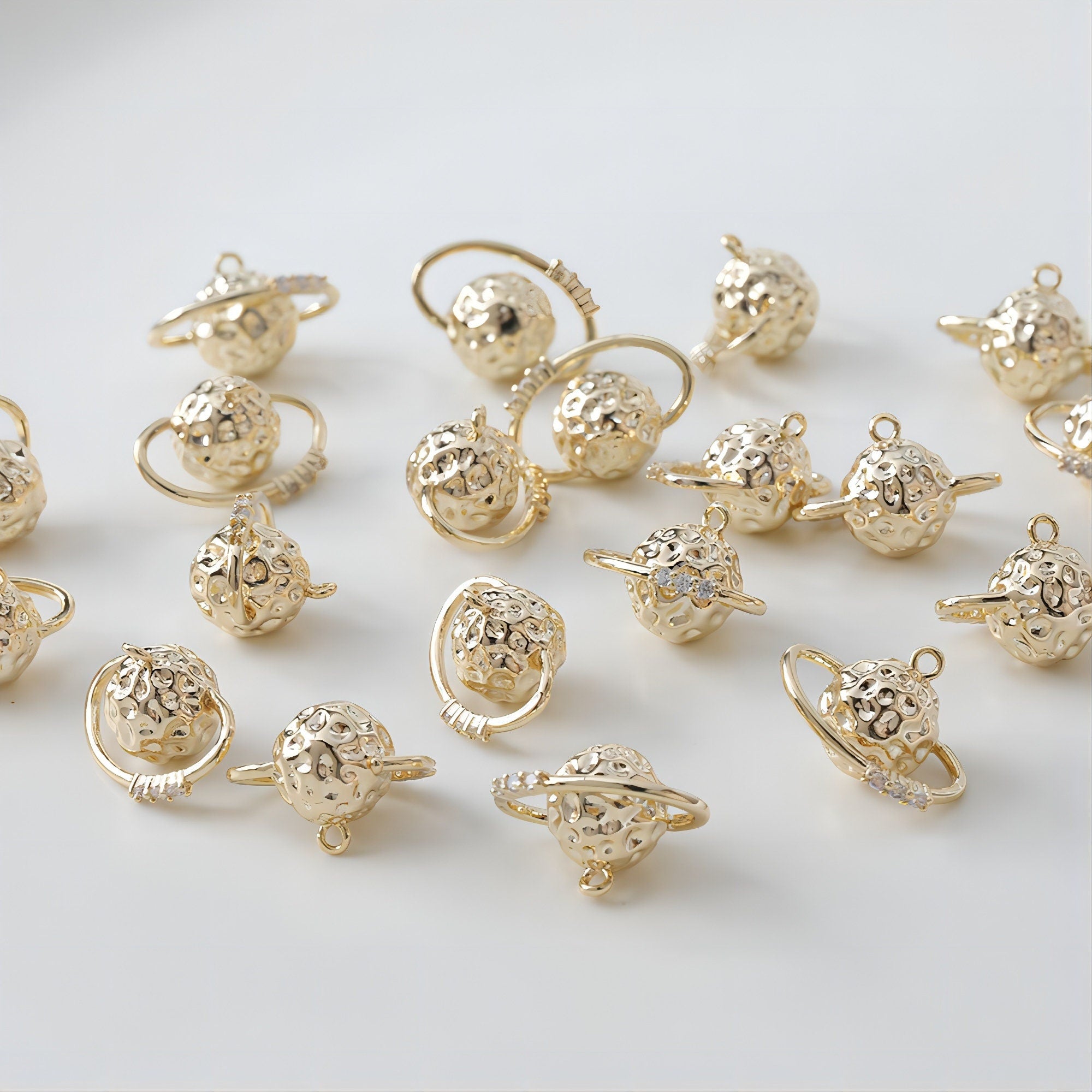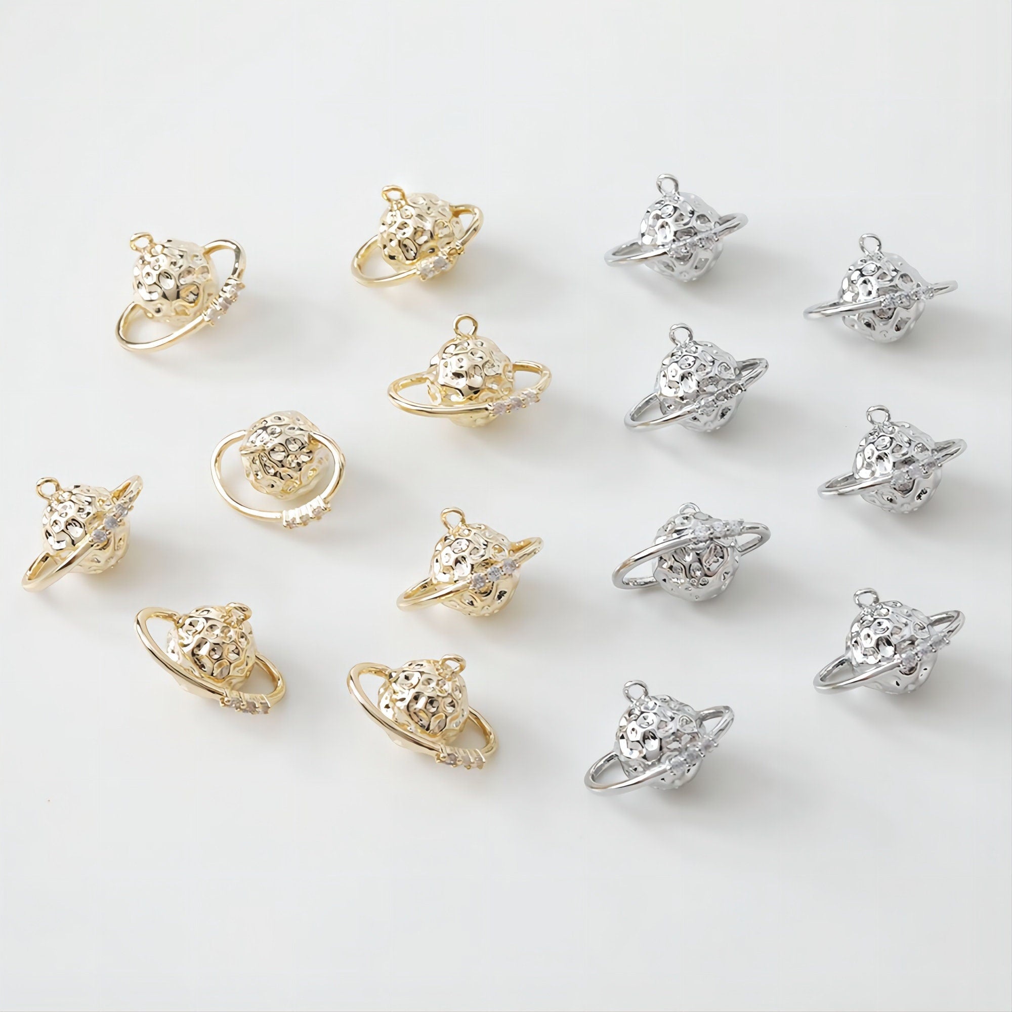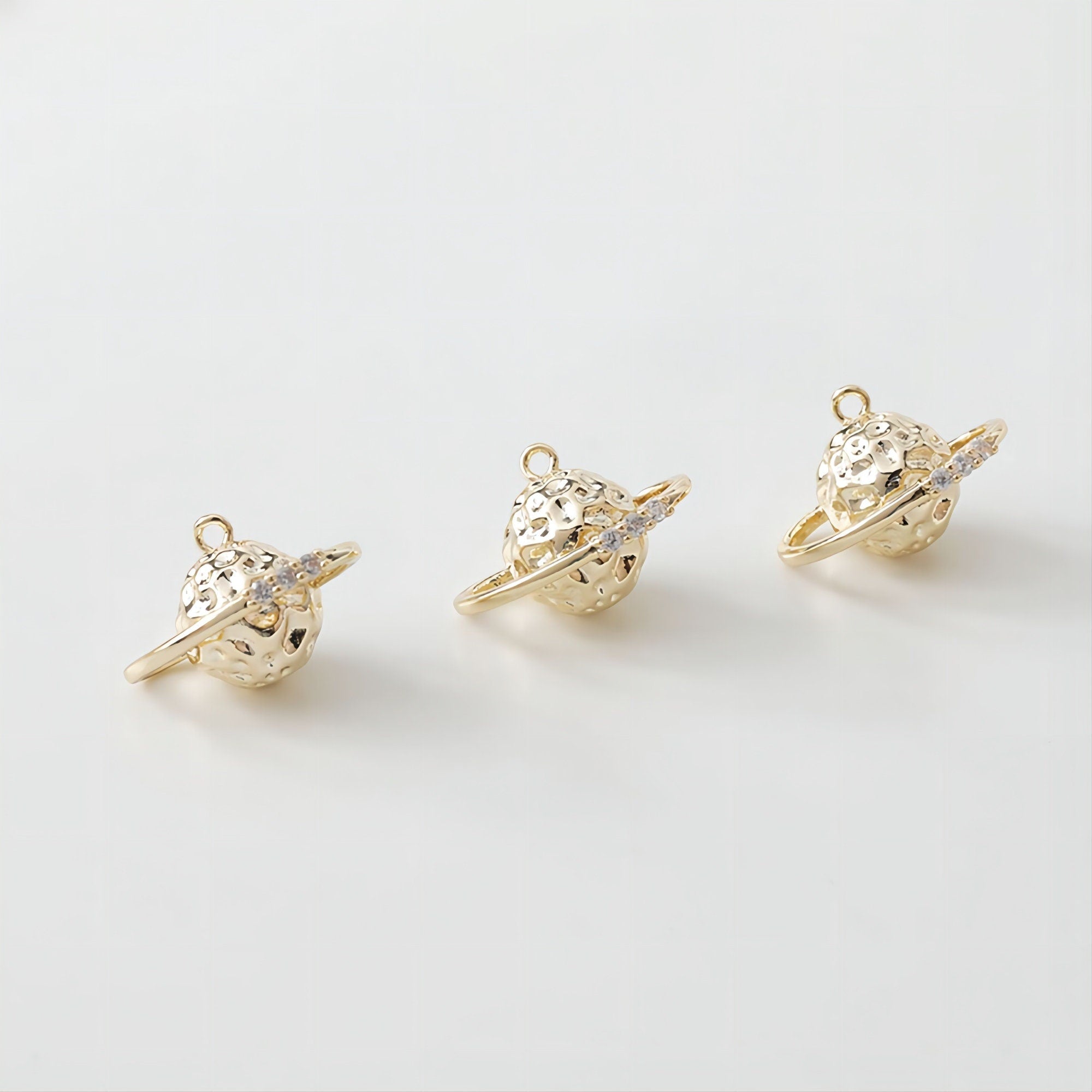 14K Saturn Planet Charm, 3D Pendant, 18K Gold Plated/Silver, Necklace Making Charms, Jewelry Findings GS004Quantity: 2...