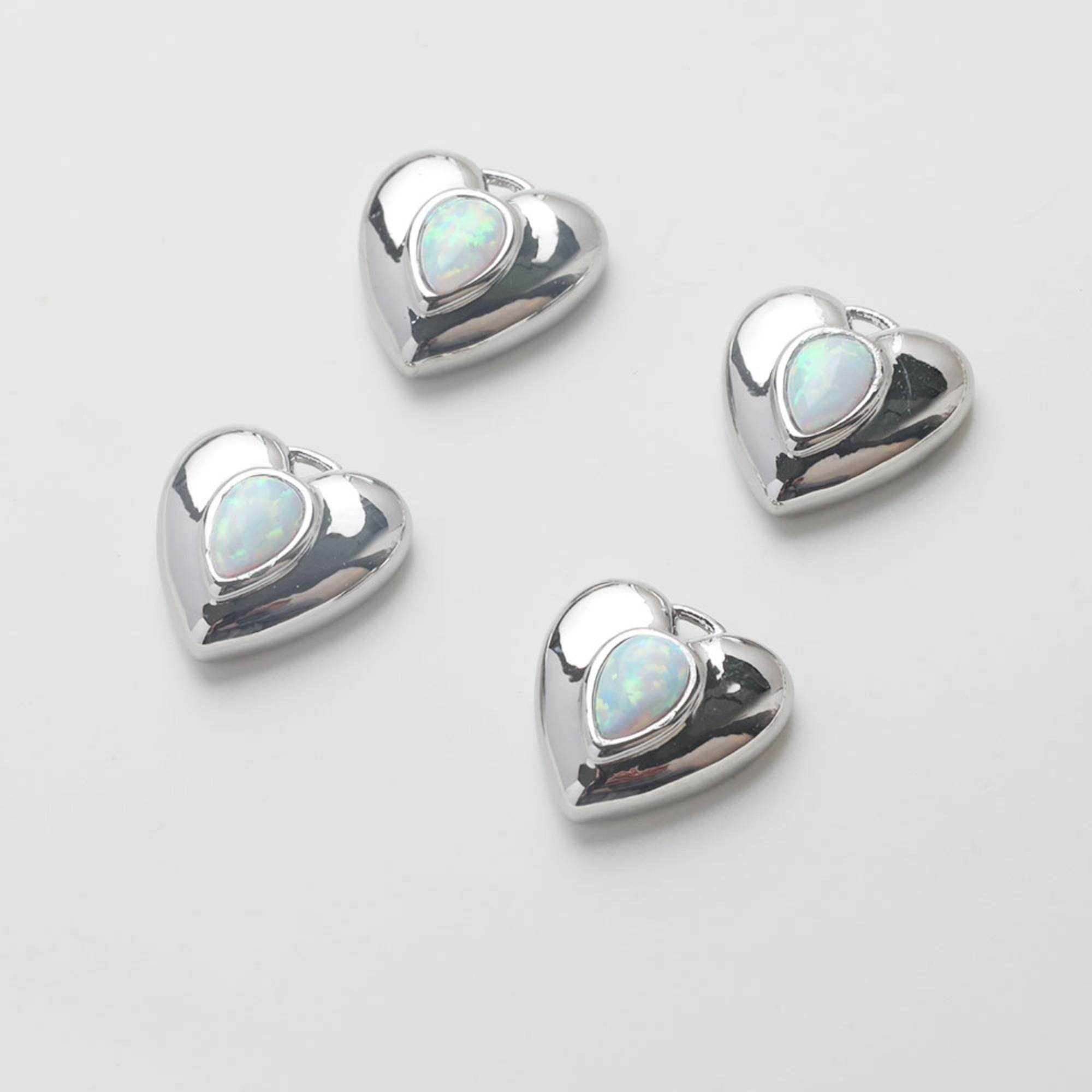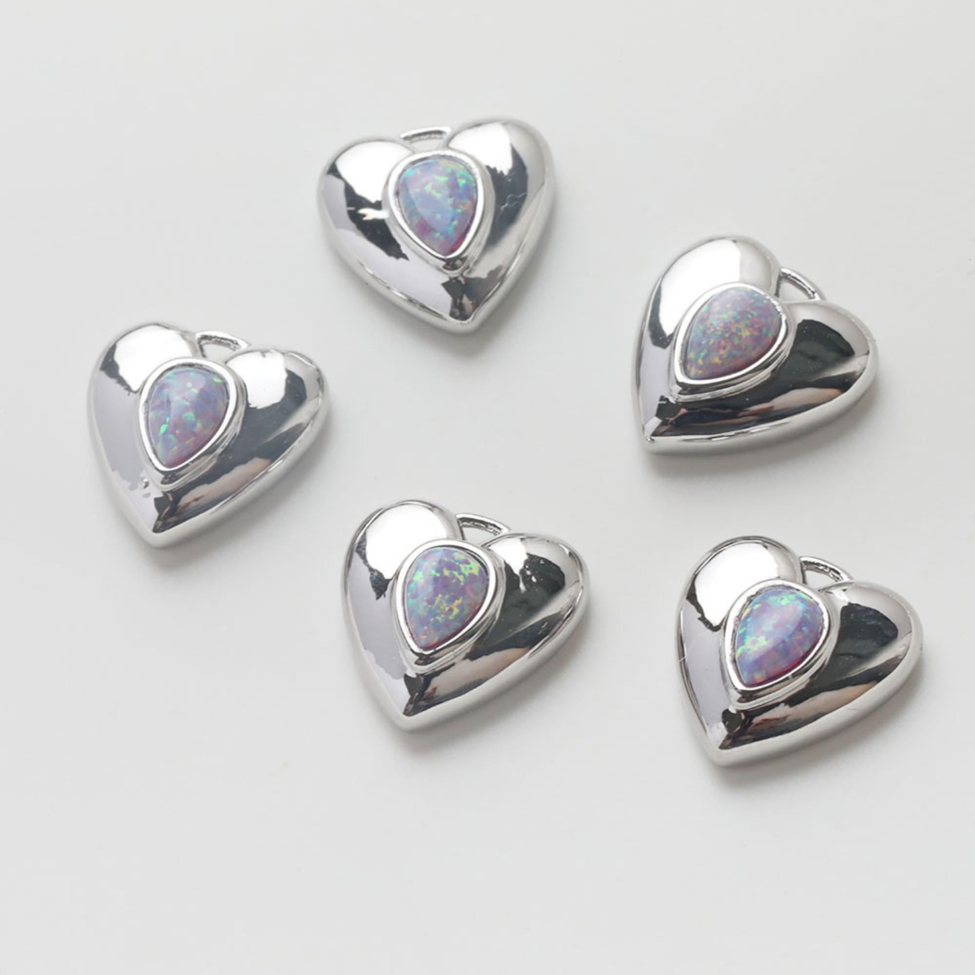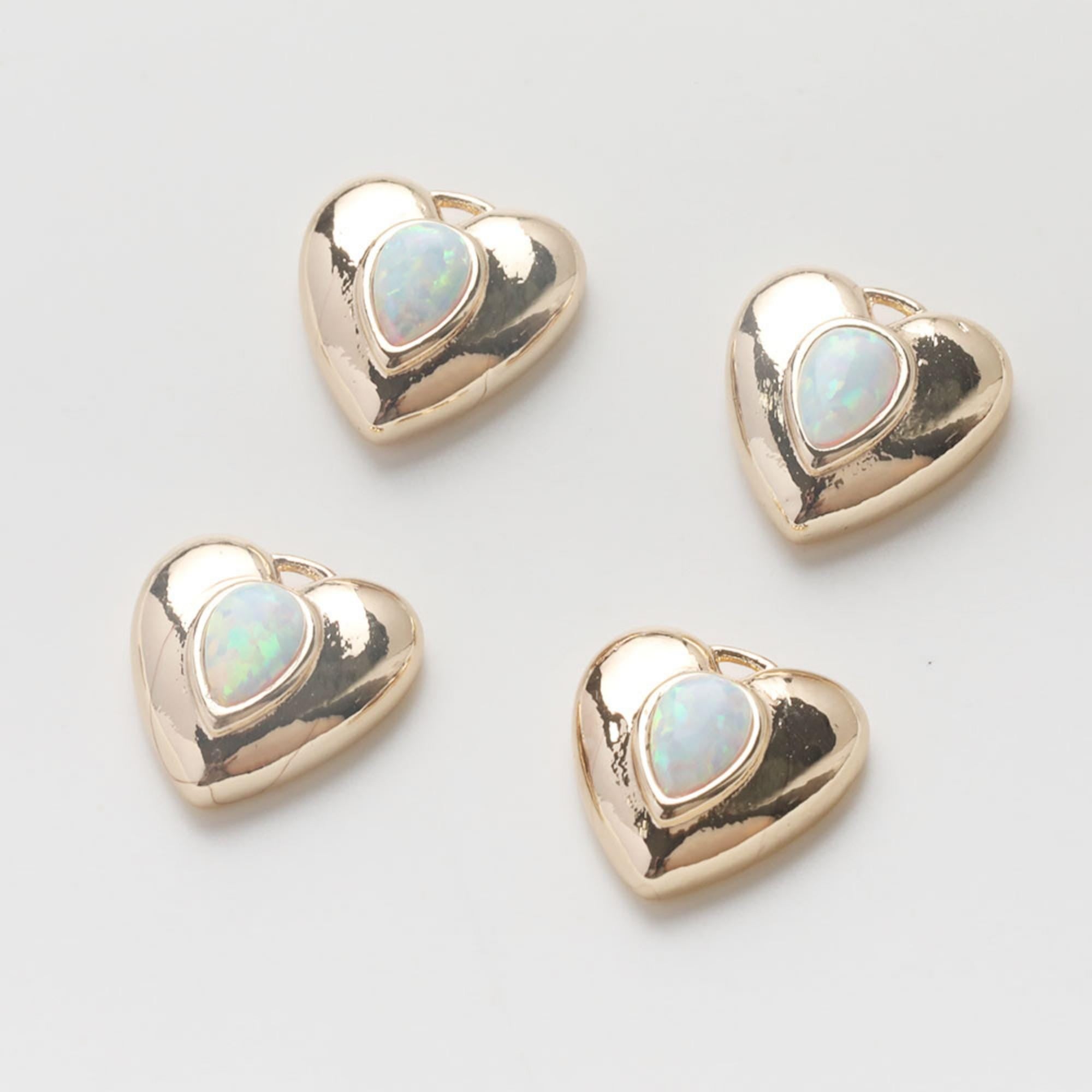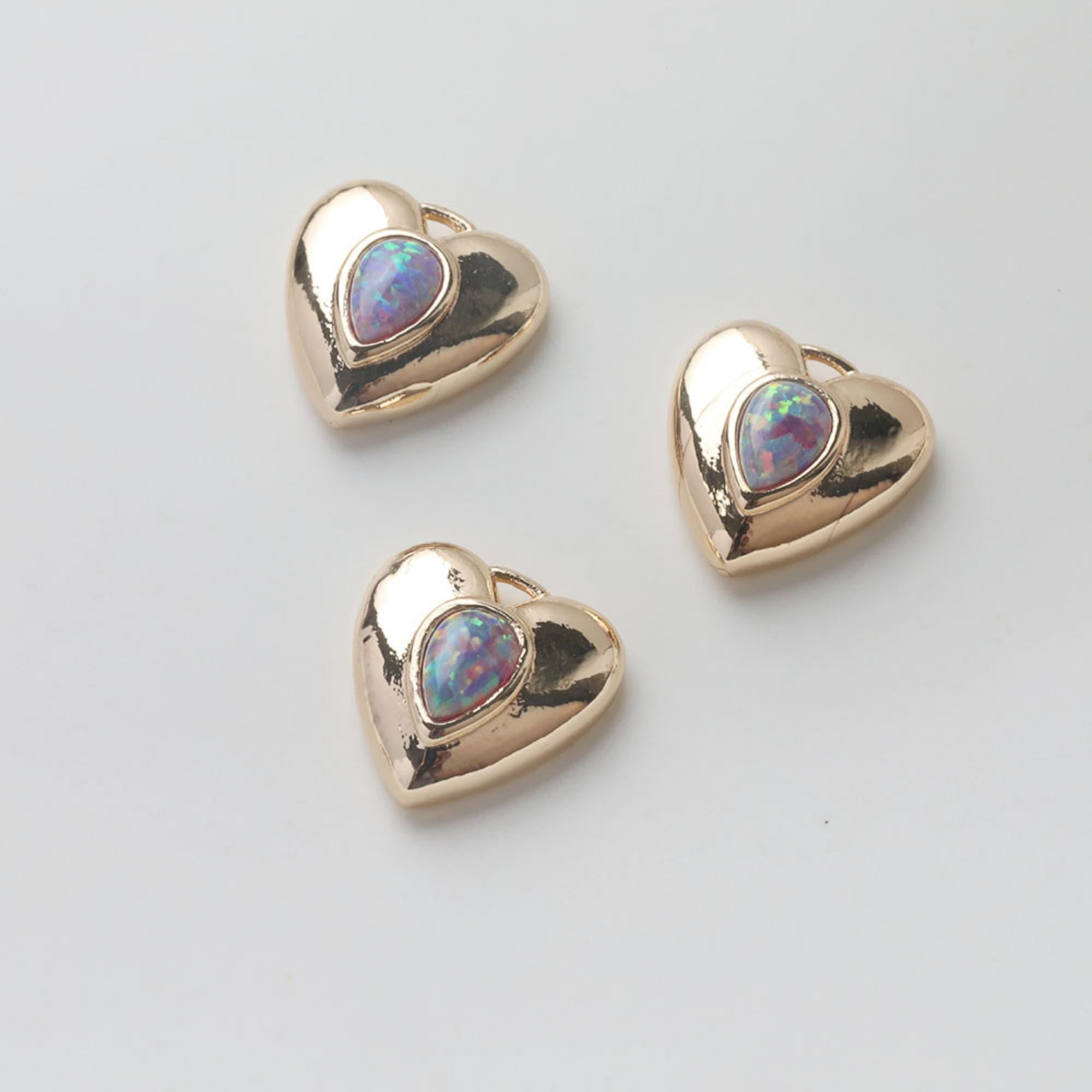 3D Heart Charms, 14K Gold Plated Opal Pave, Love Pendant, Necklace Making Pendants, Jewelry Findings GZ741