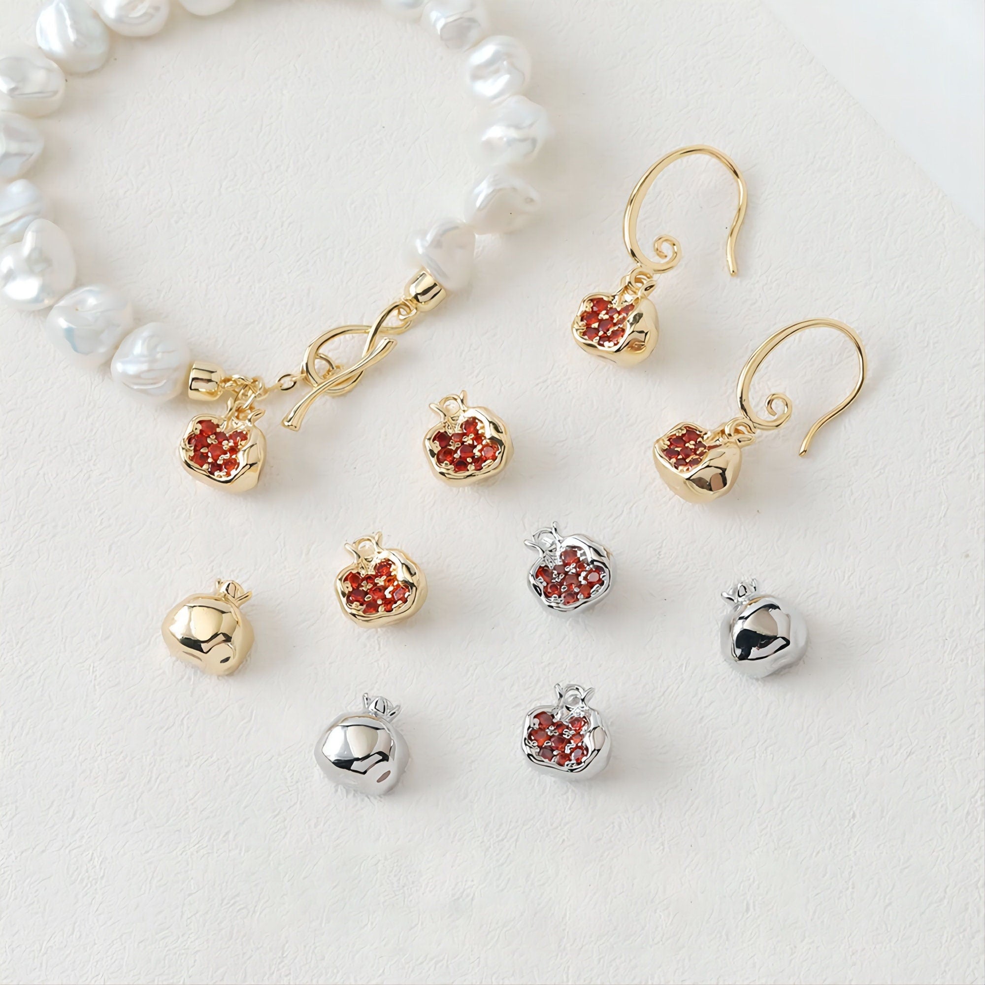 3D Pomegranate Pendant, Fruit Charm, 14K Gold/Silver, Pave Red CZ, Necklace Charms, Jewelry Findings GS011Qty: 2pcs/10pcsSize:...