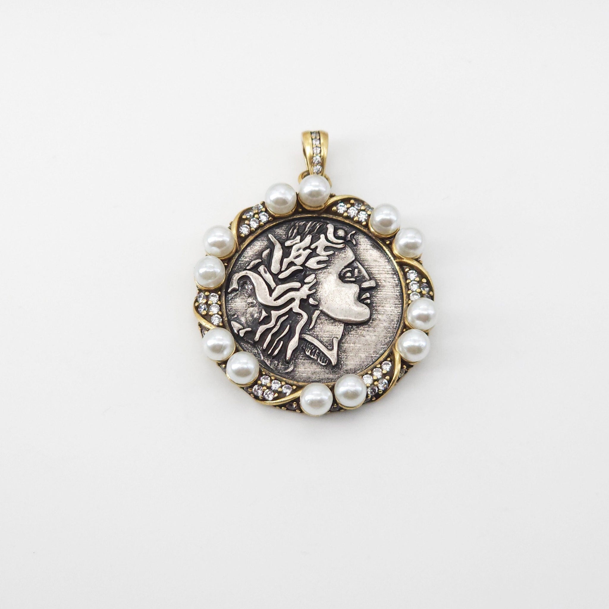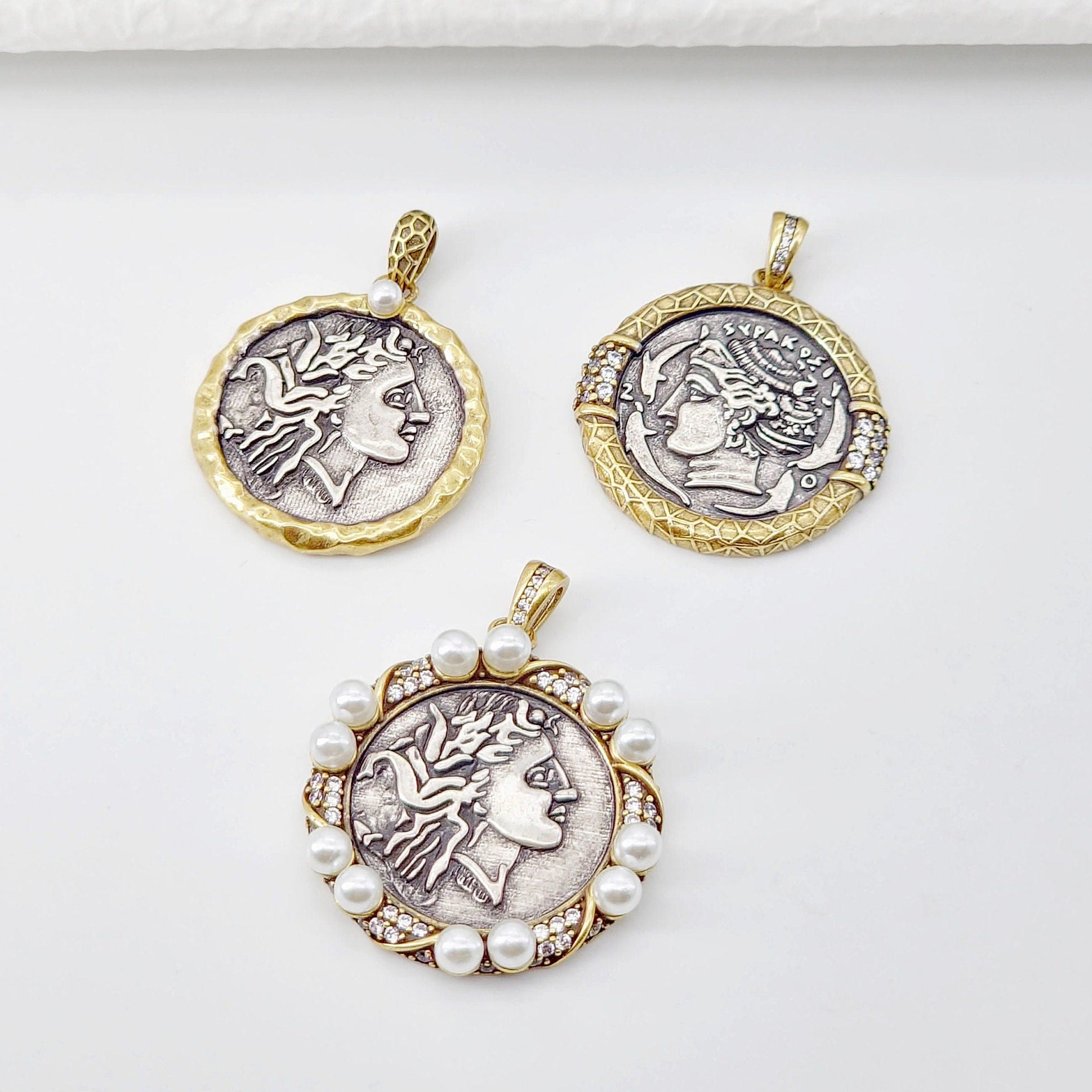 Antique Silver Boho Head Pendant, Boho Coin Charm, Gold Plated, Necklace Making Charm, Jewelry Findings S20699Quantity:...