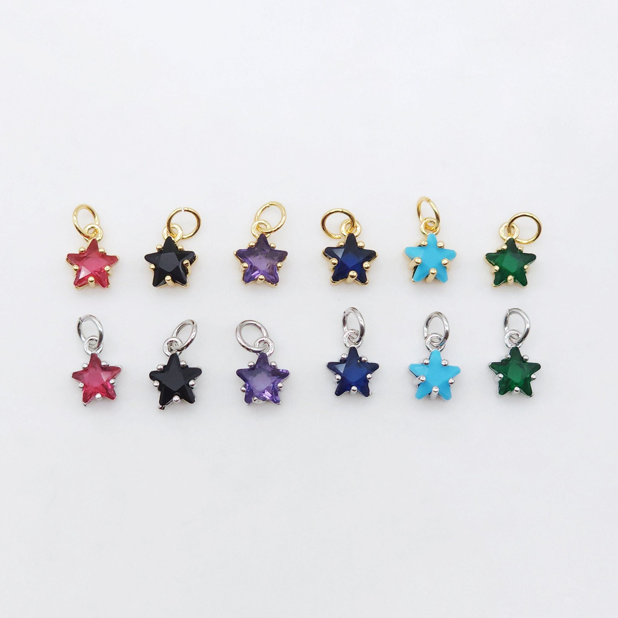 Crystal Tiny Star Charms, 9 Color Crystal You Choose, 18K Gold/Silver Plated Star Pendant, Jewelry Findings...