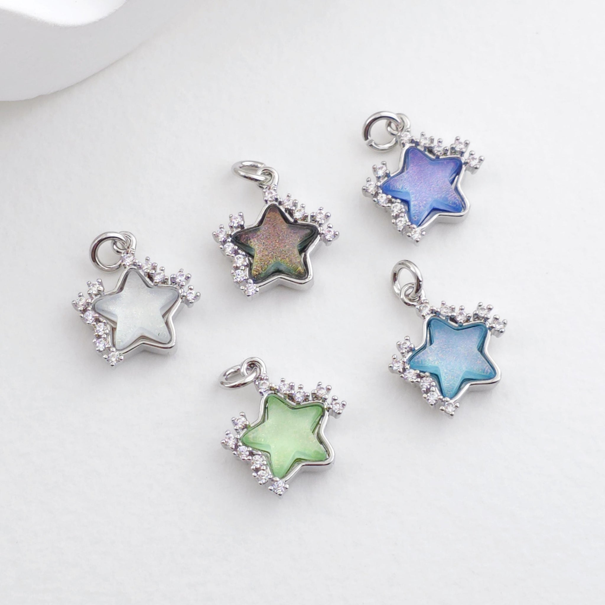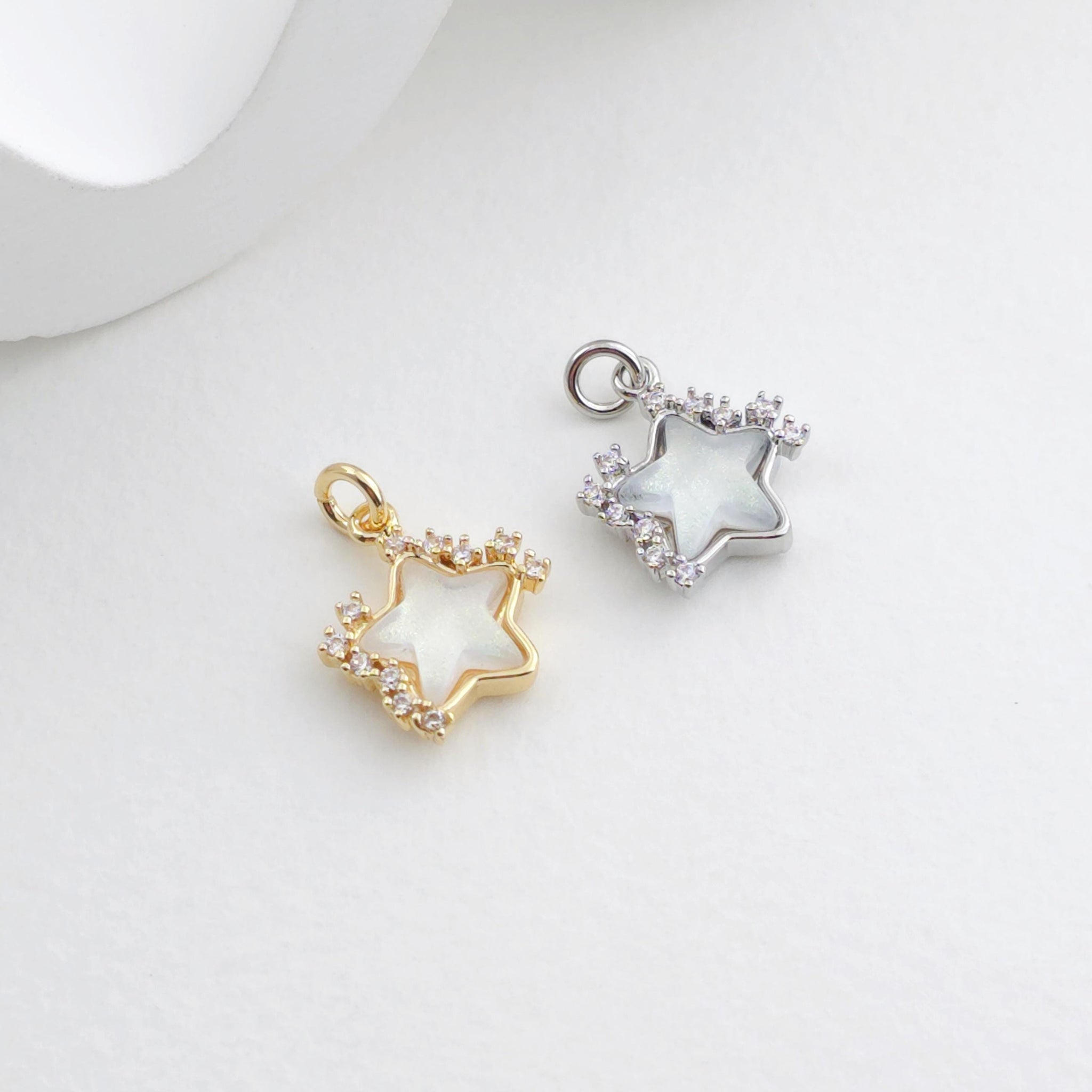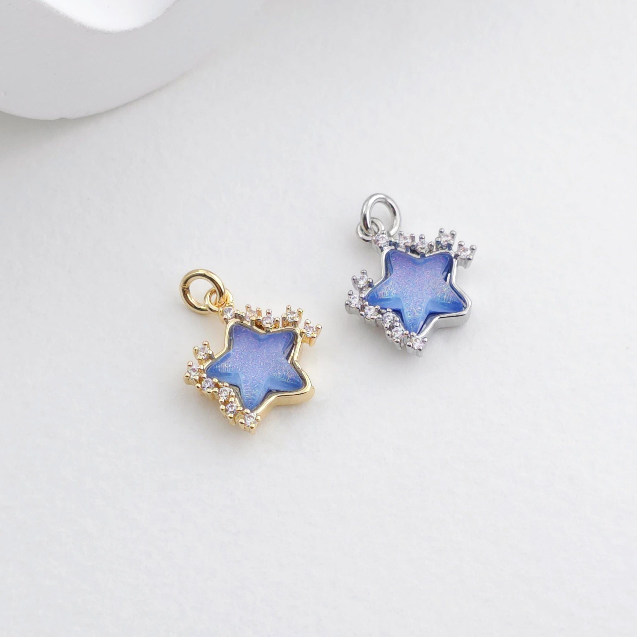Crystal Tiny Star Charms, Cubic Zirconia Pave, 18K Gold/Silver Plated Star Pendant, Jewelry Findings S1294