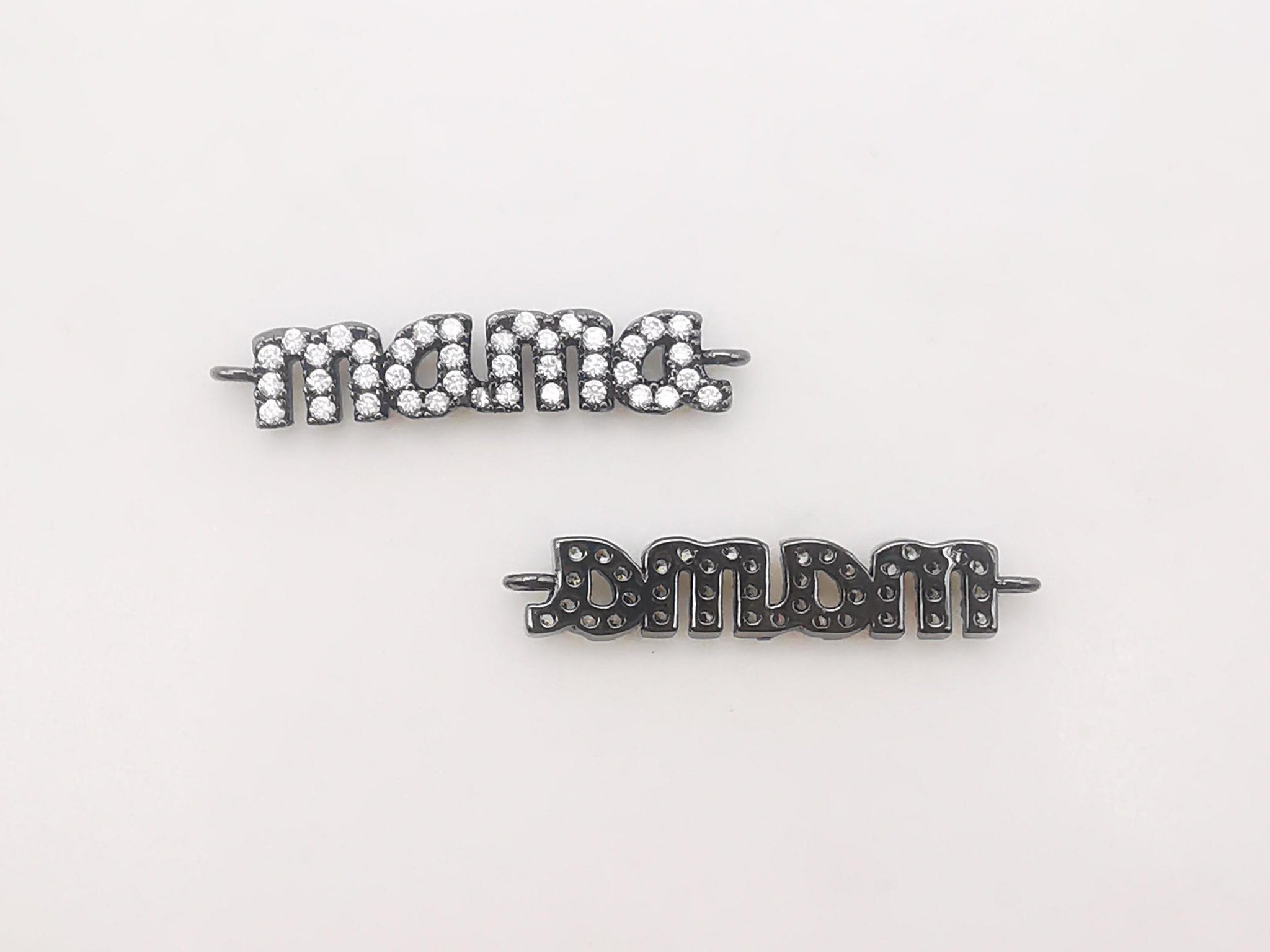 Cubic MAMA Connector, 18K Gold Plated Micro CZ Pave Connector Charm, Necklace Making Findings, 24x5mm, Jewelry Finding Gift for Mom S907