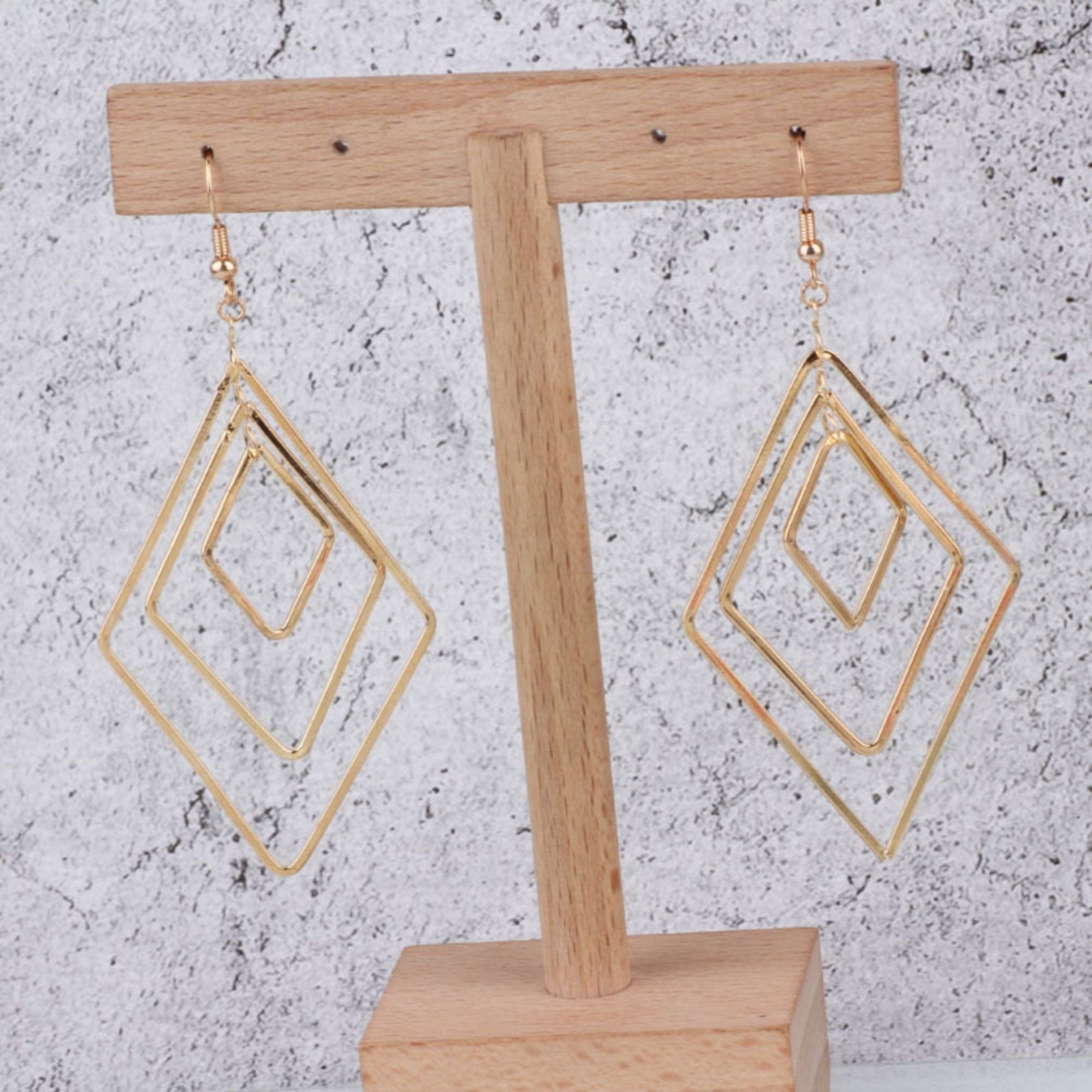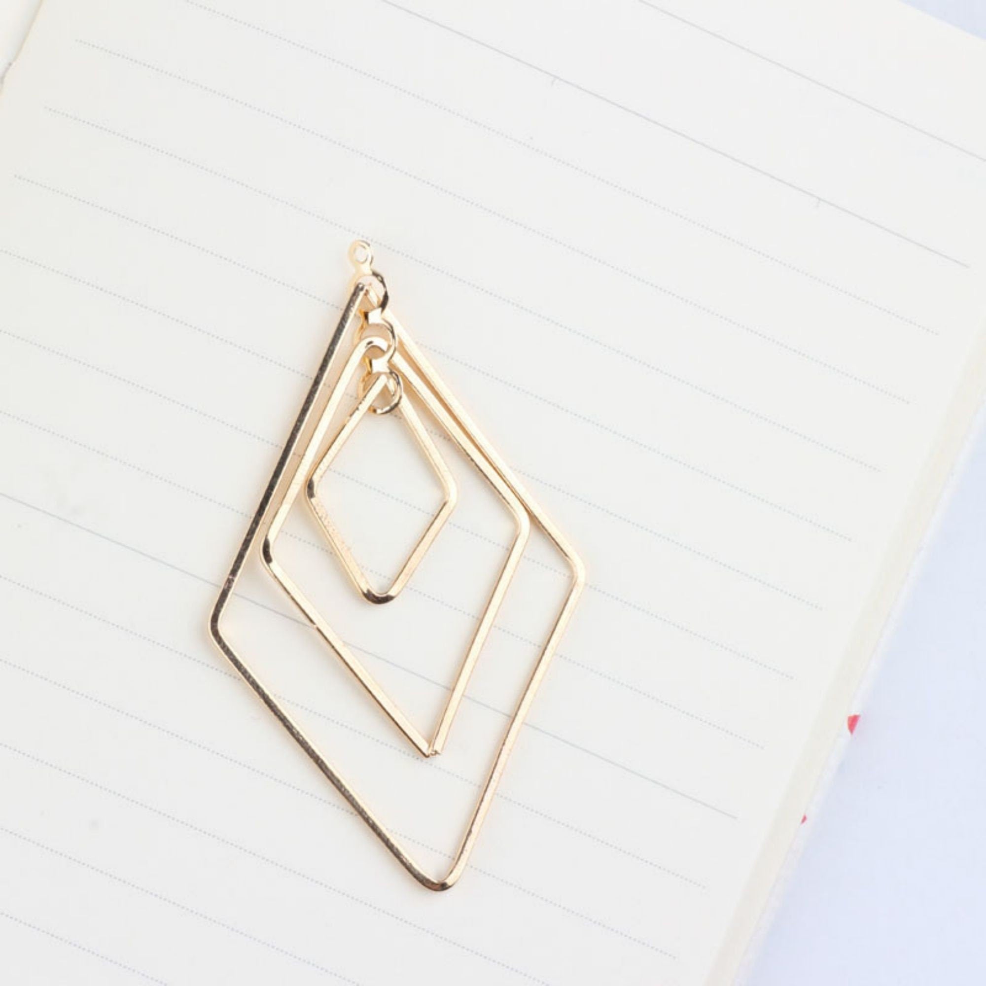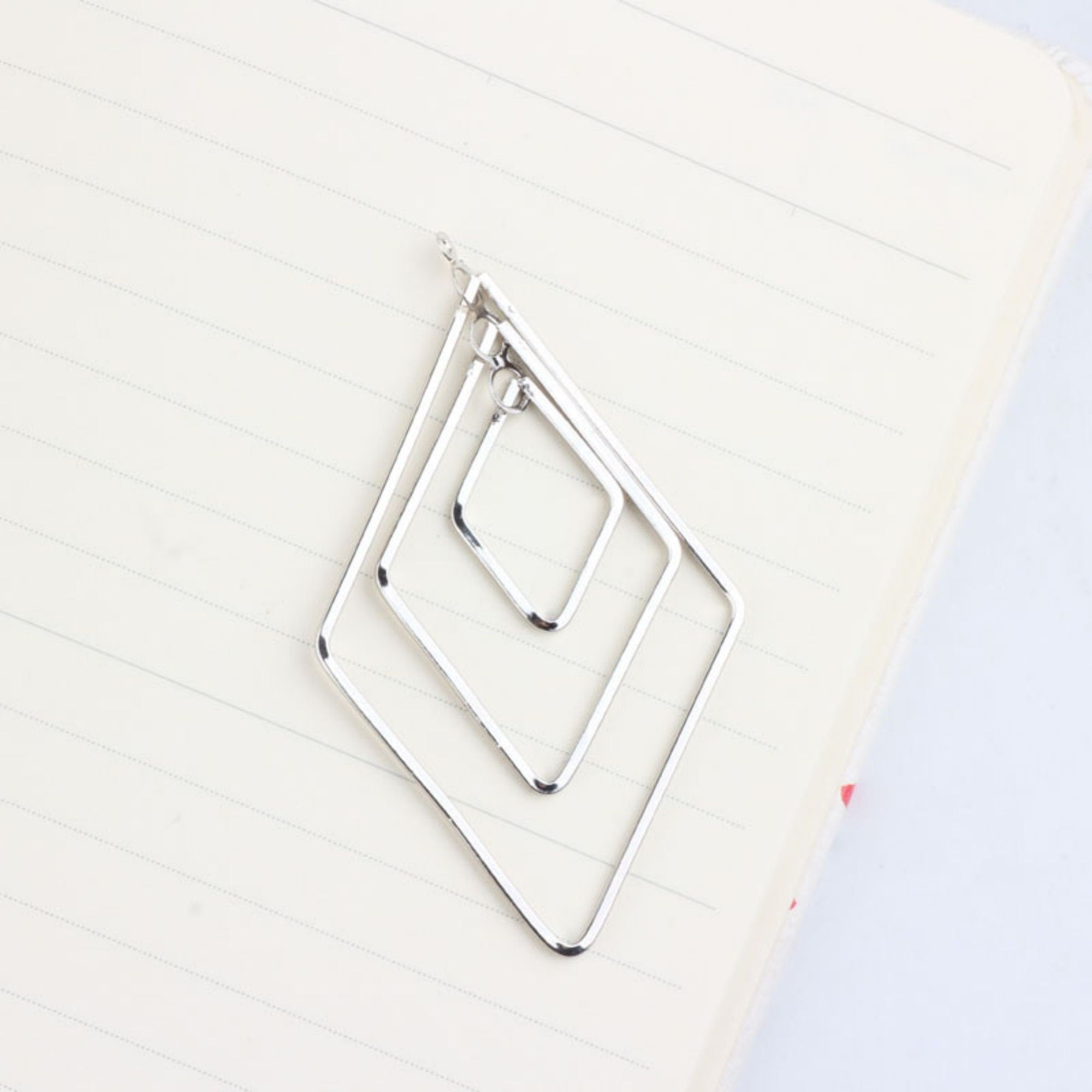 Drop Triple Diamond Shape Pendant, 18K Shiny Gold/Silver Plated Drop Openwork Pendant 40x66mm for Jewelry Making Supply QR038